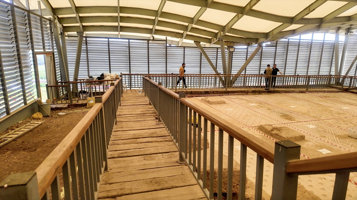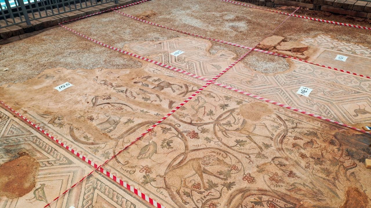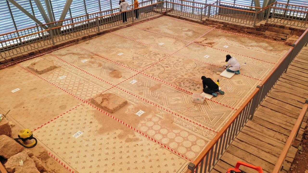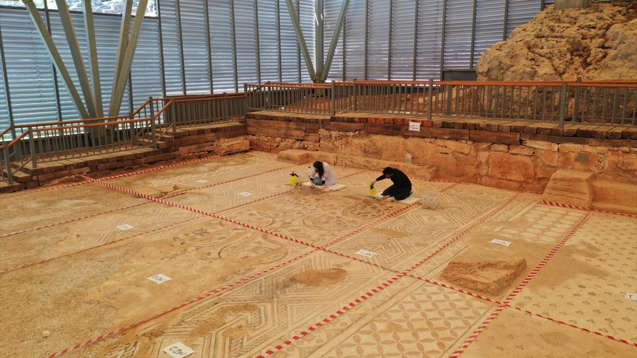 "Bulunduğumuz alan, milattan sonra 5. yüzyıla tarihlenen bir bazilikanın taban mozaiğine ait. Toplam 155 metrekarelik bir alanı kaplayan bu mozaik, şu anda 125 metrekarelik sağlam kısmıyla korunmuş durumda. 2021`de ilk restorasyonu yapılmıştı. Şimdi ise temizlik ve konservasyon işlemleri yürütüyoruz. Bu çalışmalar tamamlandığında mozaik yeniden ziyarete açılacak."