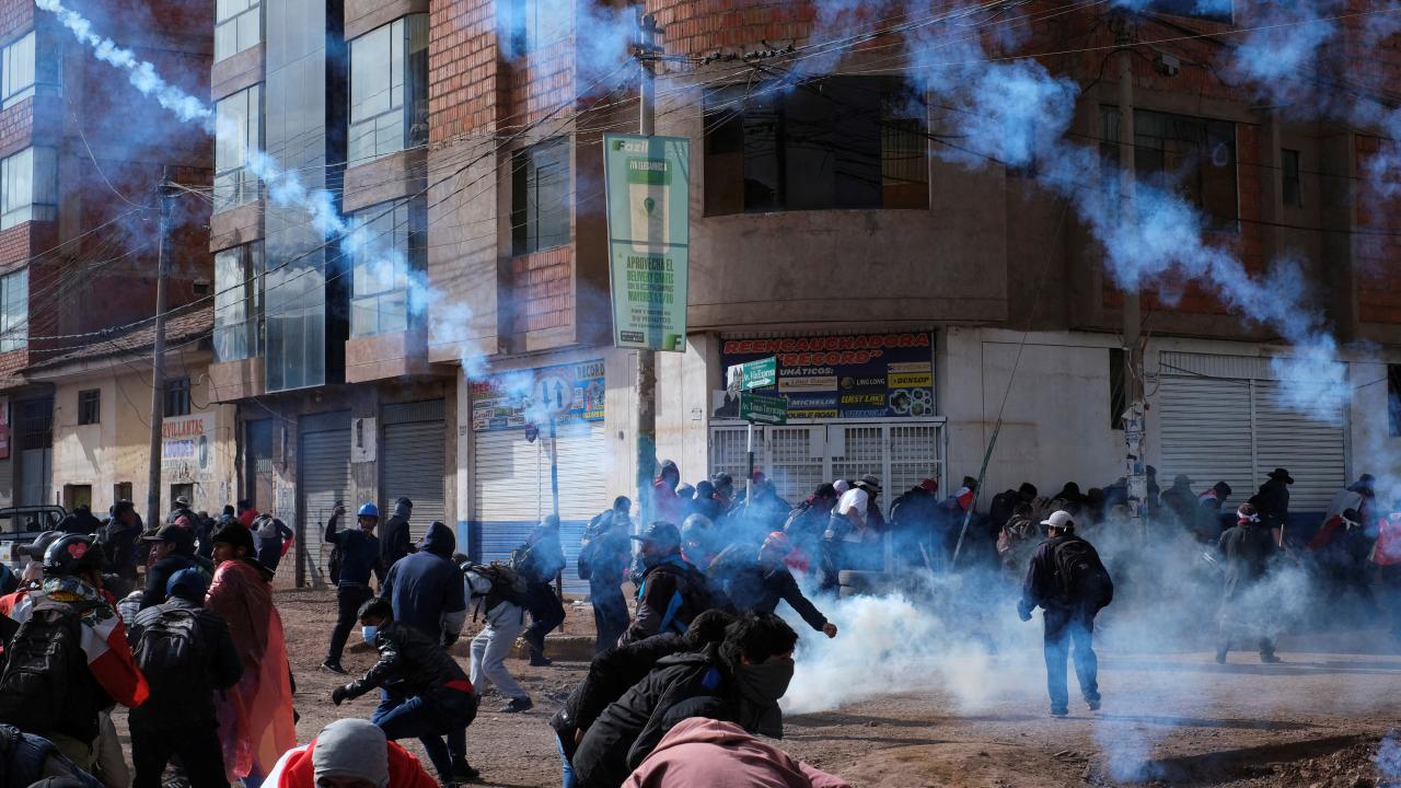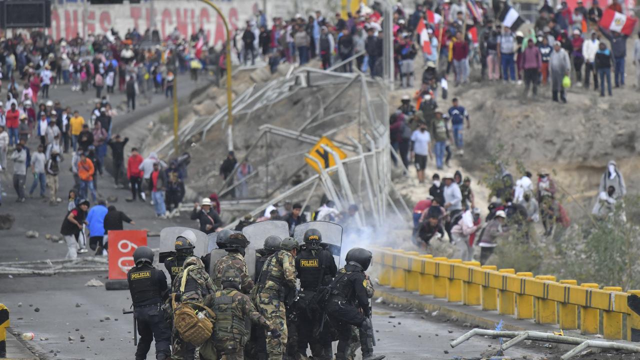 Peru`nun en kalabalık ikinci şehri Arequipa`daki Alfredo Rodriguez Ballon Havalimanı`na zorla girmeye çalışan göstericiler polisle çatıştı.