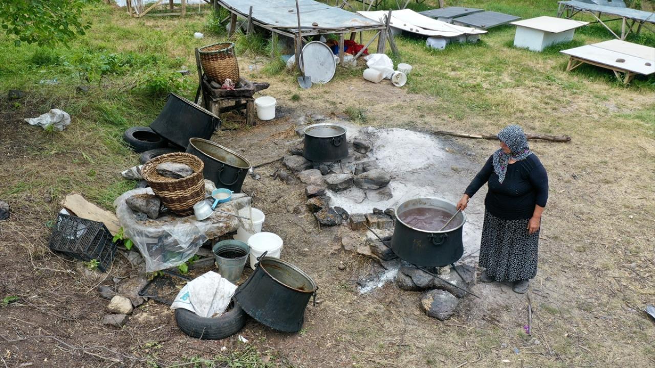 Öte yandan ilçede pestil için kullanılacak yeni sezon dut hasadı devam ediyor. Hasat edilen dutlar kaynatılarak yıl boyunca üretimde kullanılacak pestil haline getiriliyor.