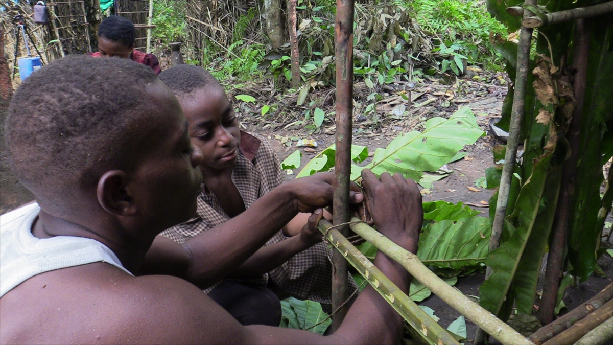 Sık sık yer değiştiren Pigmeler geçici olarak kullandıkları evleri yaklaşık bir saatte inşa ediyor.