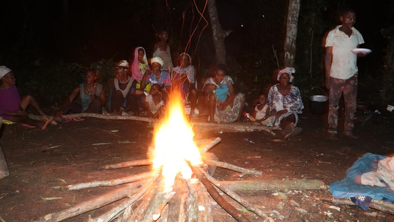 Avlanarak ve yabani meyve toplayarak günlerini geçiren Pigmeler, akşam yaktıkları ateşin etrafında toplanarak sohbet ediyor, aile büyüklerinin nasihatlerini dinliyor ve dans ediyor.