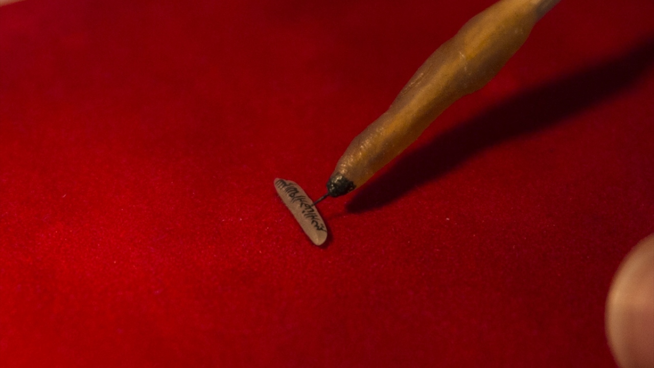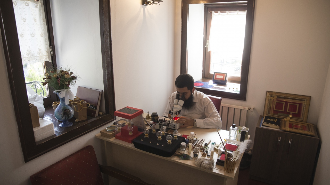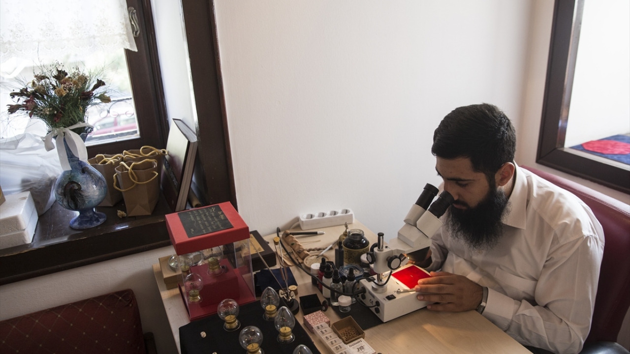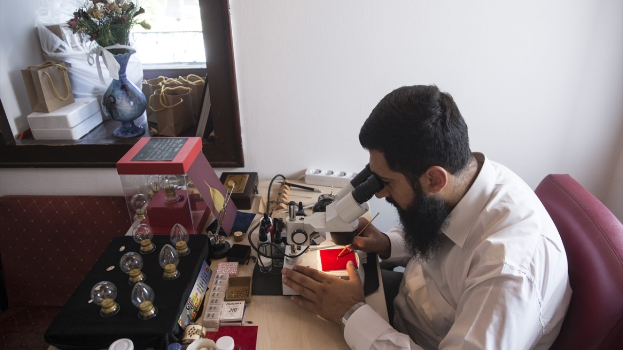 Tekin, 5 yıldır bu sanatı icra ettiğini belirterek eserinin, dünyanın en küçük cihar yar-i güzinleri olduğunu söyledi.
