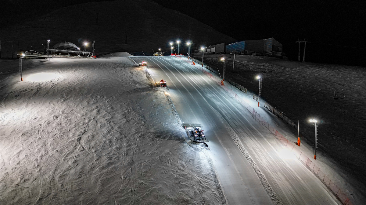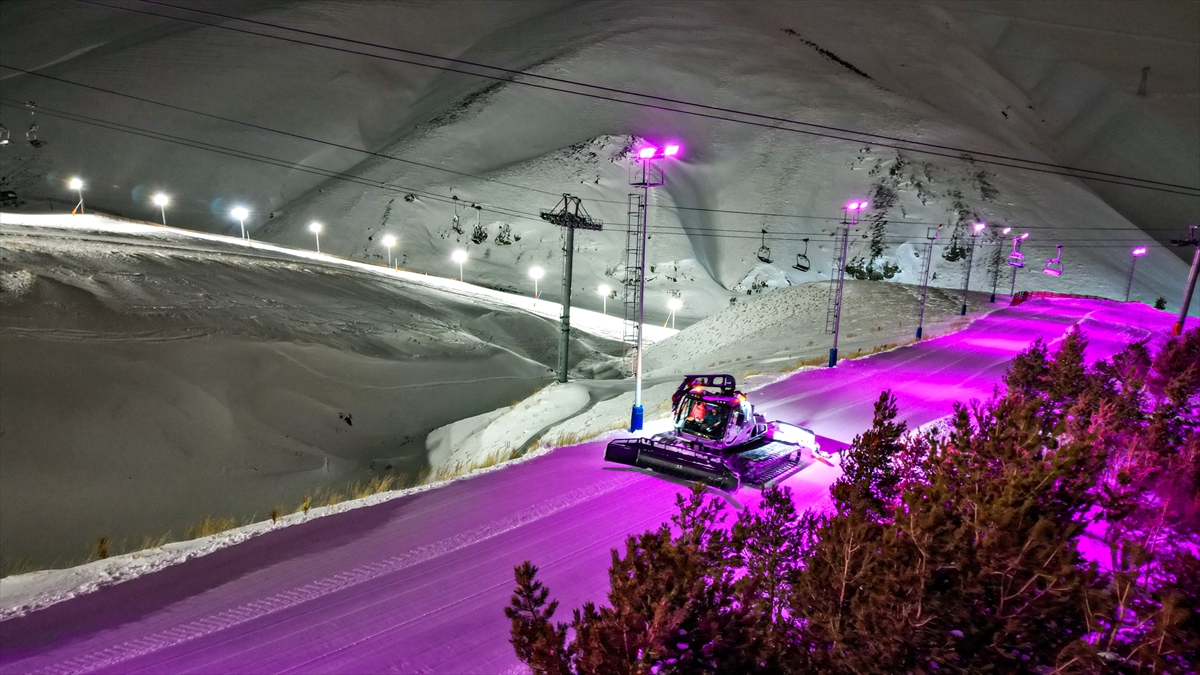 Türkiye'nin önemli kış turizm merkezlerinden Palandöken'de turistlerin sorunsuz ve keyifli kayak yapabilmesi için pistlerde gece boyu çalışma yürütülüyor.