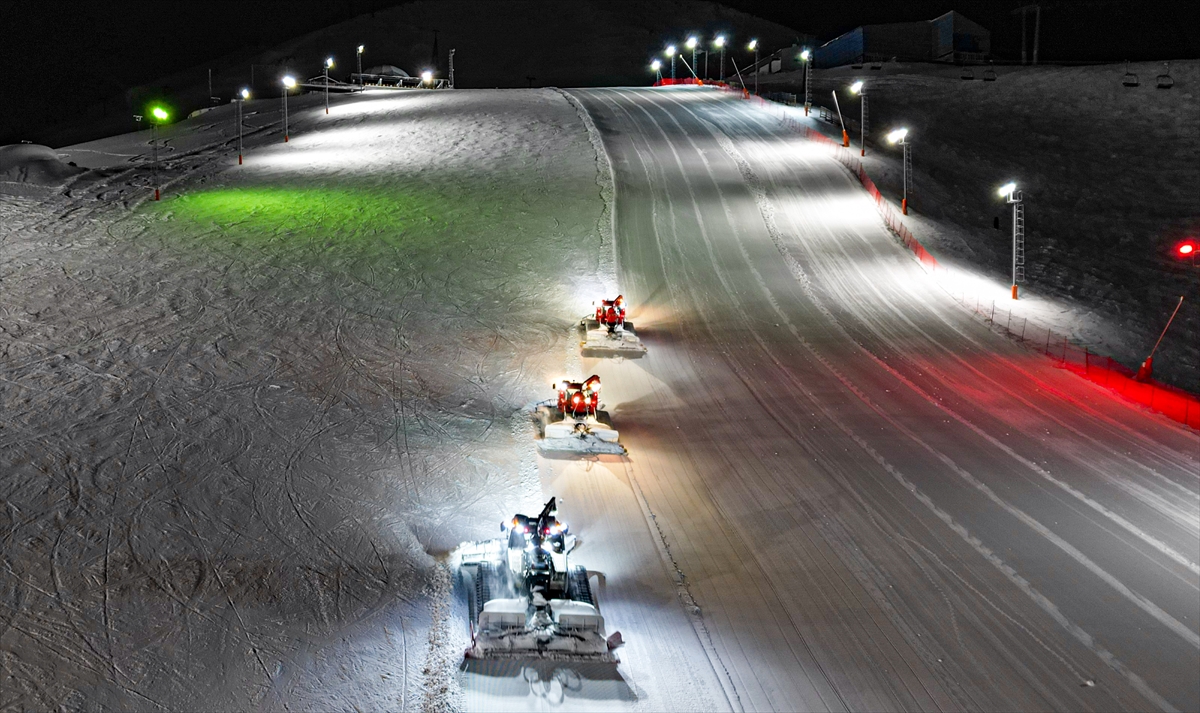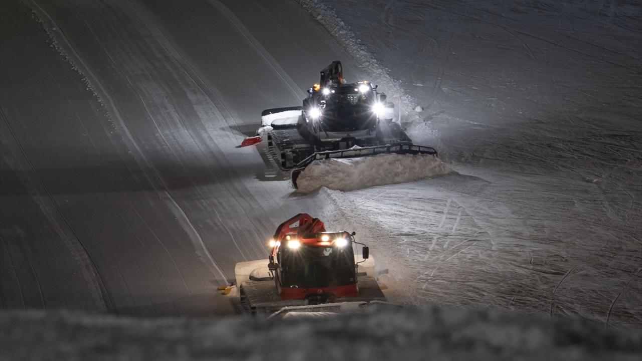 Kayakseverlerin güvenli şekilde pistlere çıkmasını sağlamak için büyük koordinasyon ve özveriyle çalışan ekipler, sabahın ilk ışıklarına kadar çalışmalarını sürdürüyor.
