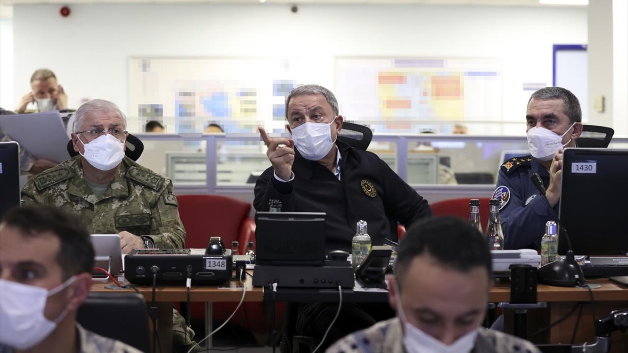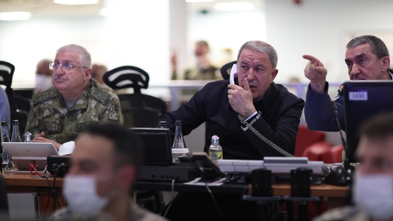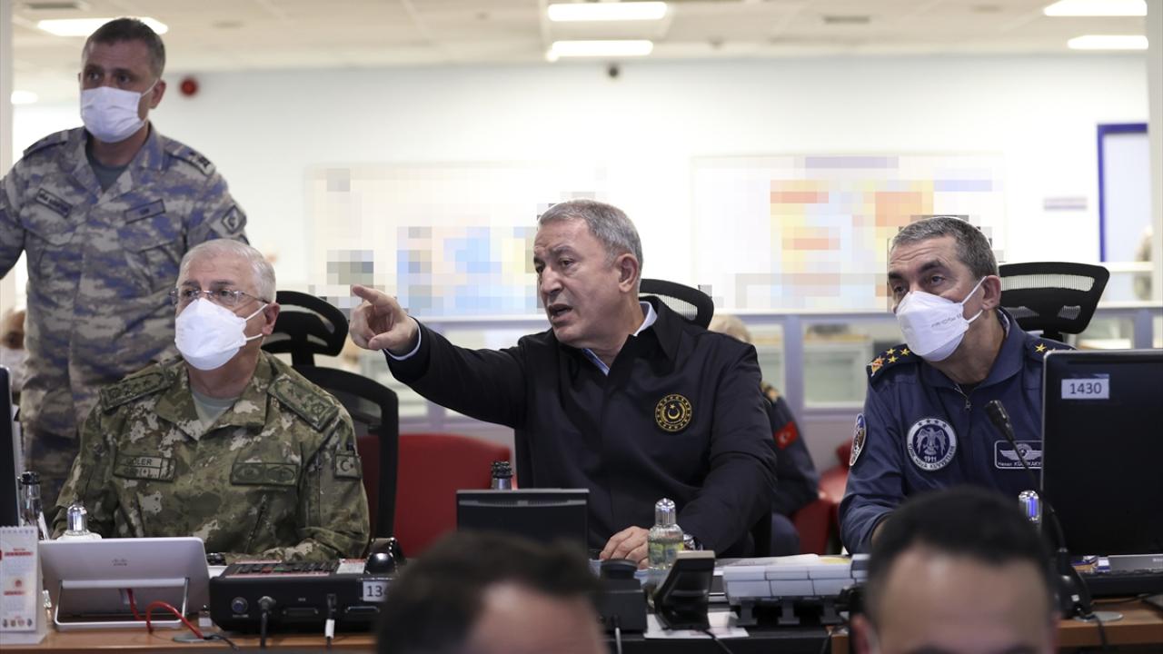 Beraberinde Genelkurmay Başkanı Orgeneral Yaşar Güler, Hava Kuvvetleri Komutanı Orgeneral Hasan Küçükakyüz ve Deniz Kuvvetleri Komutanı Oramiral Adnan Özbal ile Harekat Merkezi’ne inen Akar, Hava Kuvvetleri Komutanlığı Kurmay Başkanı Korgeneral İsmail Güneykaya’dan harekata ilişkin brifing aldı.