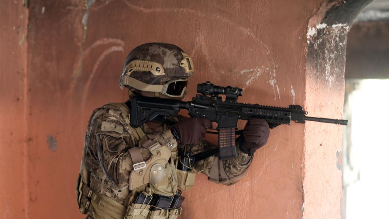 Gerçek mühimmat, ses ve sis bombalarının kullanıldığı tatbikatta, polisler teröristi kısa sürede tespit ederek etkisiz hale getirdi.