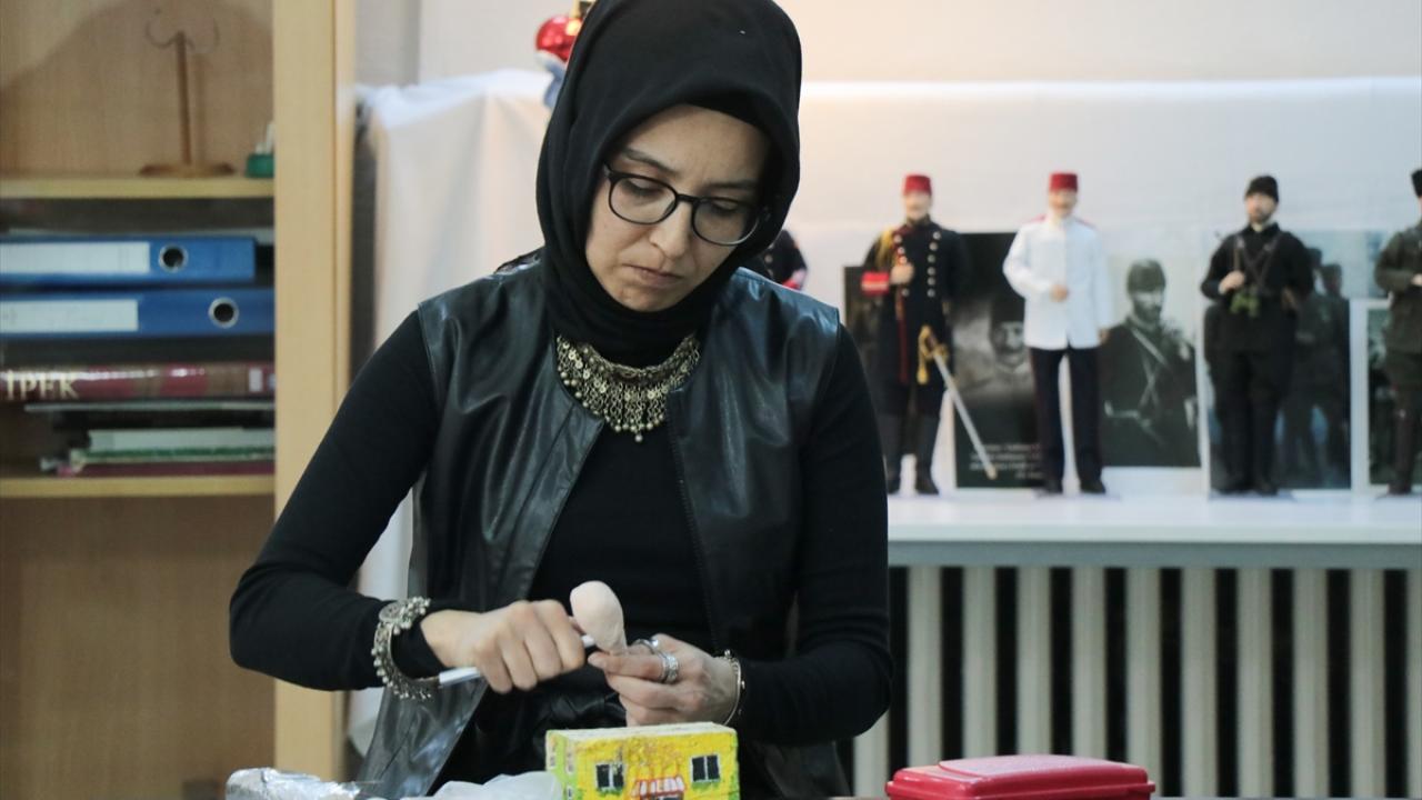 Kayseri Olgunlaşma Enstitüsü usta öğreticisi Hatice Çolak, polimer kilden Mustafa Kemal Atatürk'ün harbiye yıllarından başlayarak tarihsel dönem içindeki halleri ile bazı Yeşilçam yıldızlarının minyatürlerini yapıyor.