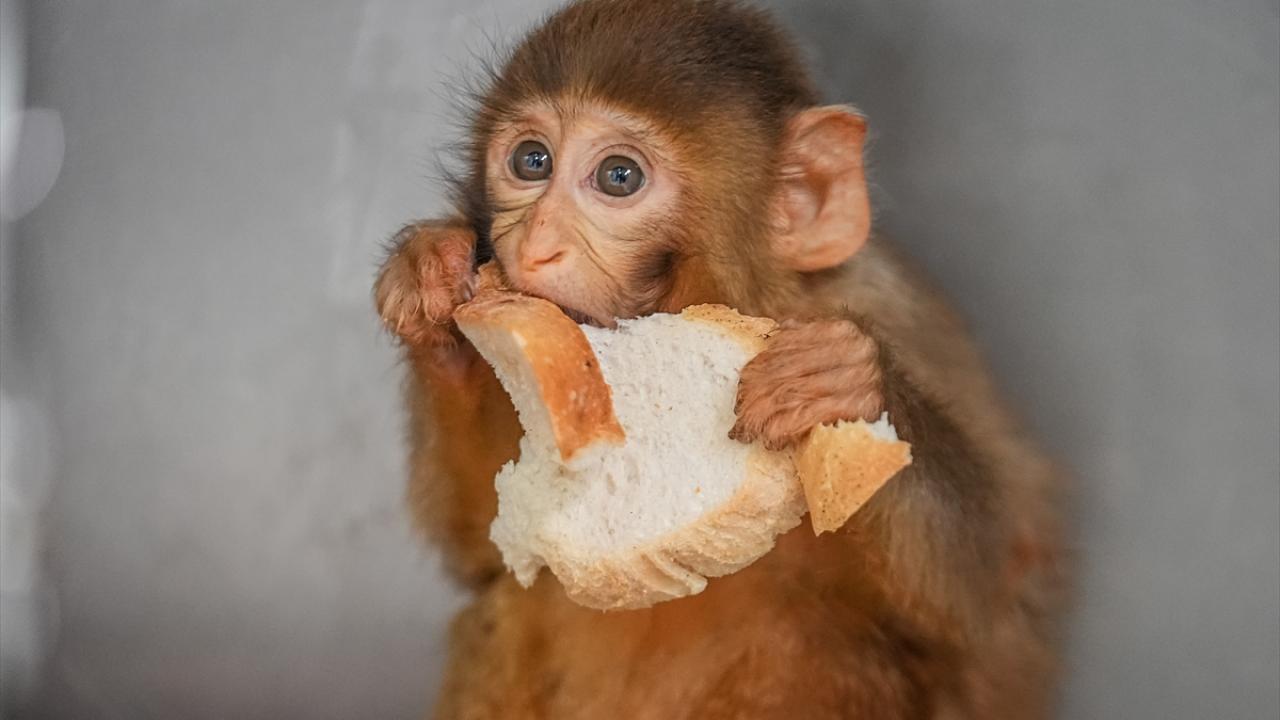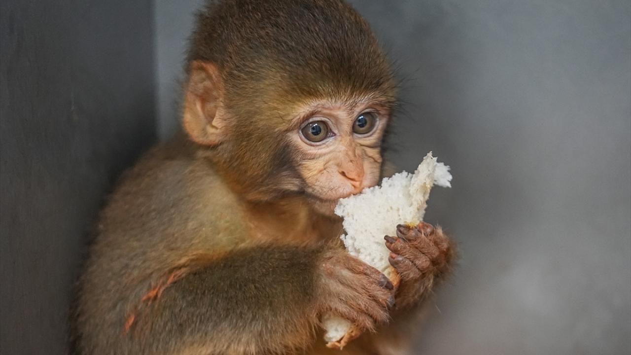 Polis denetiminde ele geçirilen makak maymunu yavrularına özenle bakılıyor