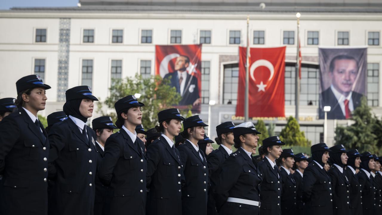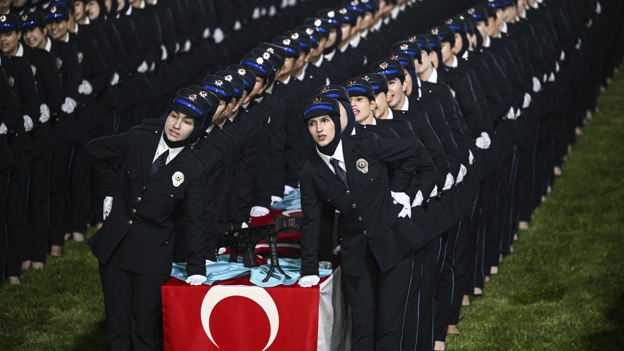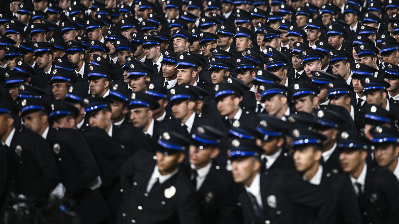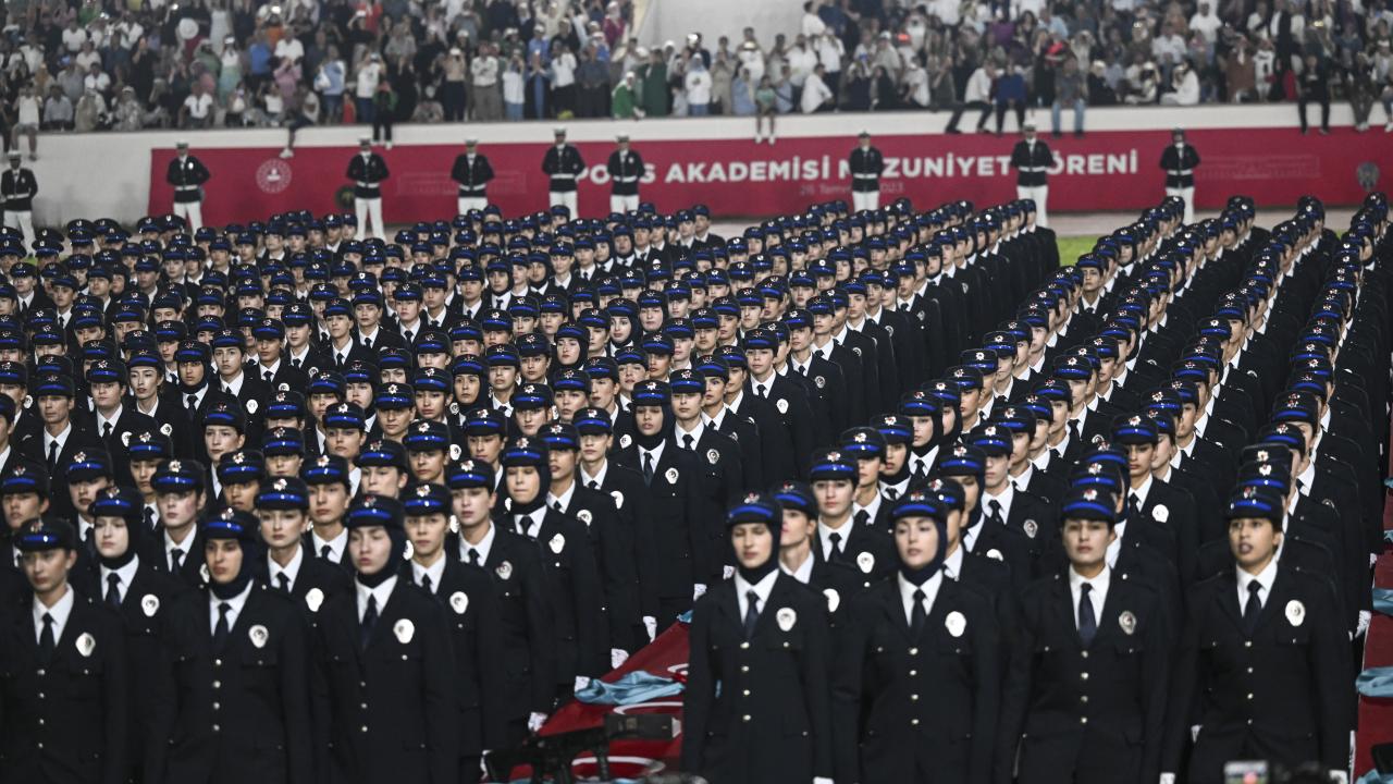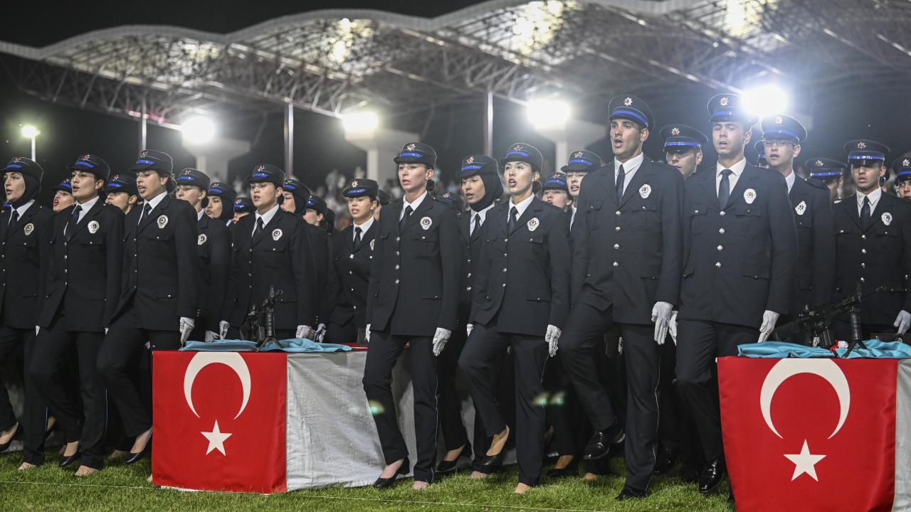 Polis Meslek Yüksek Okulları'nda 6'ncı dönem olarak eğitimlerini tamamlayan polis memurları için Gölbaşı Polis Akademisi'nde düzenlenen Polis Meslek Yüksekokulları Mezuniyet Töreni düzenlendi.