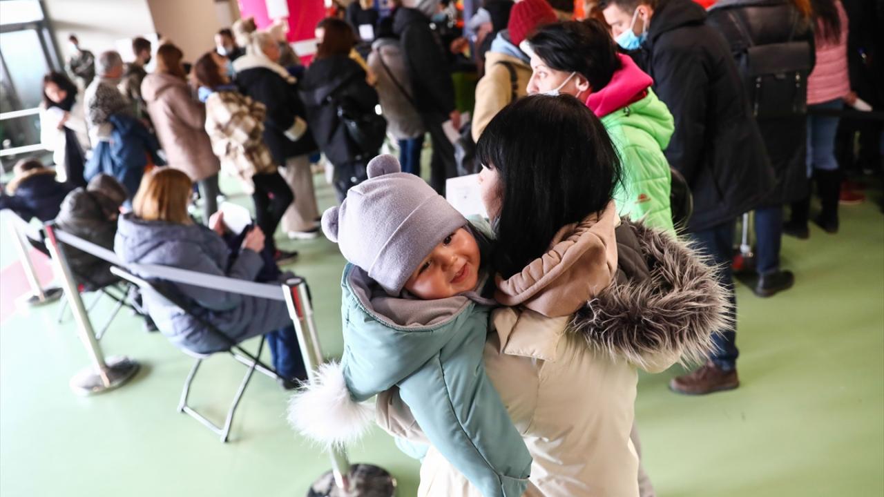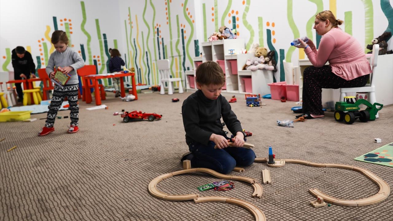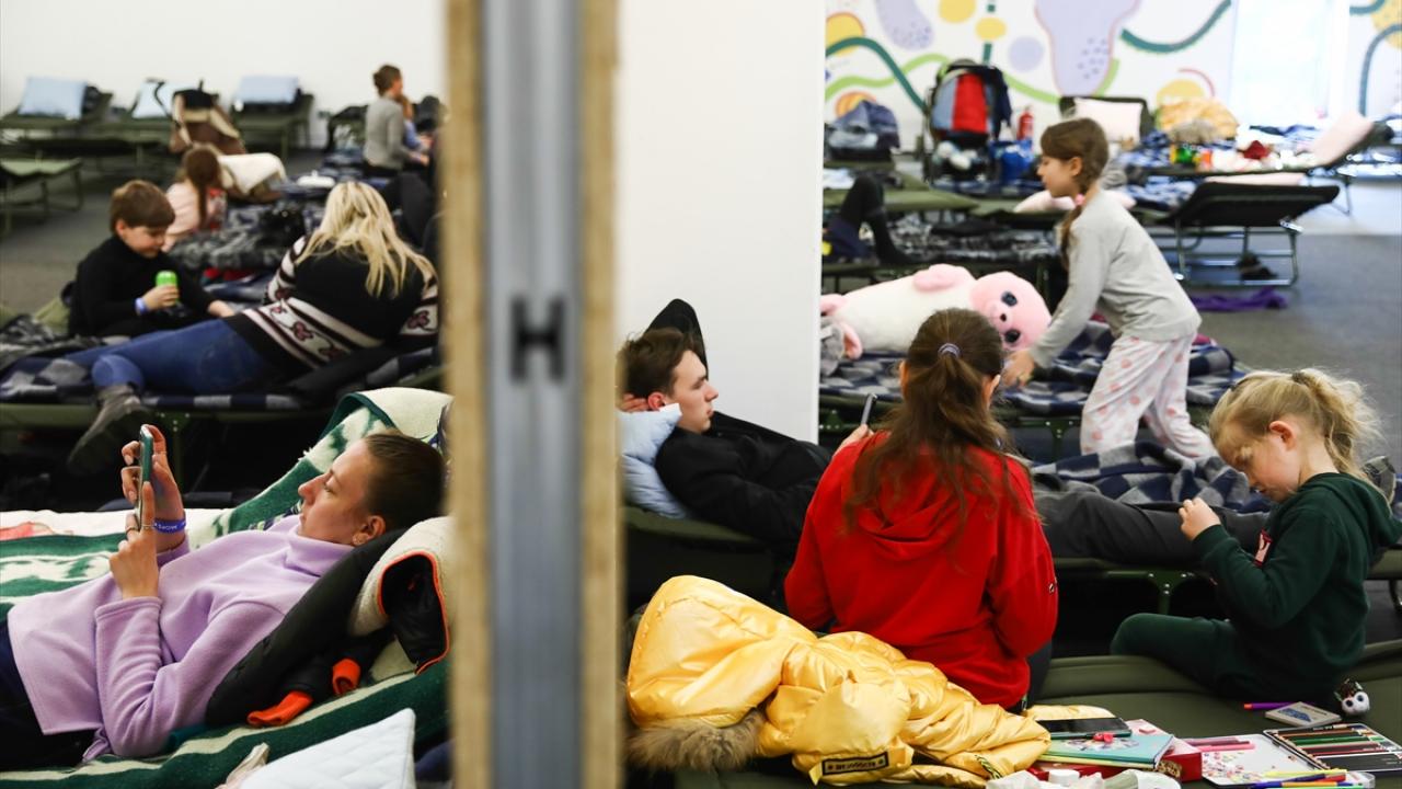 Öte yandan, eski bir alışveriş merkezine kurulan geçici barınma merkezine yerleştirilen Ukraynalılar, AA tarafından görüntülendi.