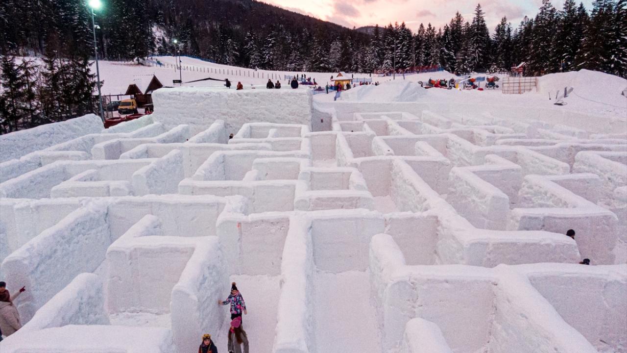 Polonya'nın Zakopane kentinde, 2015-2016 yılında 2 bin 500 metrekarelik bir alanda vatandaşların ziyaretine açılan kar labirentinin büyüklüğü 3 bin metrekareye çıkartıldı.