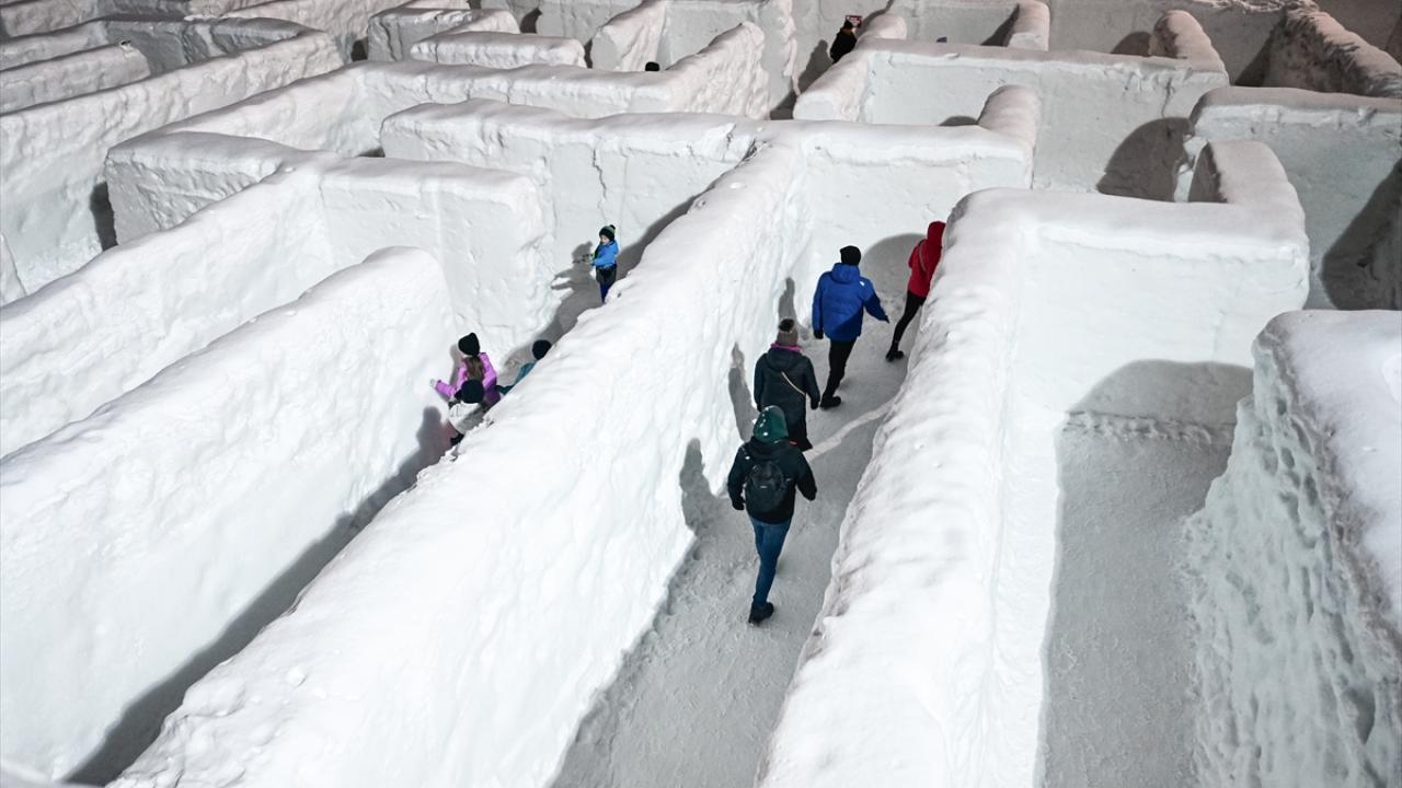 Polonya'da dünyanın en büyük kar labirenti turistlerden büyük ilgi görüyor