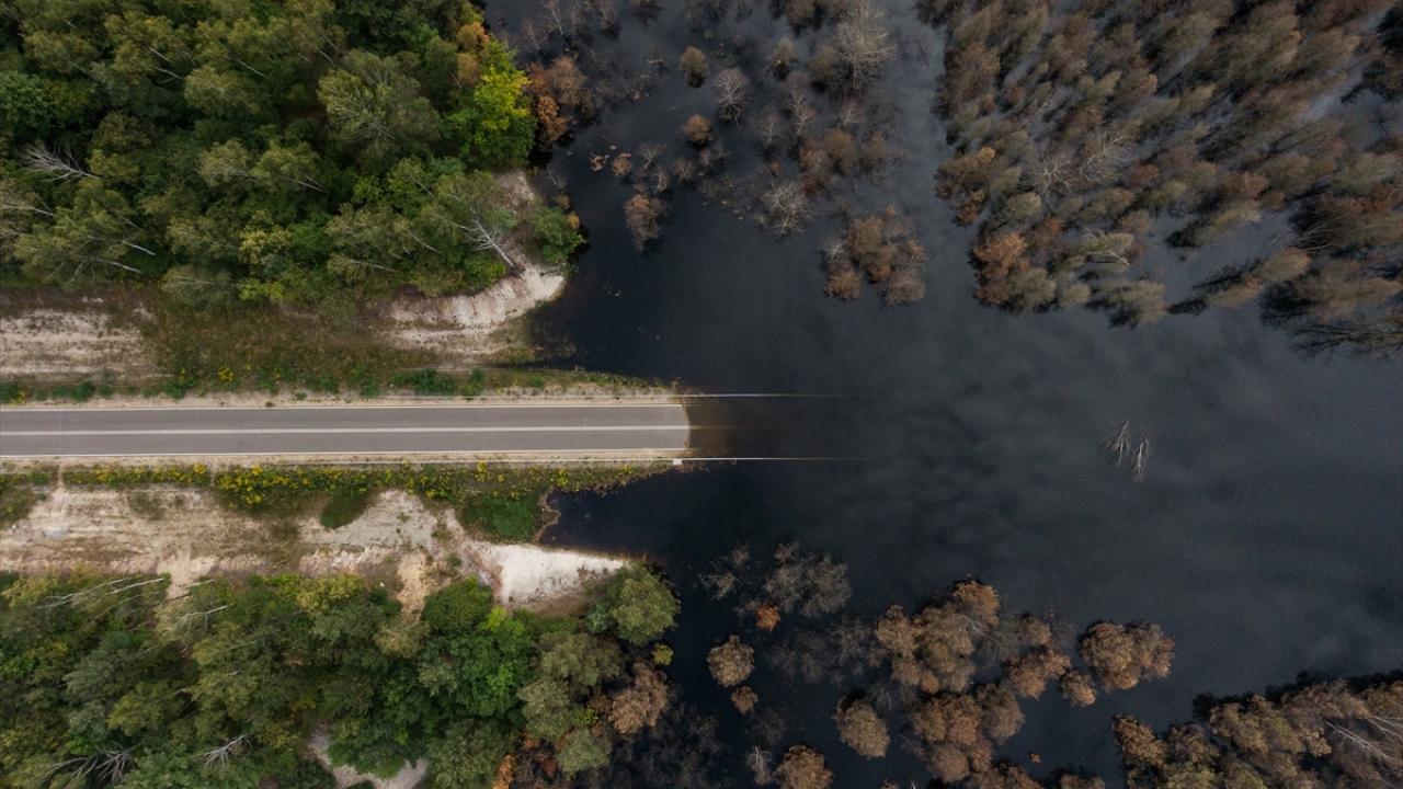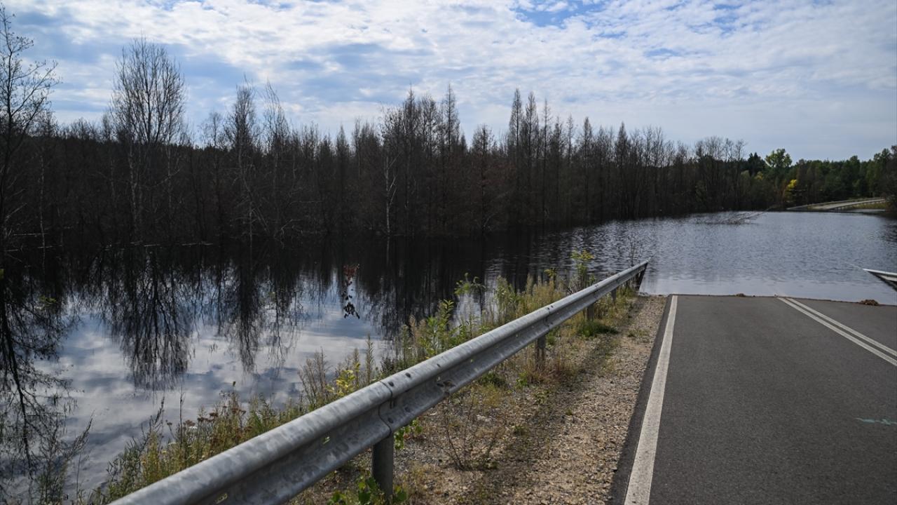 Yeni inşa edilen bir yol suya gömülürken, çevredeki konutların ise tehdit altında olduğunu belirtiliyor.
