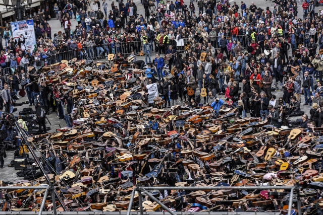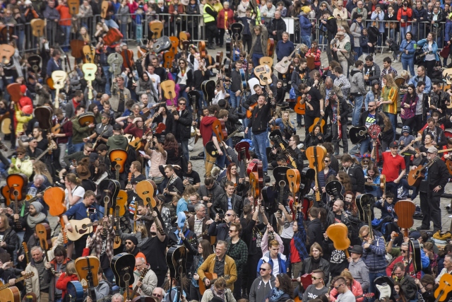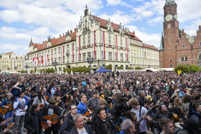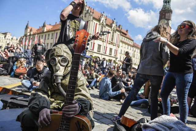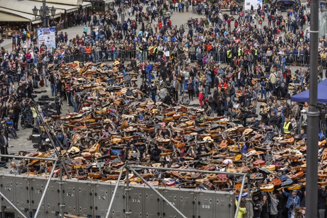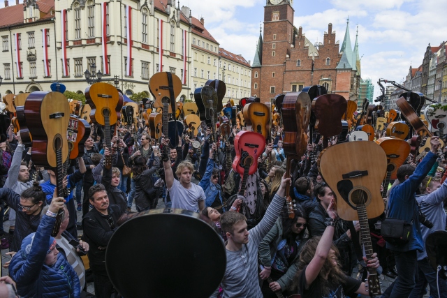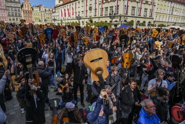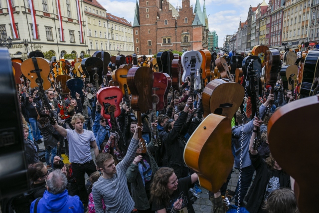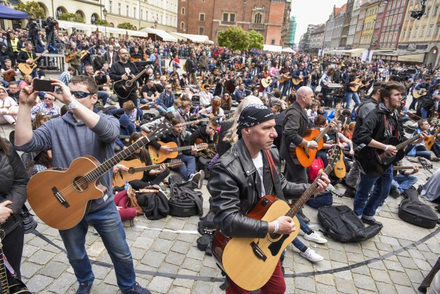 Polonya'nın Wroclaw şehrinde 6299 gitarist, Jimi Hendrix'in 'Hey Joe' adlı parçasını çalarak Guinness Dünya Rekorlar Kitabı'na girebilmek için Pazar Meydanı'nda bir araya geldi.