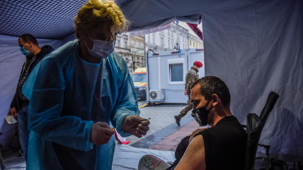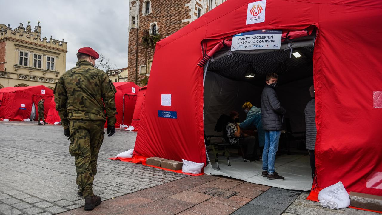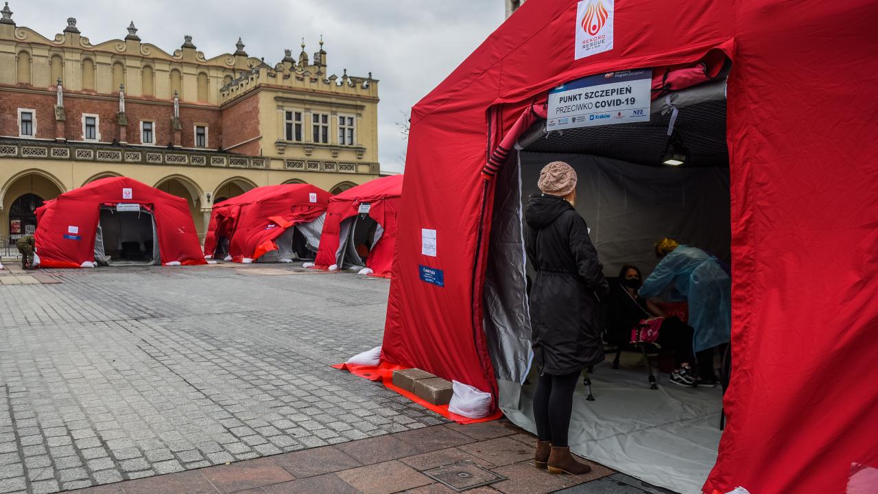 Polonya'nın Krakow kentinde kurulan mobil merkezlerde, koronavirüse karşı toplu aşılama gerçekleştirildi. Merkezlerde toplu aşılama programı kapsamında Johnson and Johnson aşısı uygulandı.