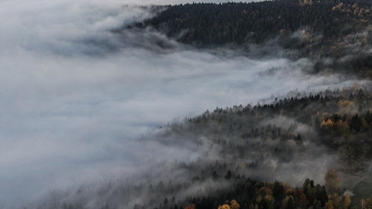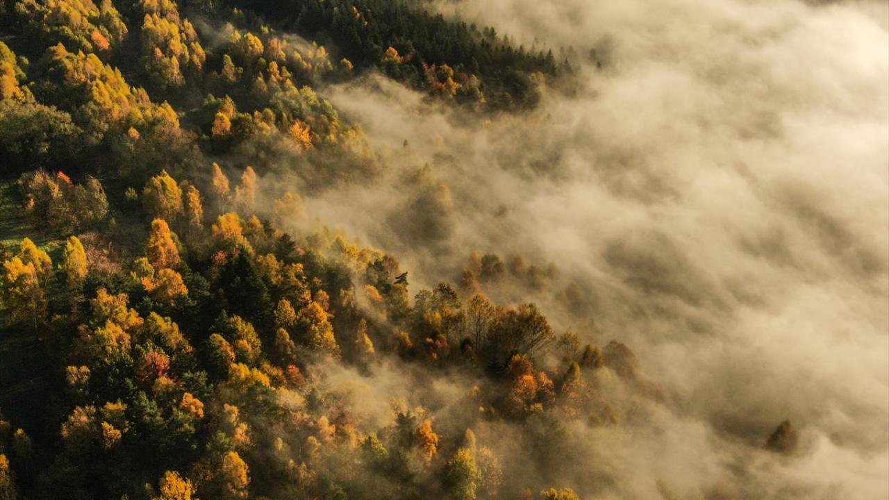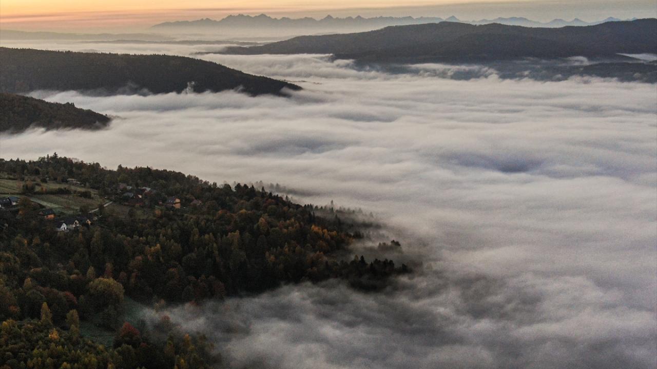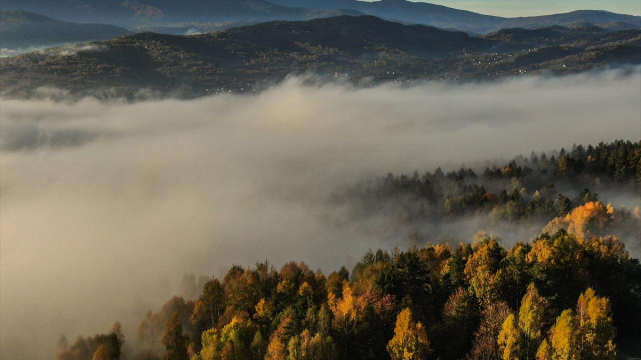 Polonya’nın Makow Podhalanski kentindeki ormanlık alanlar sonbaharın etkisiyle altın renklerine büründü.