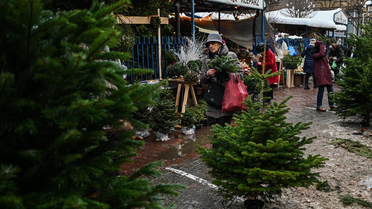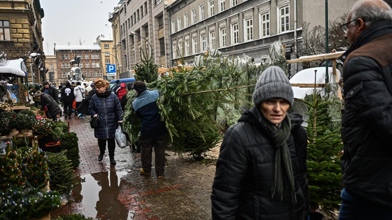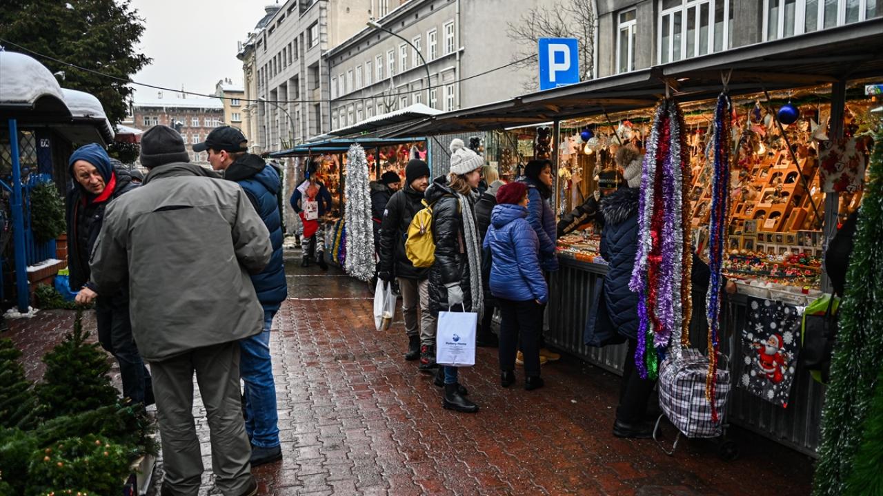 Krakow kentindeki Stary Kleparz Krakow açık hava pazarında Noel kutlamaları öncesinde alışveriş yapanlar görüntülendi.