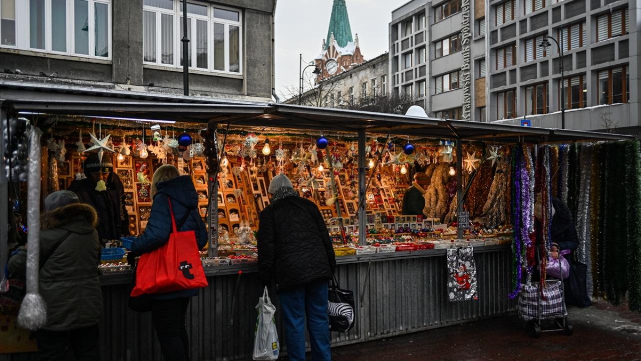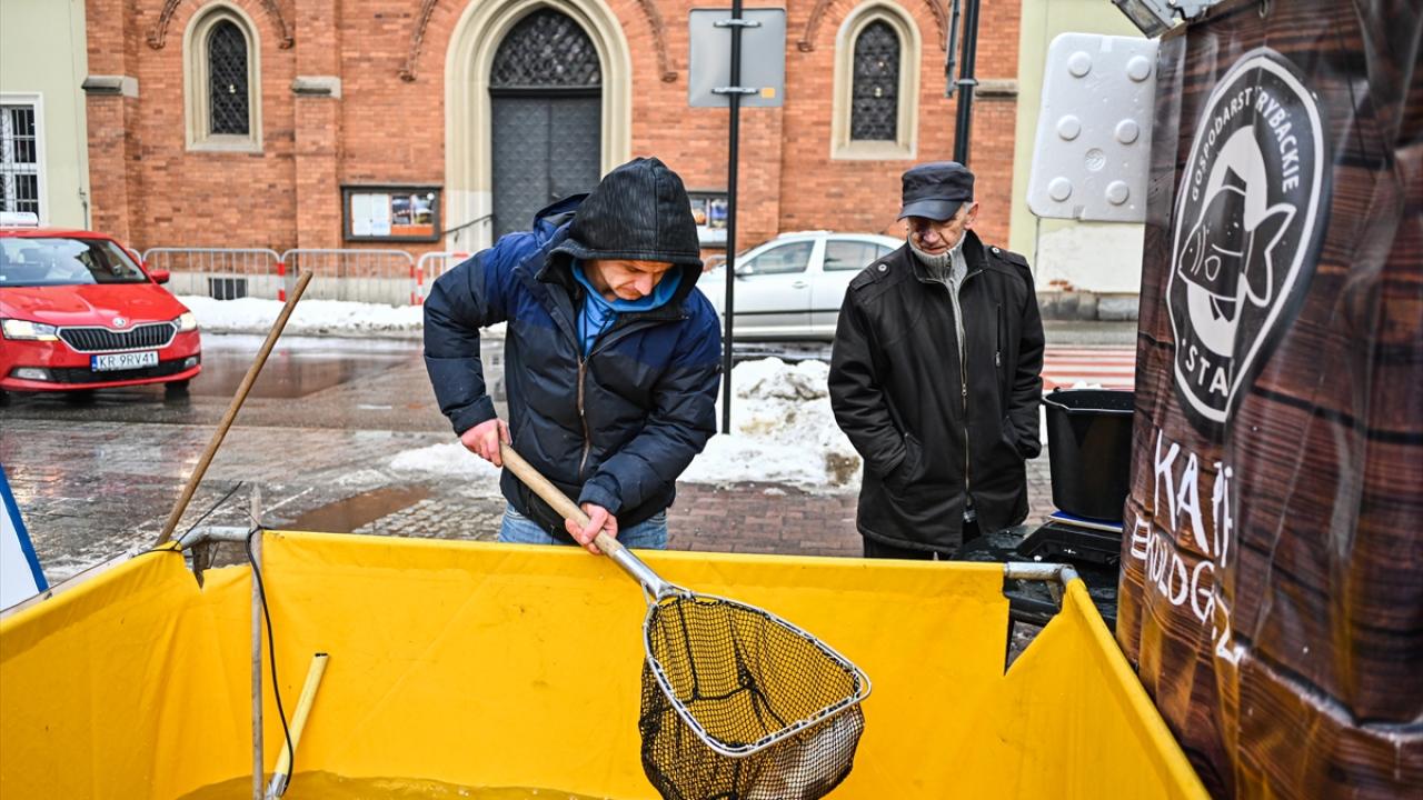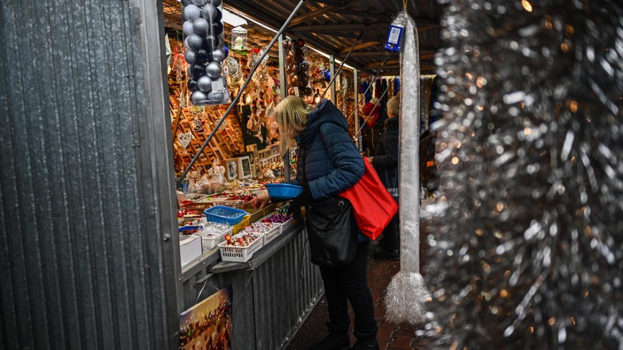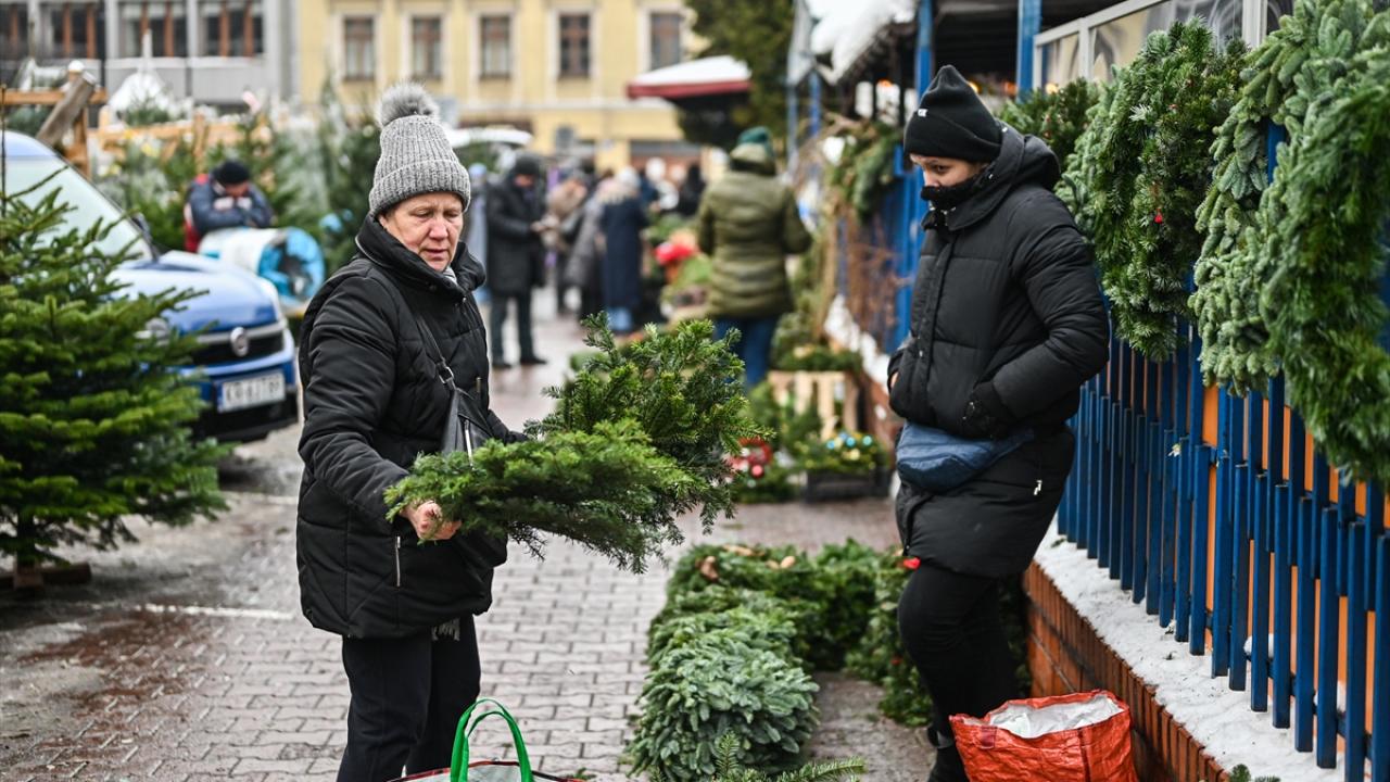 Krakow kentindeki Stary Kleparz Krakow açık hava pazarında Noel kutlamaları öncesinde alışveriş yapanlar görüntülendi.