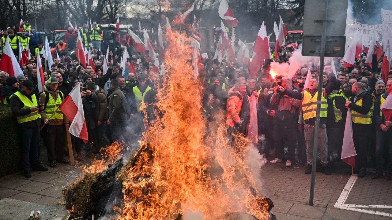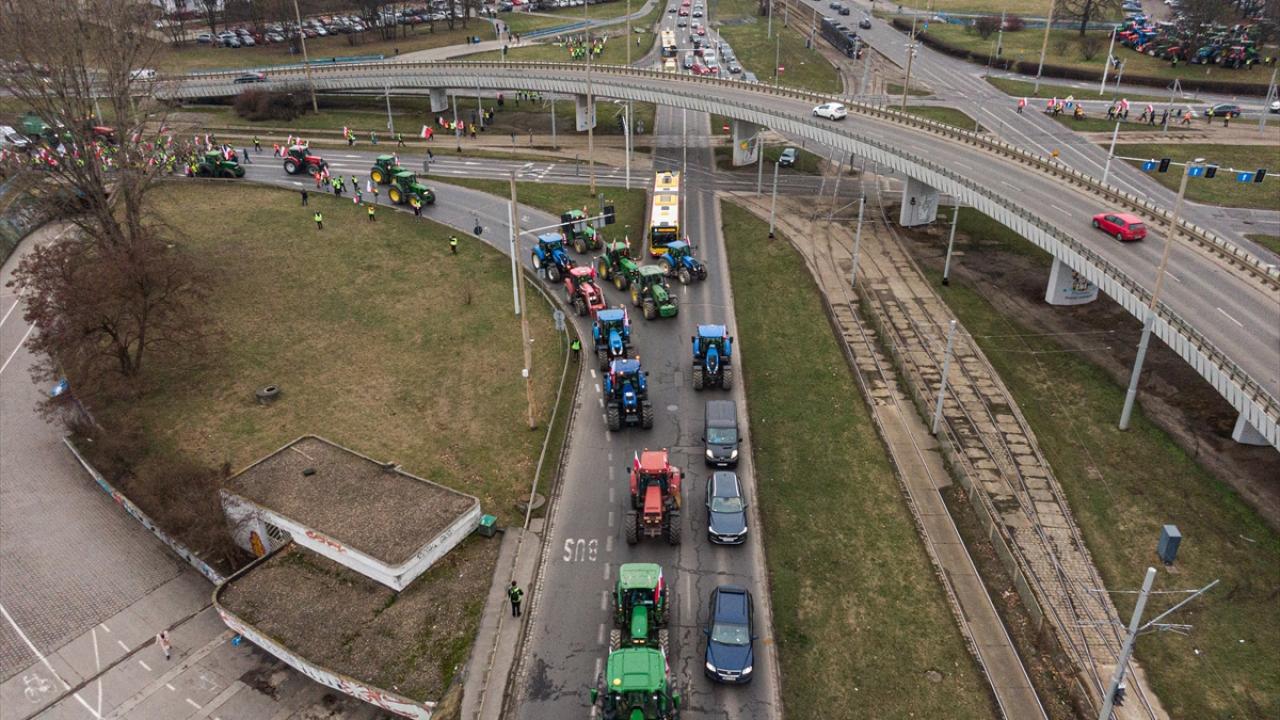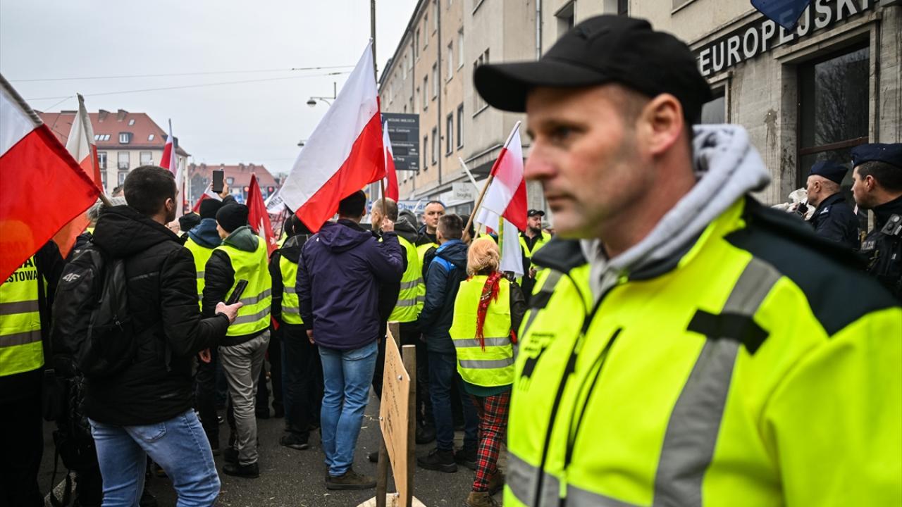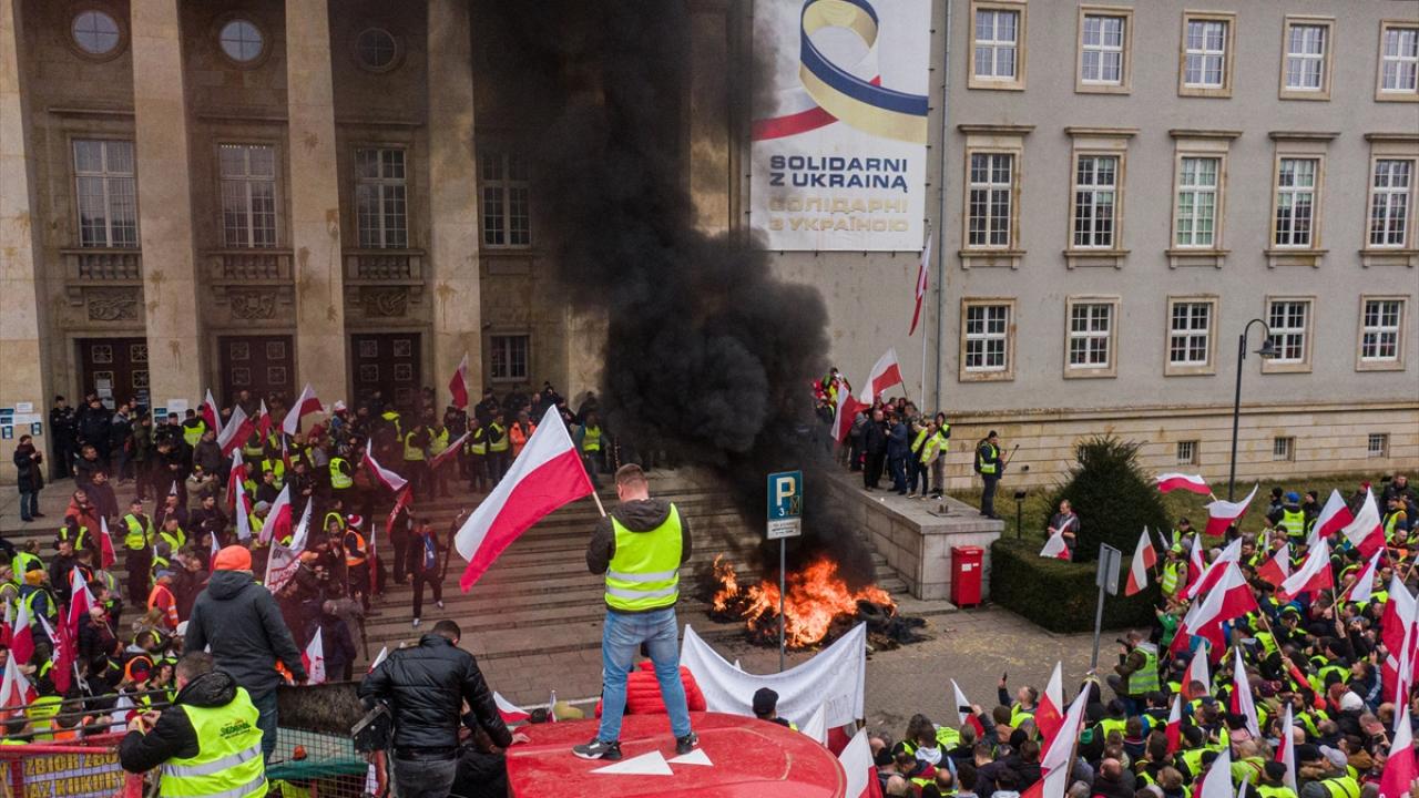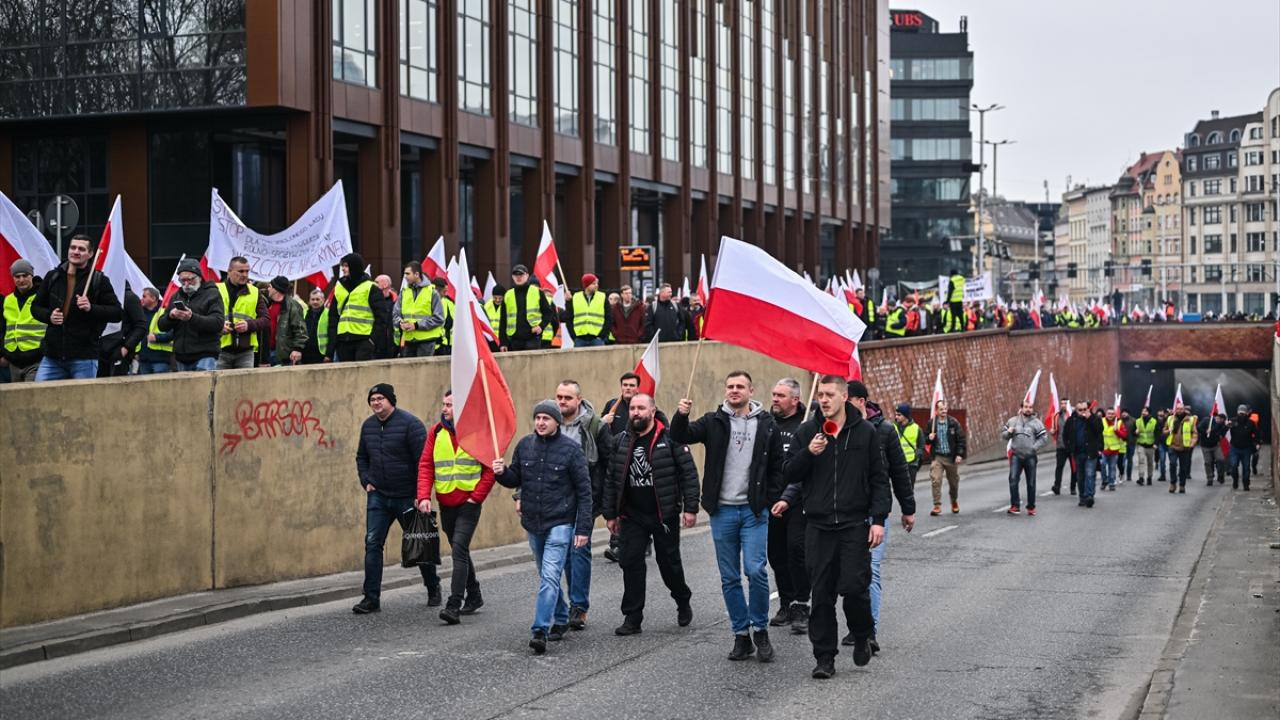 Polonyalı çiftçiler, Polonya'nın Wroclaw kentinde AB Yeşil Anlaşması ve Ukrayna'dan tahıl ithalatına karşı devam eden ulusal protestolar kapsamında, AB Parlamentosu bilgi ofisi ve Polonya Martal ofisi önünde gösteri düzenledi.