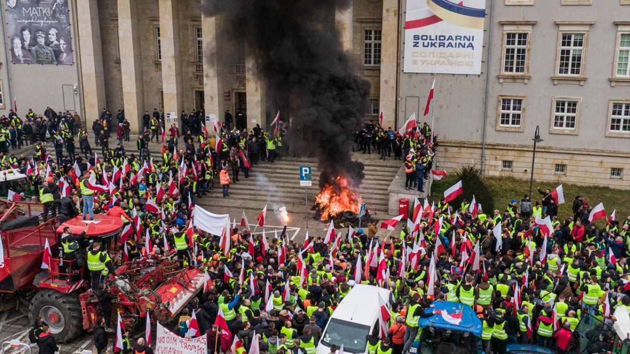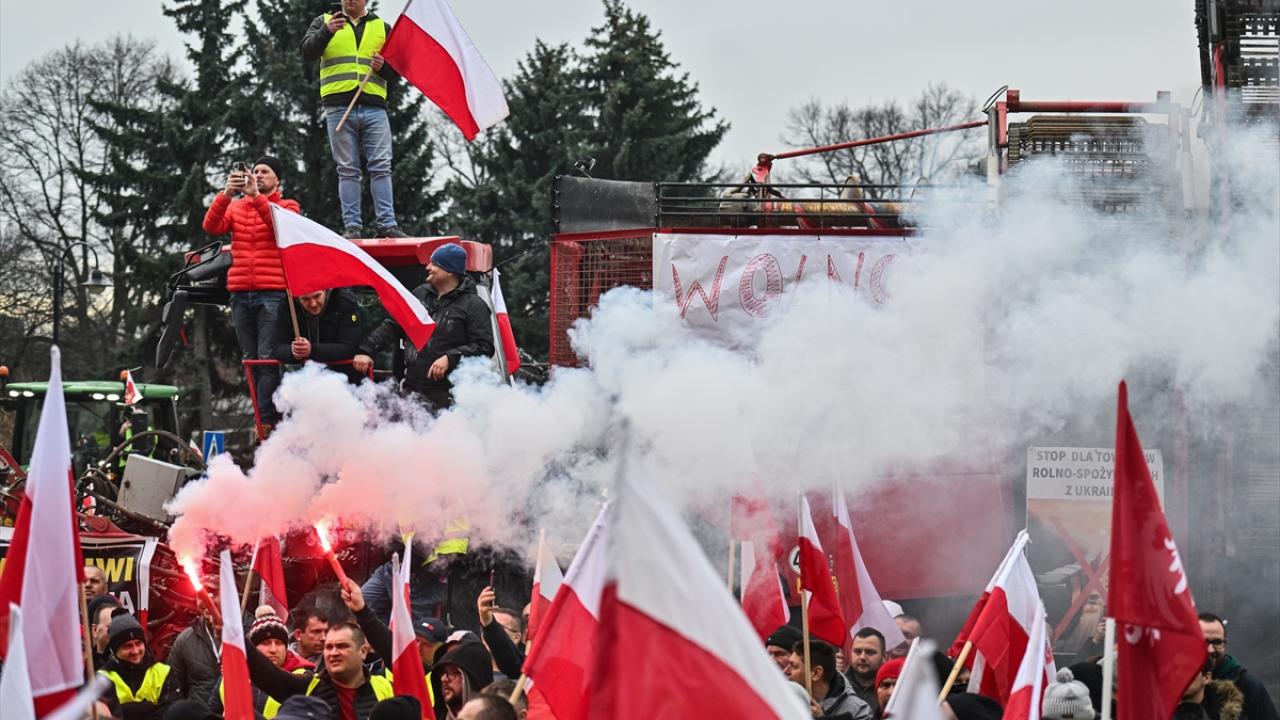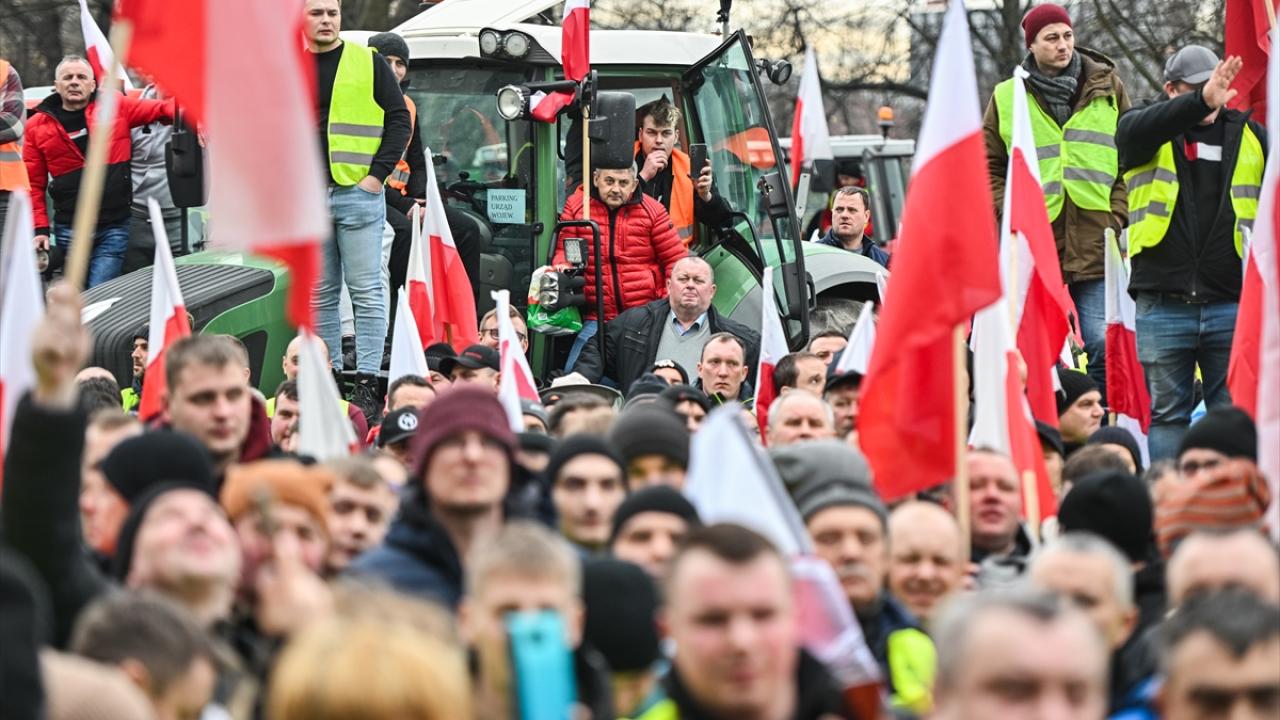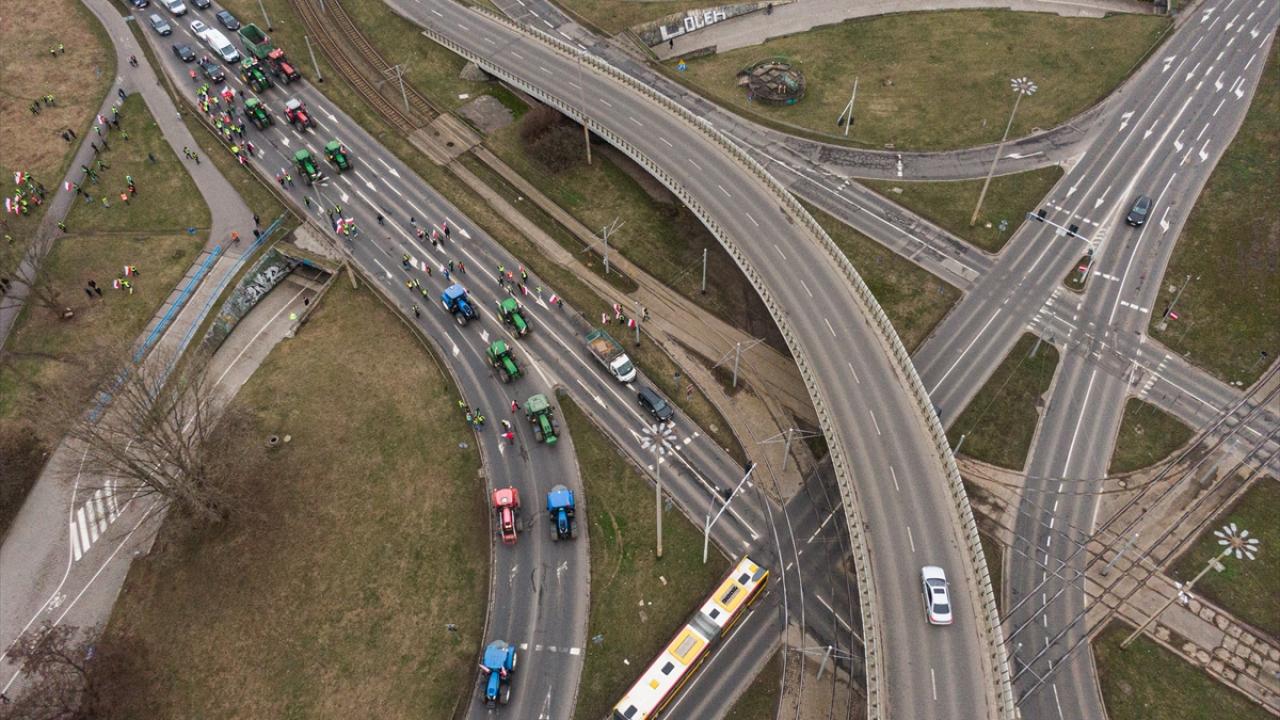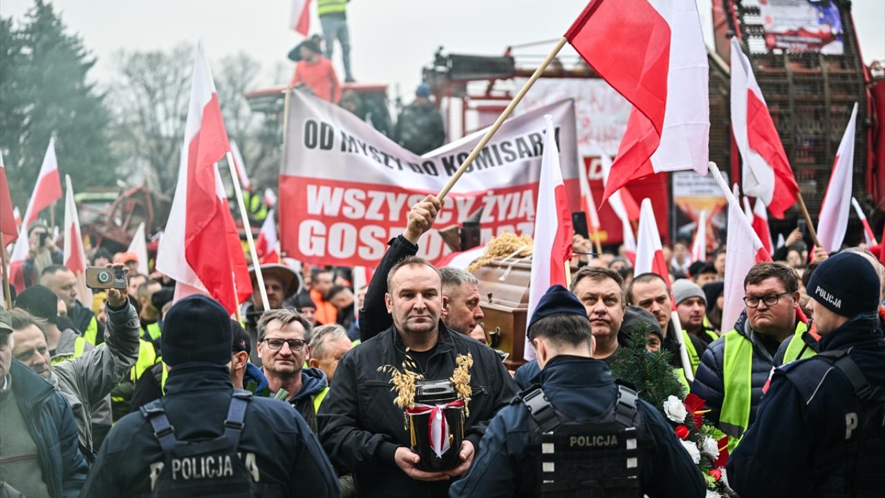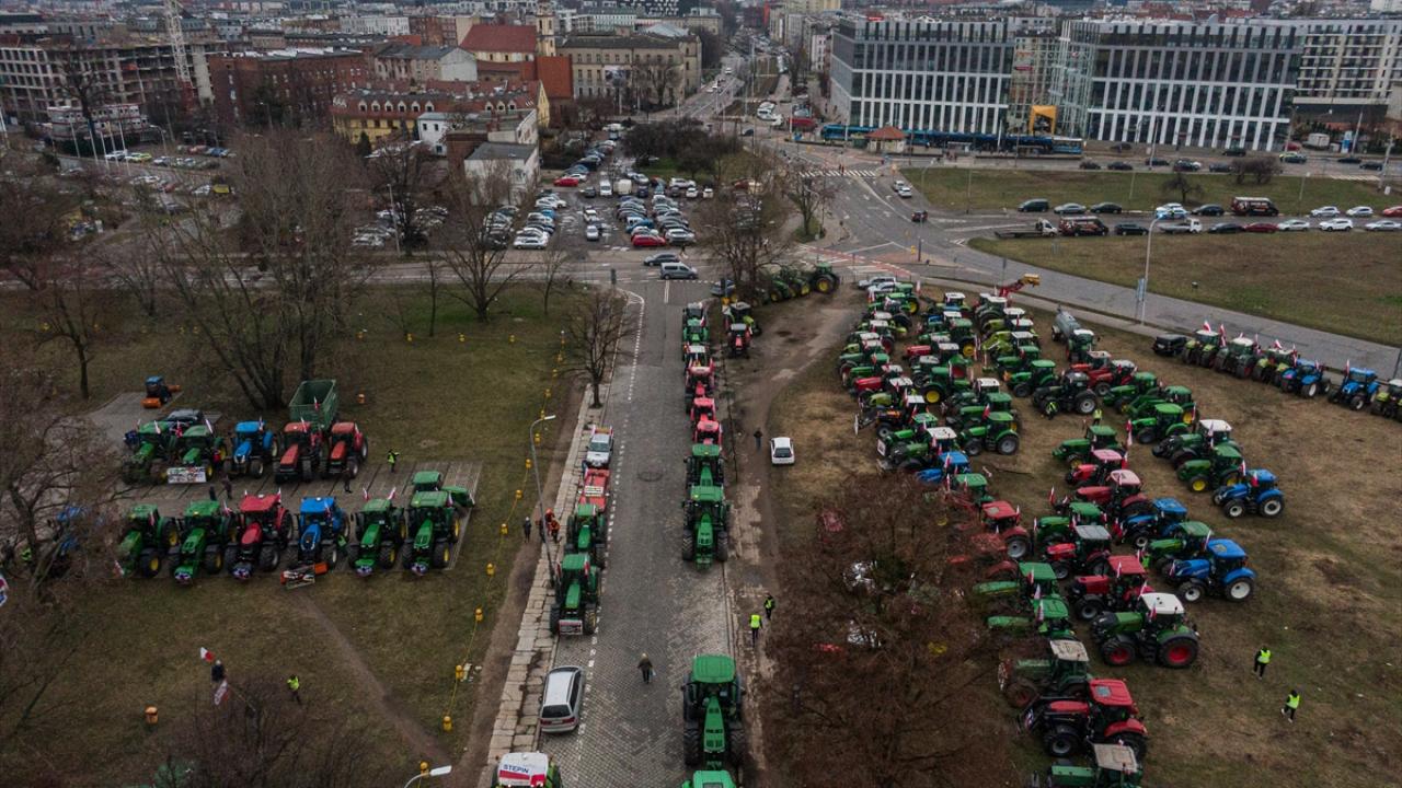 Polonyalı çiftçiler, Polonya'nın Wroclaw kentinde AB Yeşil Anlaşması ve Ukrayna'dan tahıl ithalatına karşı devam eden ulusal protestolar kapsamında, AB Parlamentosu bilgi ofisi ve Polonya Martal ofisi önünde gösteri düzenledi.