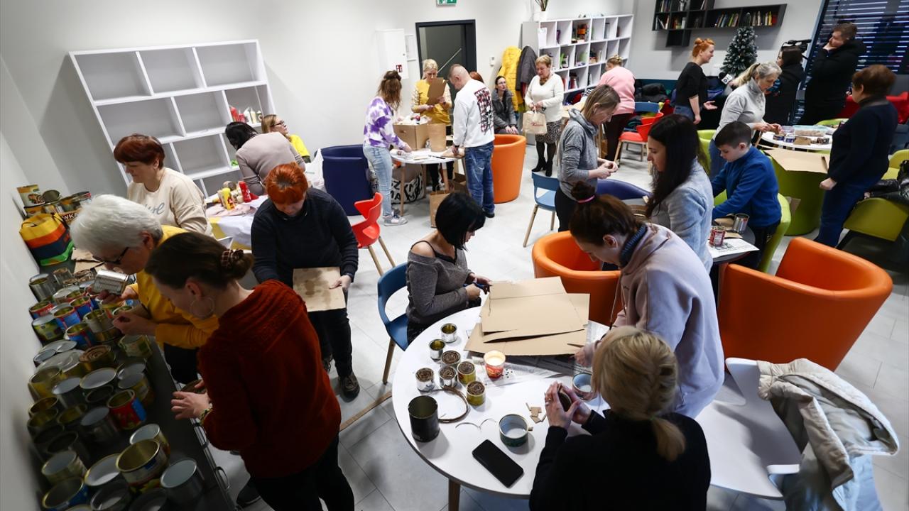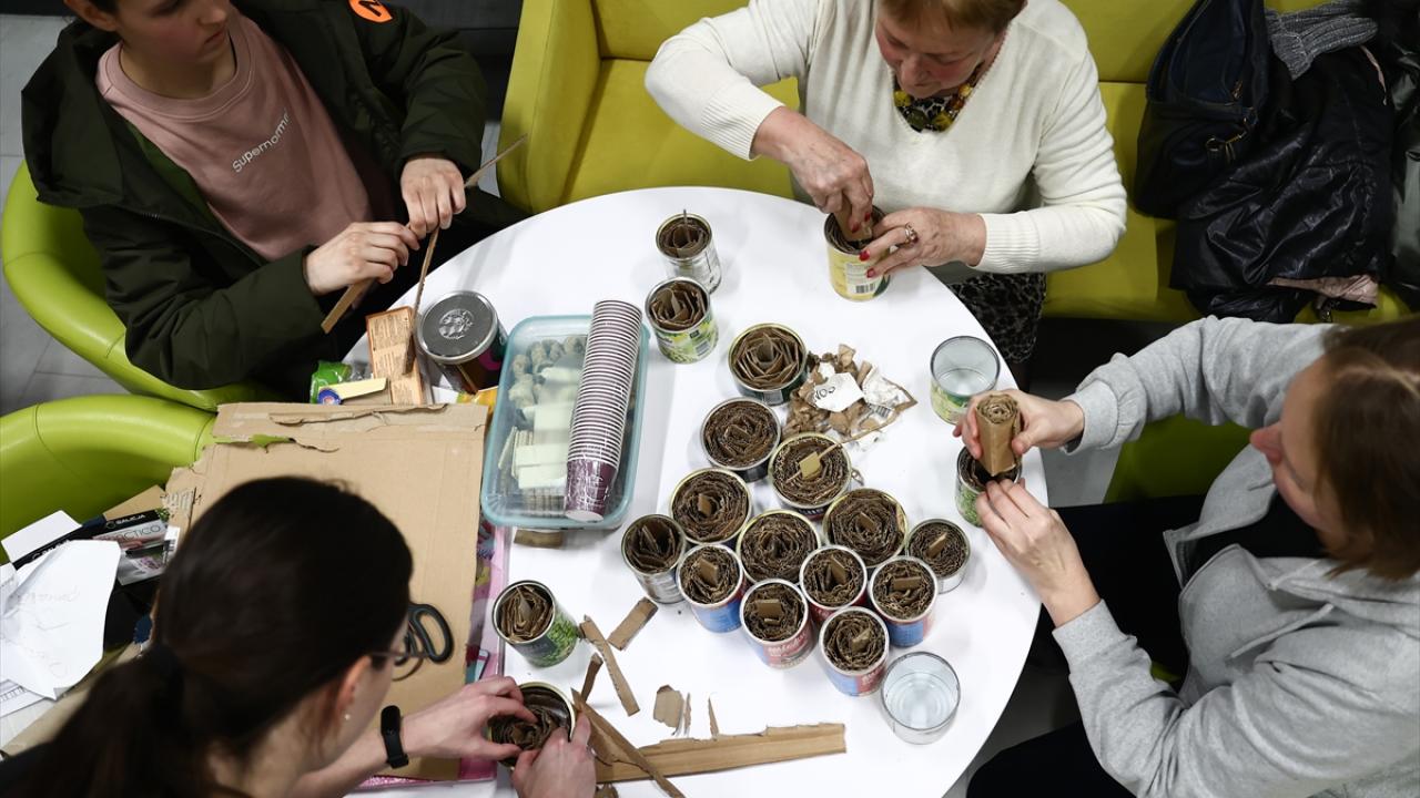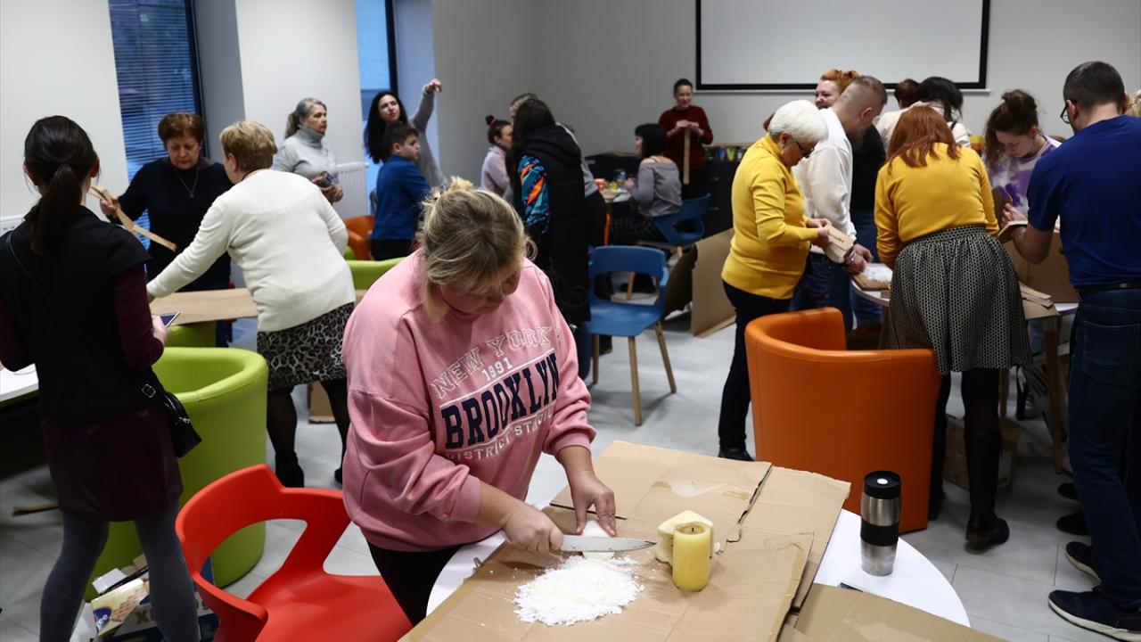 Polonya'nın Opole kentindeki atölye, Ukrayna’daki askerlere gönderilmek üzere hazırlanan siper mumlarının yapımıyla ilgili gönüllülere eğitim veriliyor.