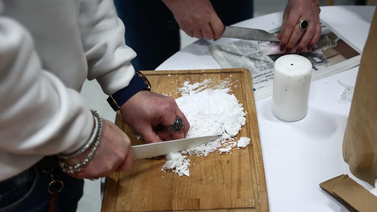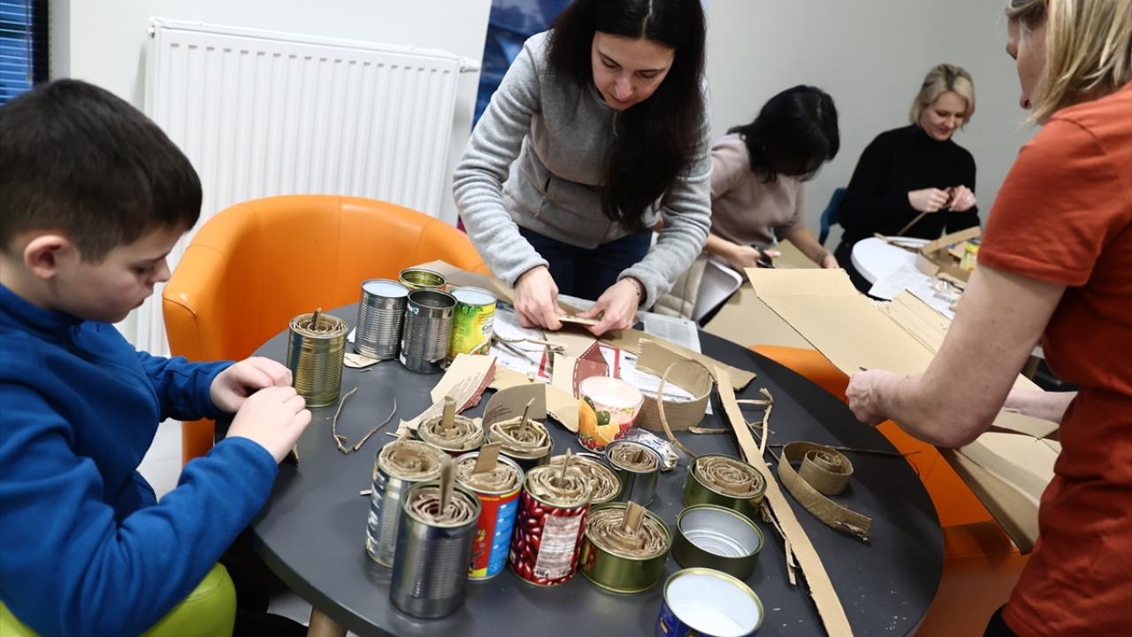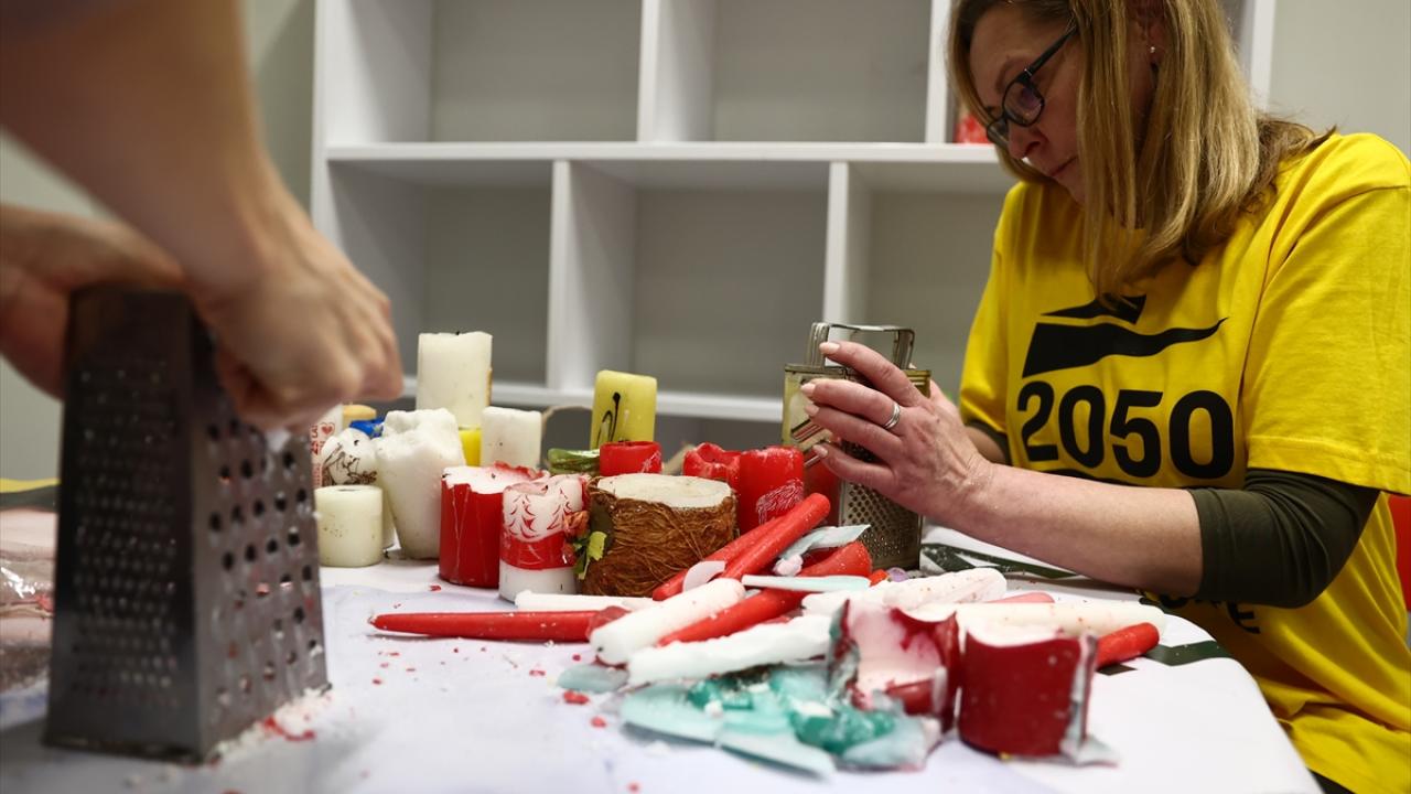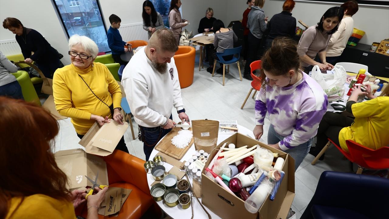 Polonya'nın Opole kentindeki atölye, Ukrayna’daki askerlere gönderilmek üzere hazırlanan siper mumlarının yapımıyla ilgili gönüllülere eğitim veriliyor.