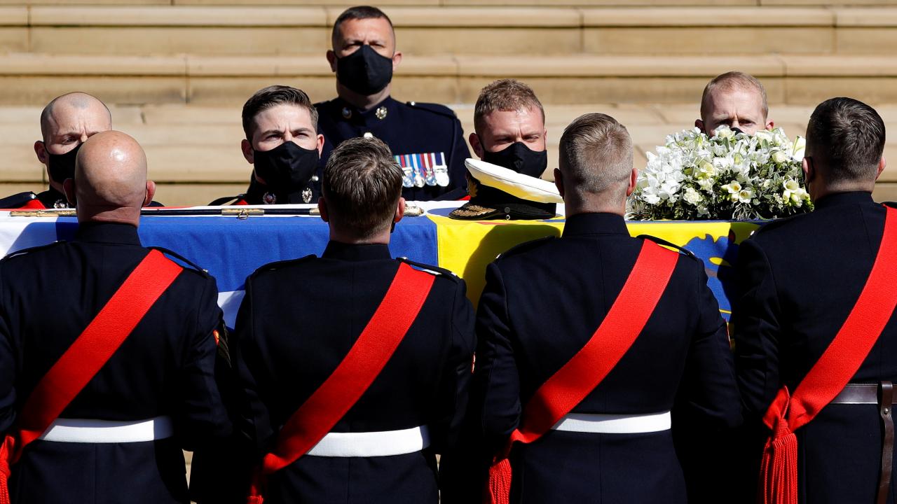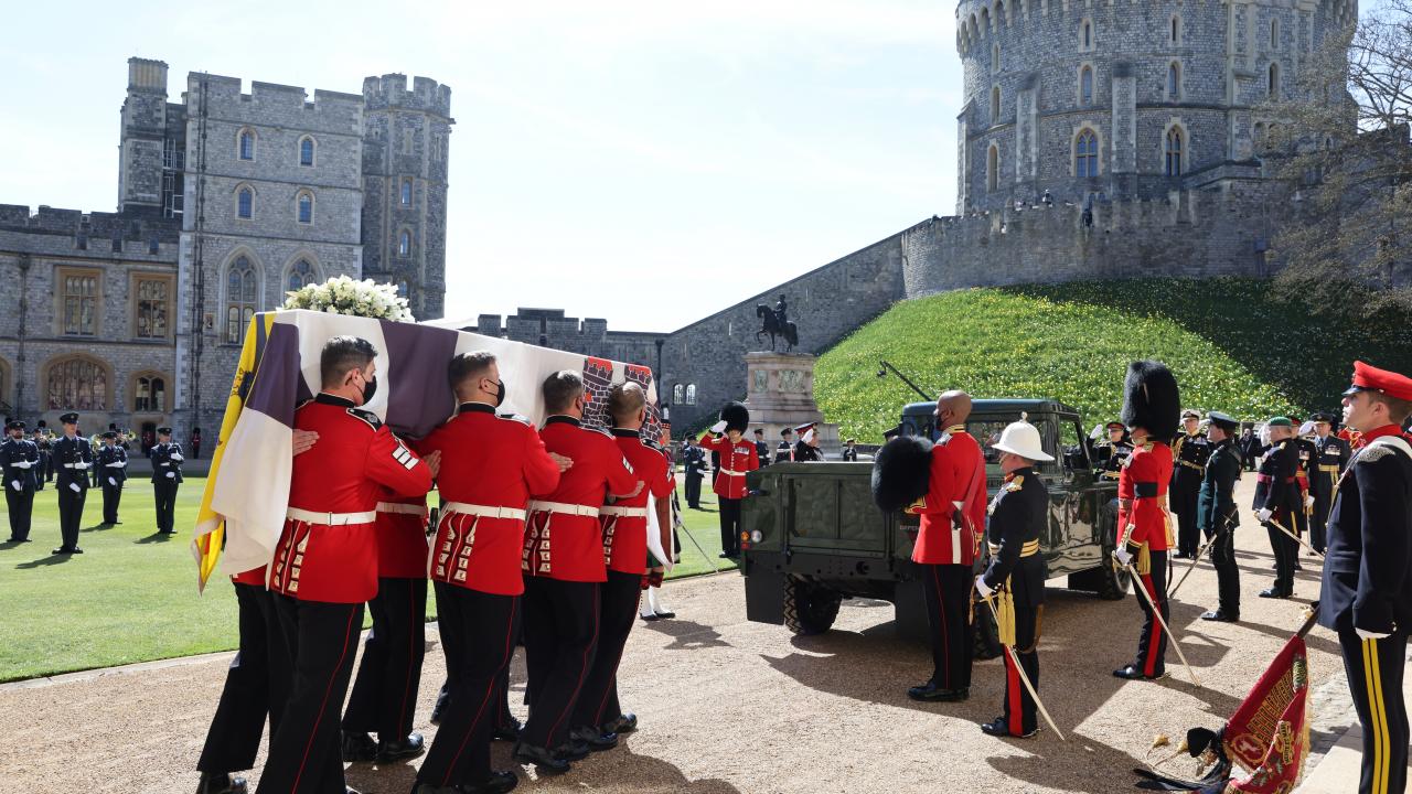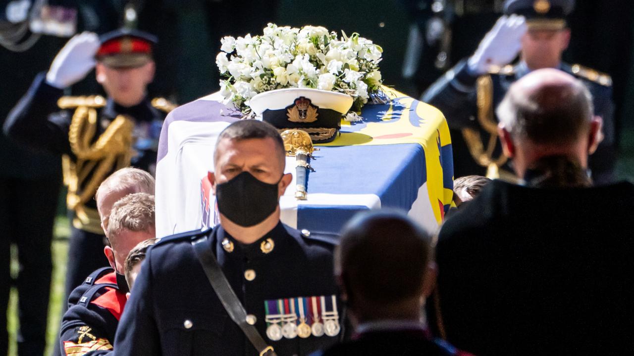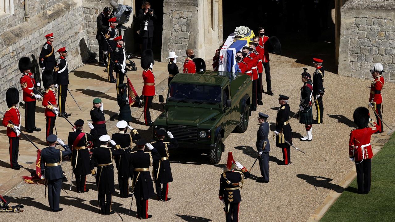Cenaze aracı, saat 14.53`te Prens Philip`in defnedileceği Saint George Şapeli`ne vardı. Tabutun üzerine Prens Philip`in donanma şapkası ve törenlerde kullanılan donanma subayı kılıcı konuldu.