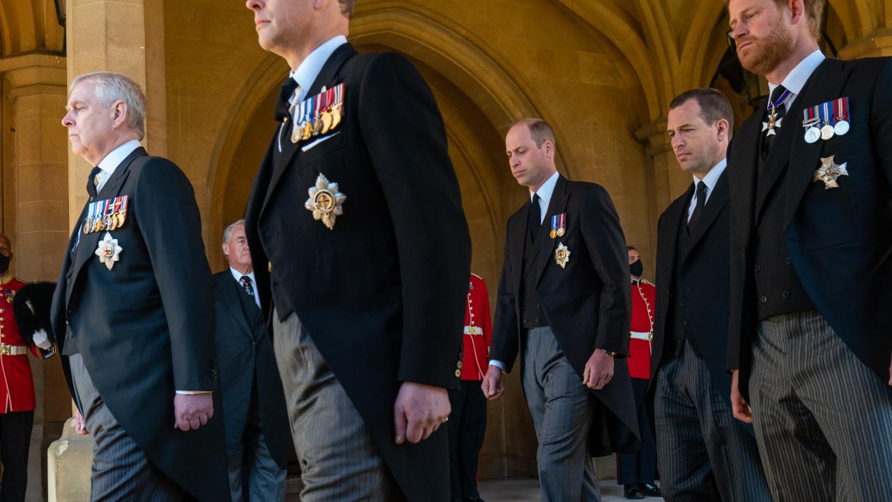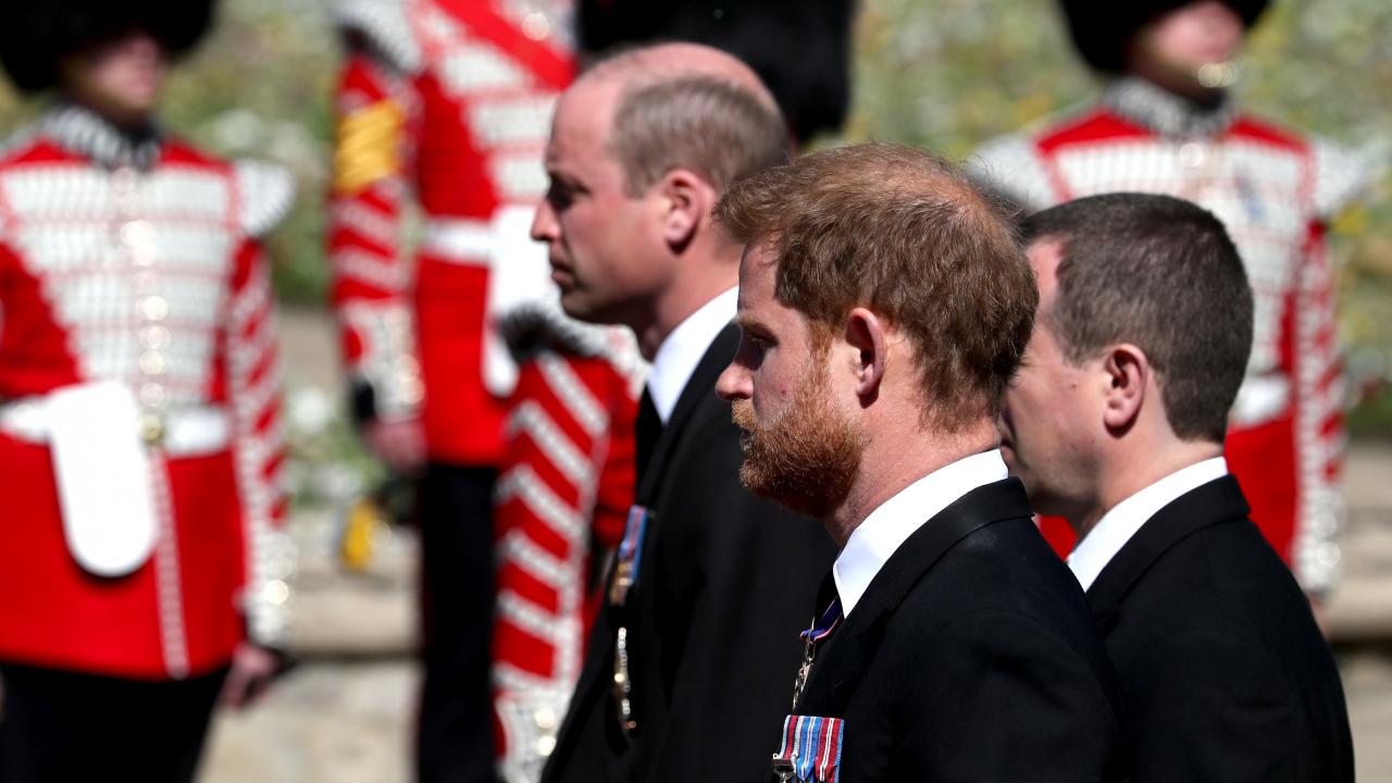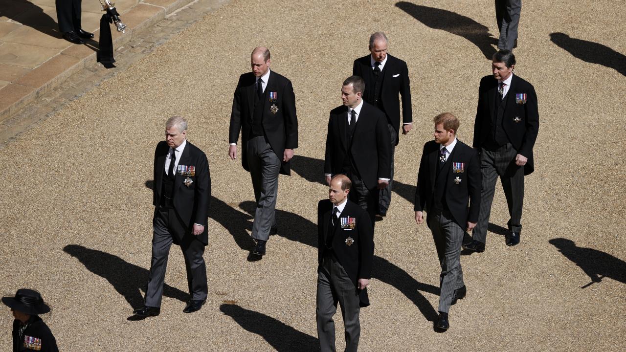 Prens William ile Kraliyet`teki görevlerinden ayrılan ve ailesiyle sorunları bulunduğu ifade edilen Prens Harry`nin arasında Prenses Anne`in oğlu Peter Phillips`in yürüdüğü görüldü. Kraliyet ailesinin erkek üyelerinden askeri üniforma yerine sivil kıyafetler giymeleri istendi.