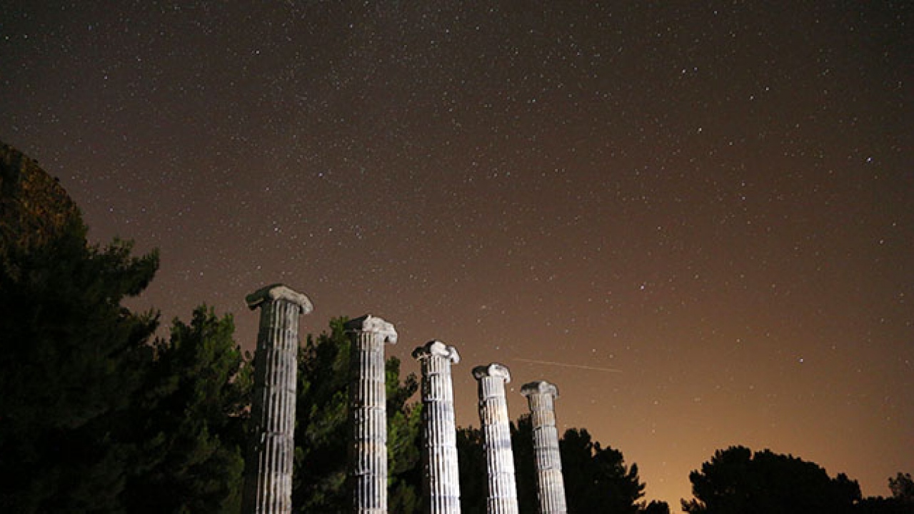 Aydın'ın Söke ilçesindeki "Anadolu'nun Pompeisi" olarak bilinen UNESCO Dünya Miras Geçici Listesi’ndeki Priene Antik Kenti, gündüz olduğu kadar gece de fotoğraf tutkunlarının akınına uğruyor.
