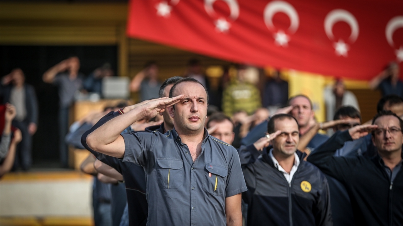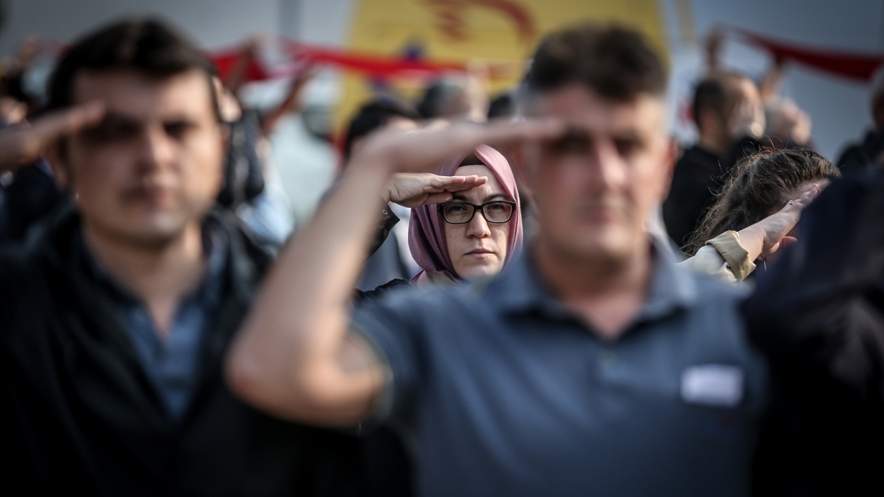 Saygı duruşunda bulunup İstiklal Marşı`nı okuyan katılımcılar, etkinliğin sonunda asker selamı verdi.