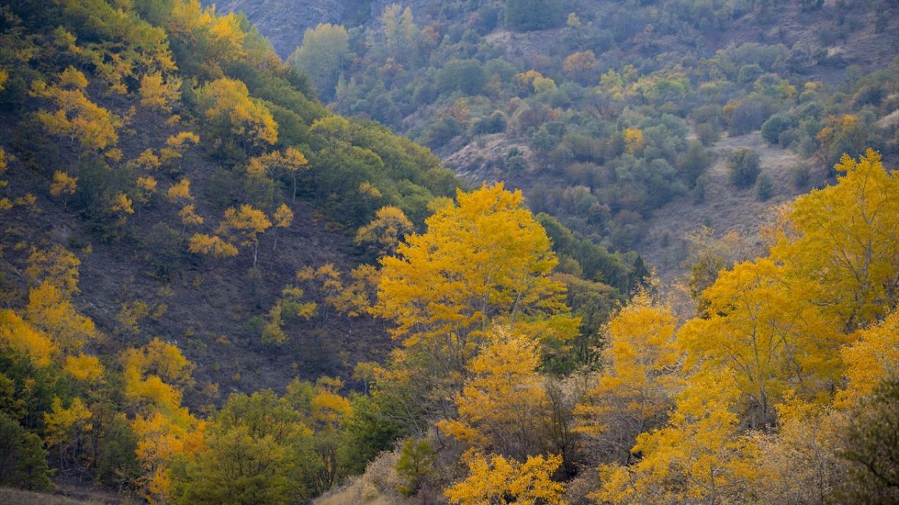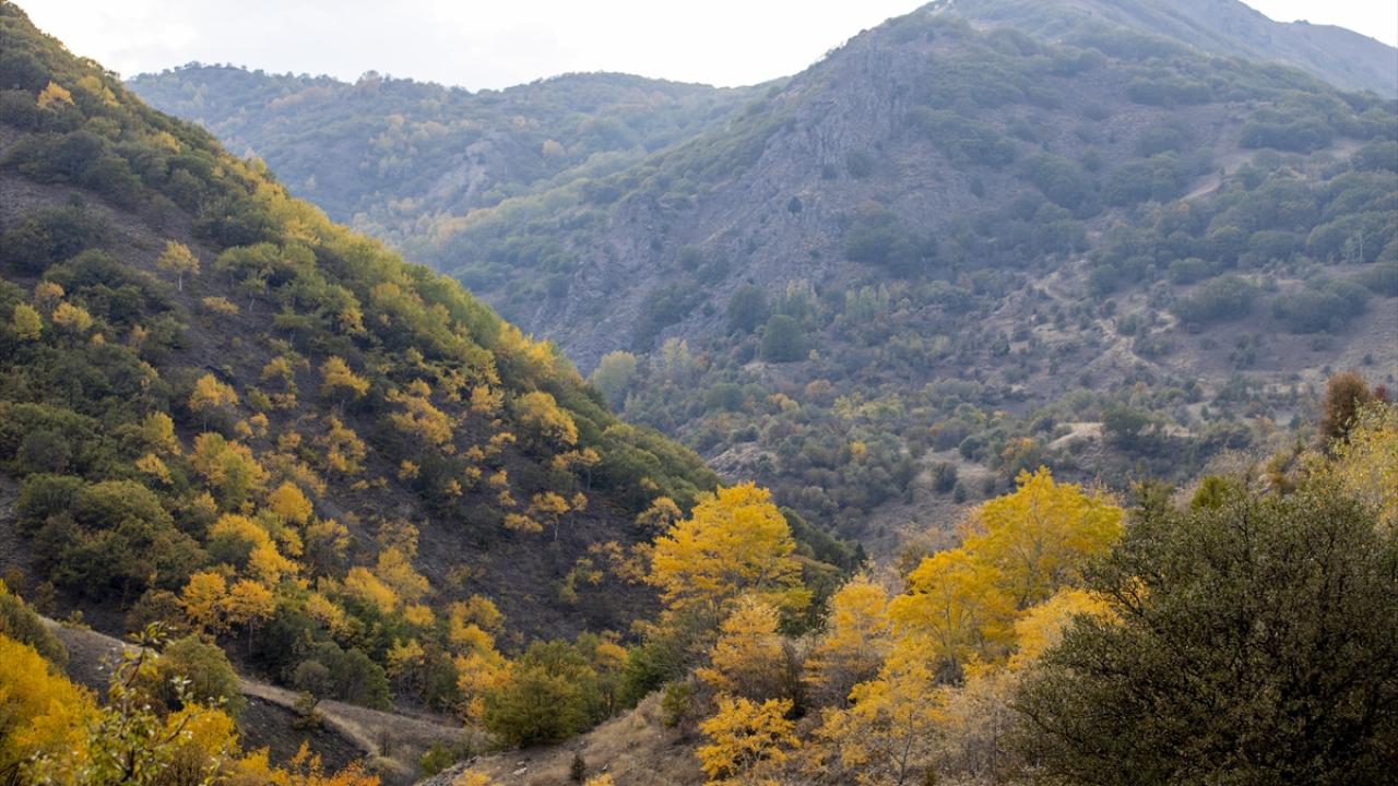 Tunceli'deki Pülümür Vadisi'nde sonbaharın gelişiyle ormanlık alanlar yeşil, sarı, turuncu ve kırmızının farklı tonlarına bürünmeye başladı.