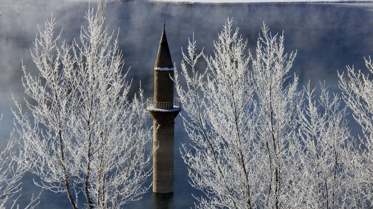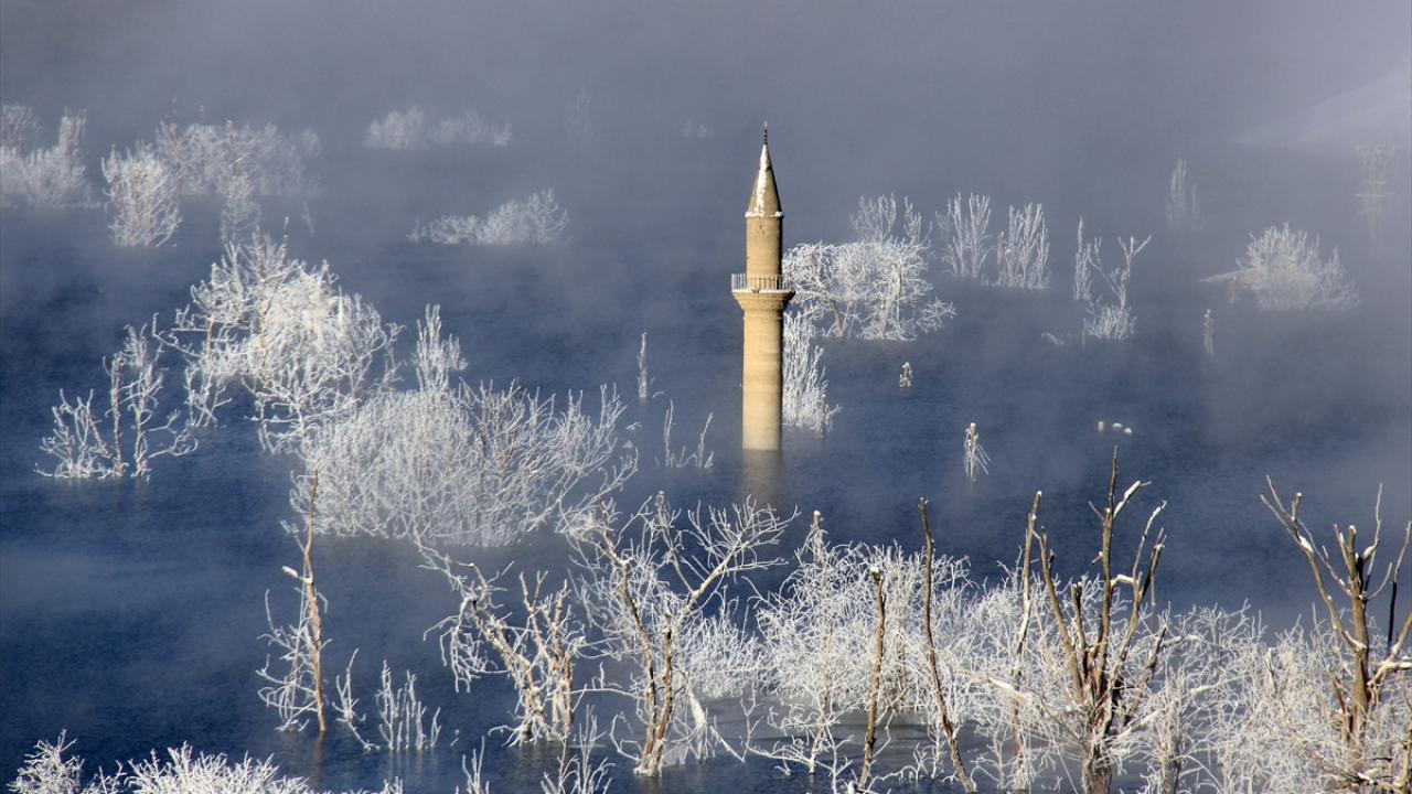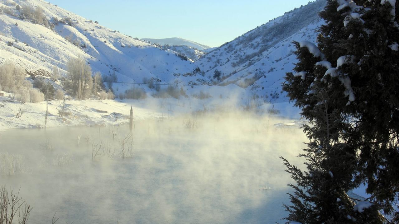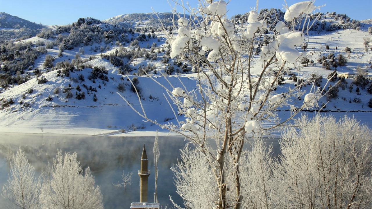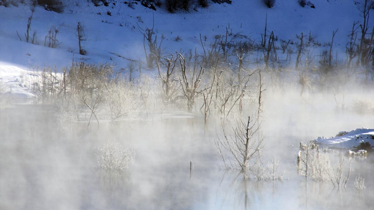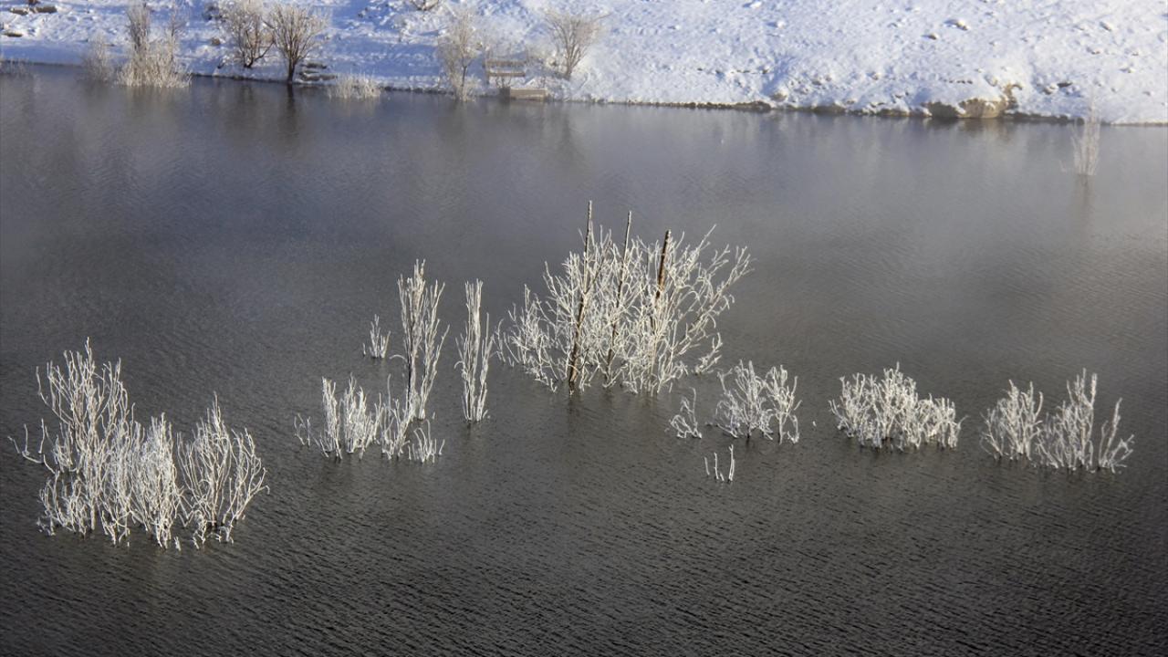 Soğuk havada barajdaki ağaçlar güzel manzaralar ortaya çıkardı.