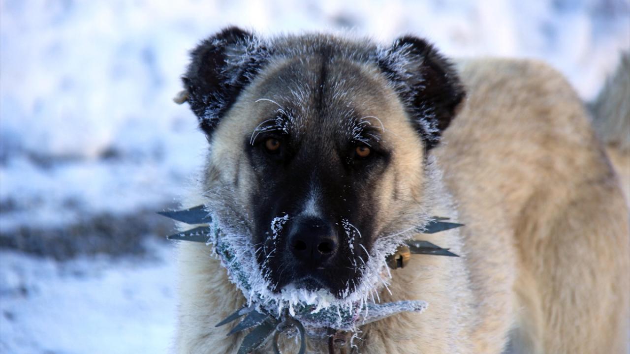 Kar kalınlığının yer yer 30 santimetreye ulaştığı ağaçlık alanda gezinen köpeklerin yüzlerinin kırağıyla kaplanması ilginç görüntü oluşturdu.