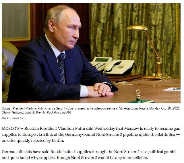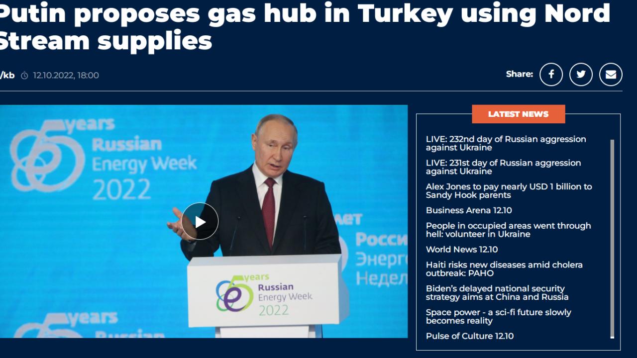 Singapur medyasında, Putin`in Türkiye önerisine ek, Avrupa`ya giden hatlardaki sızıntılar ve yükselen enerji fiyatları hatırlatıldı.