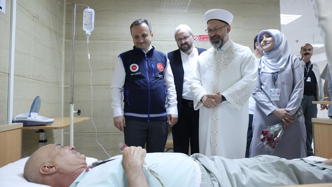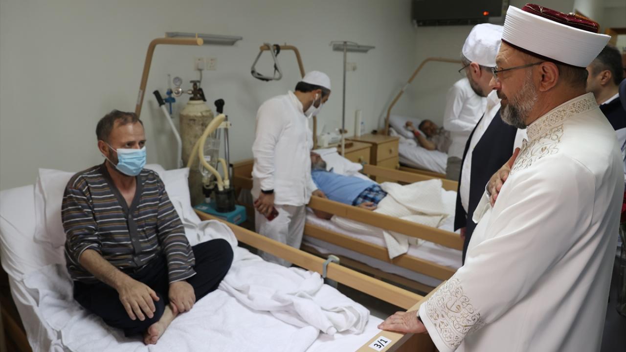 Doktorların hastalanan Türk hacı adaylarına iyi hizmet verdiğini belirten Erbaş, "İnşallah burada yatan hastalarımız en kısa zamanda şifa bulurlar. Doktorlarımızın tedavileri sonuç verir ve Arafat`a da çıkmak nasip olur." dedi.