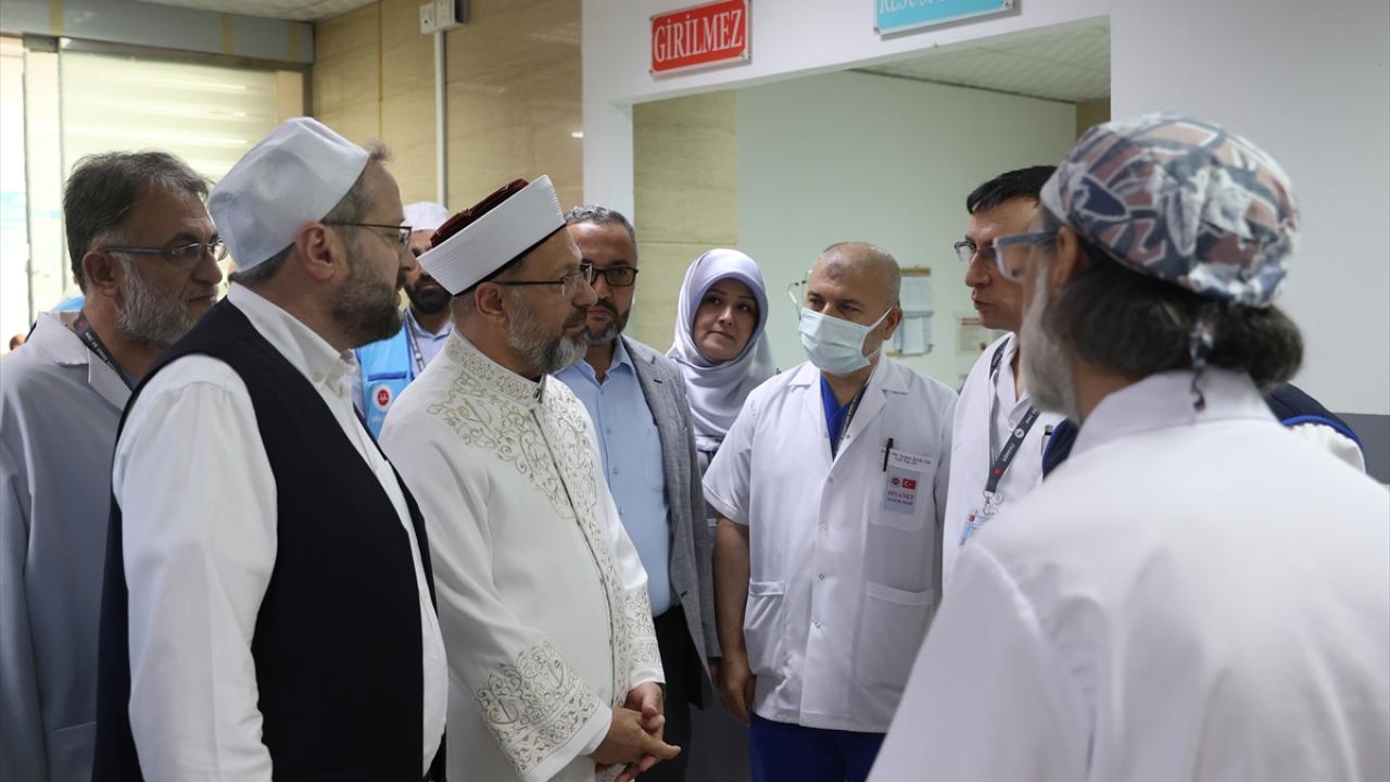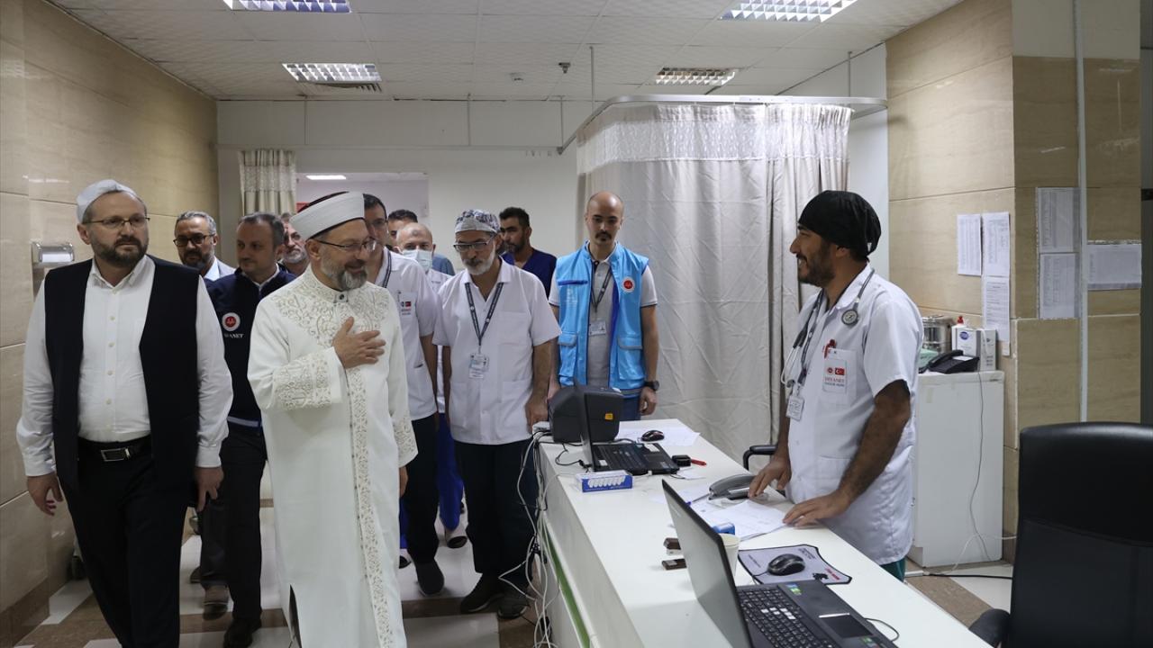 Diyanet İşleri Başkanı Ali Erbaş, hastaneyi ziyaret ederek, Sağlık Ekip Başkanı Zekeriya Abdulazizoğlu ve Başhekim Murat Türkyılmaz`dan bilgi aldı, sağlık çalışanlarıyla bir araya geldi.