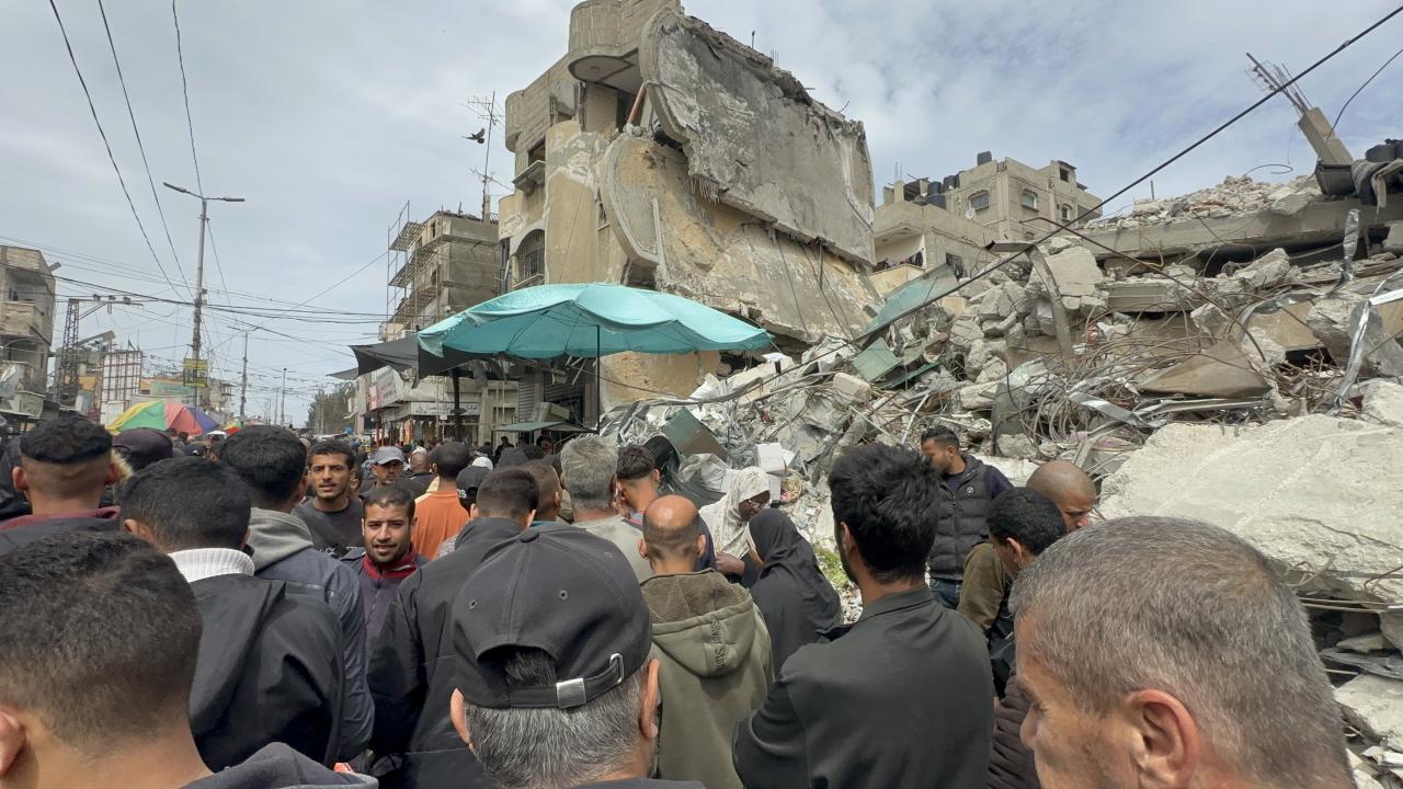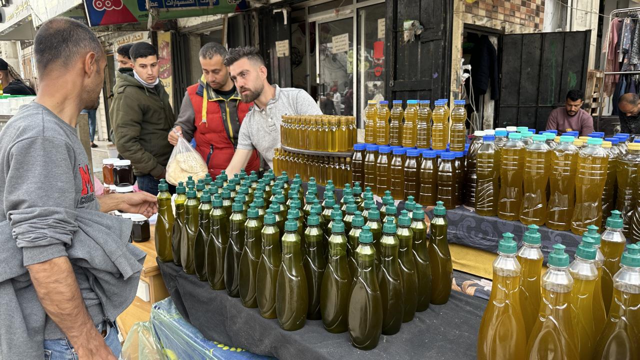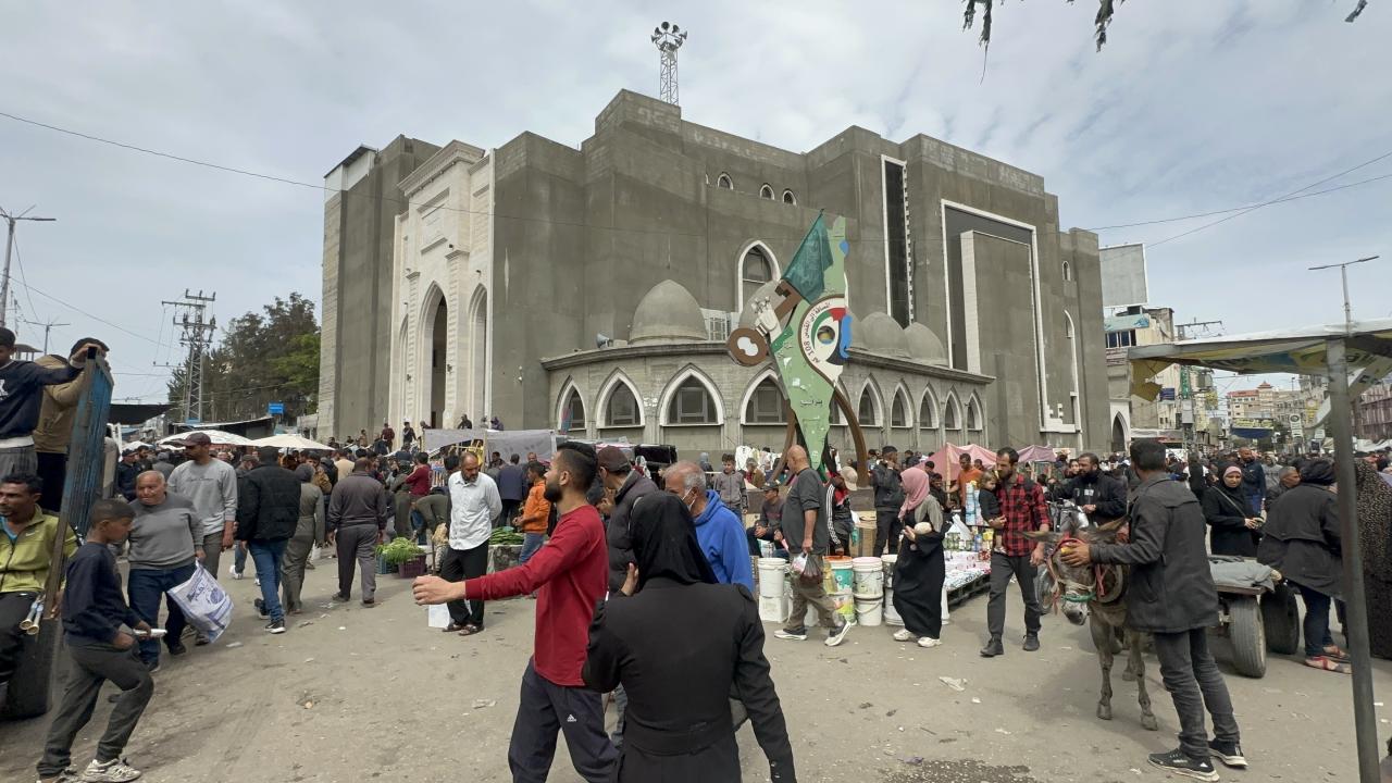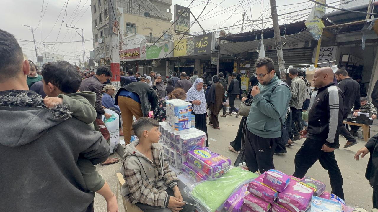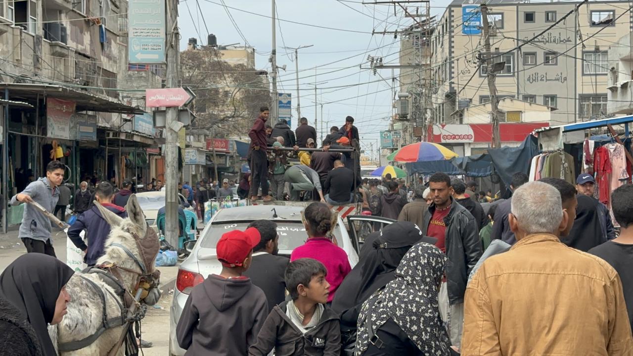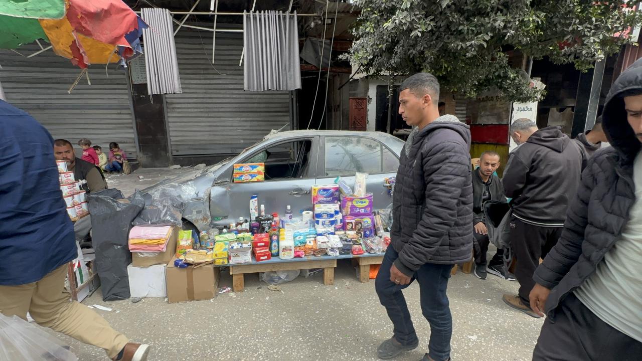 Ramazan ayında Refah kenti sokaklarında kurulan bir pazarda, pazarcılar, ellerinde kalan az sayıdaki yiyecek ve temel yaşam ihtiyaç ürünlerini satışa çıkardı.