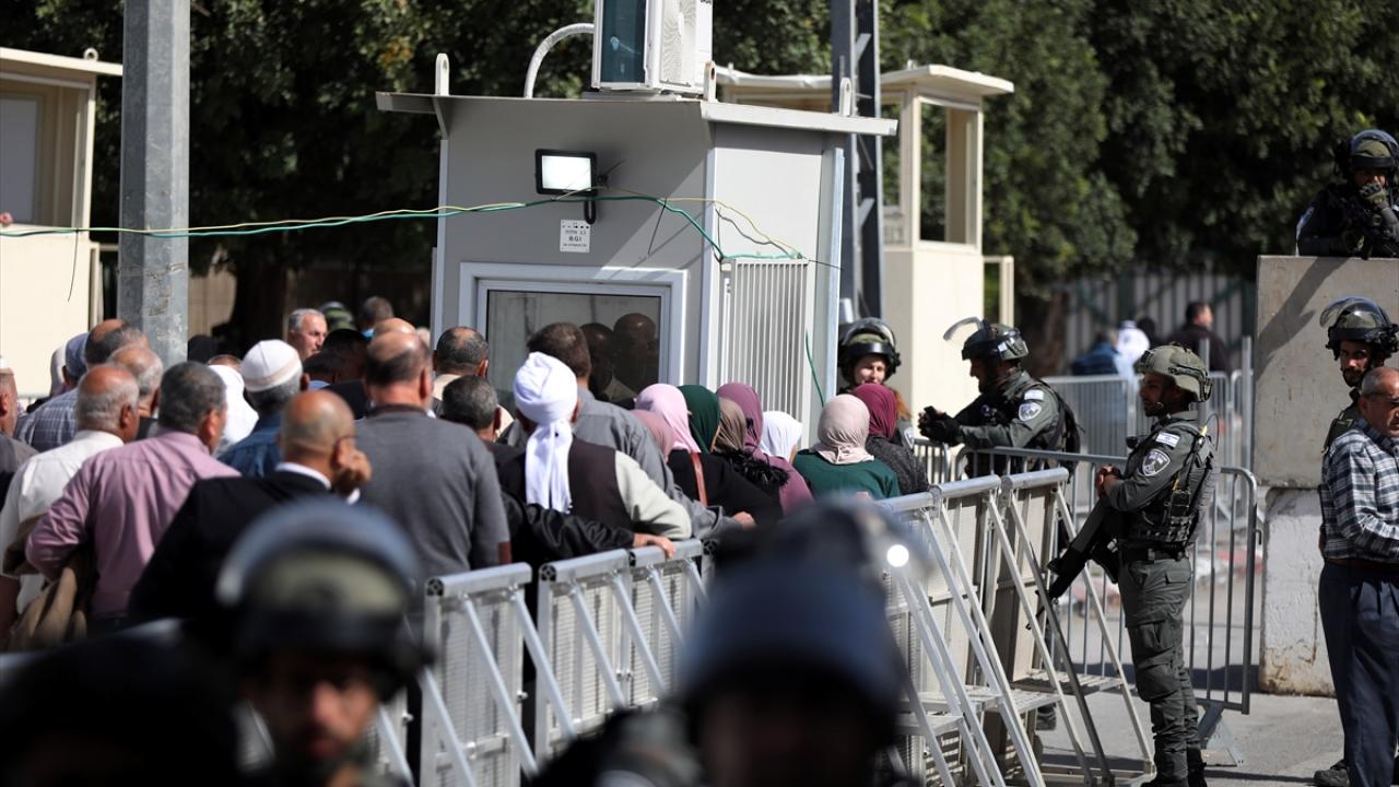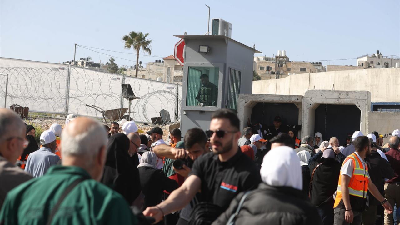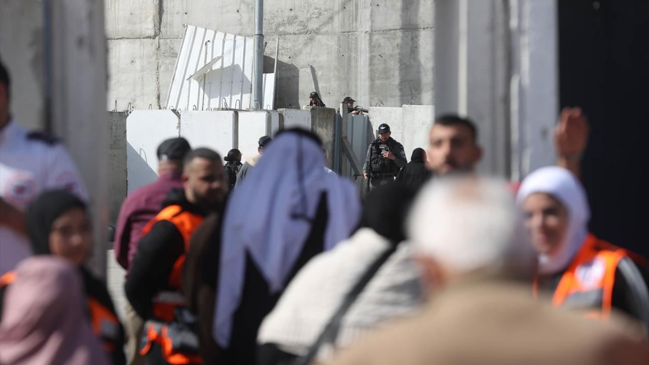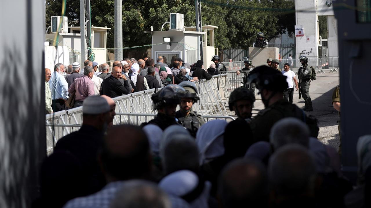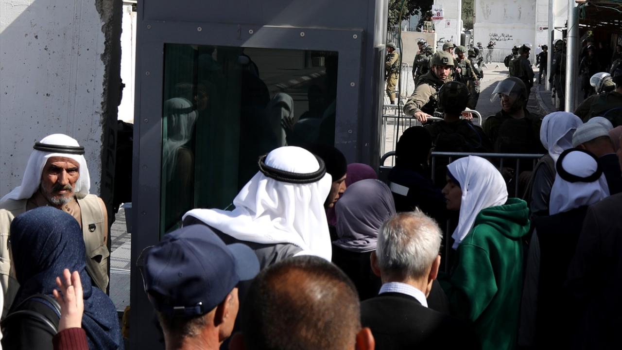 İşgal altındaki Batı Şeria'da yaşayan Filistinliler, ramazan ayının son cuma namazını Mescid-i Aksa'da kılmak için sabahın erken saatlerinden itibaren Ramallah ile Kudüs'ü ayıran Kalendiya askeri kontrol noktasında toplandı.
