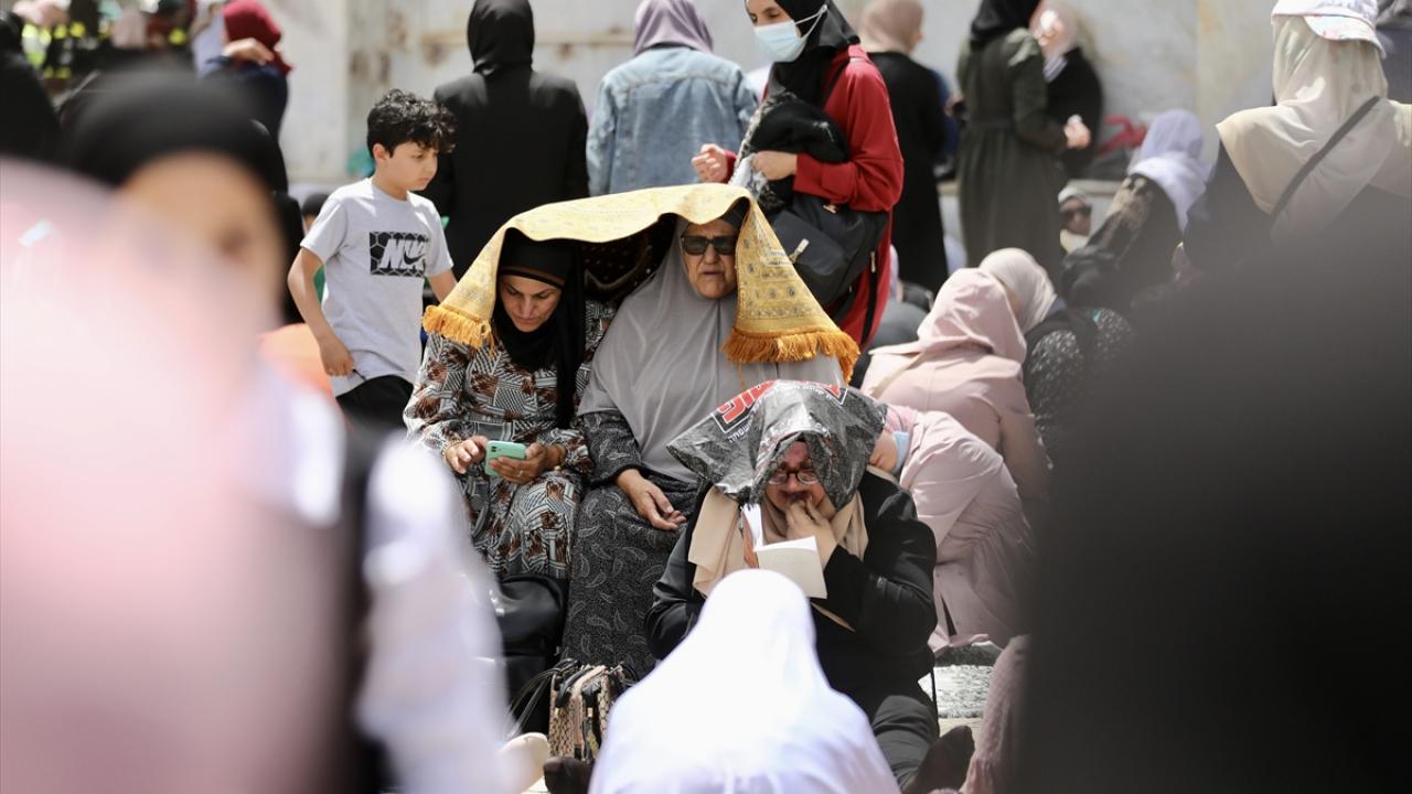 Kadınlar, çocuklar ve 50 yaş üstü erkekler Aksa’ya askeri kontrol noktalarından geçtikten sonra gelebiliyor.
