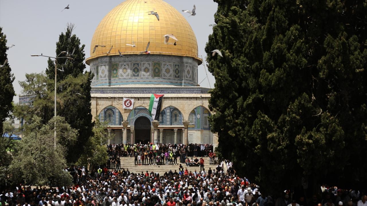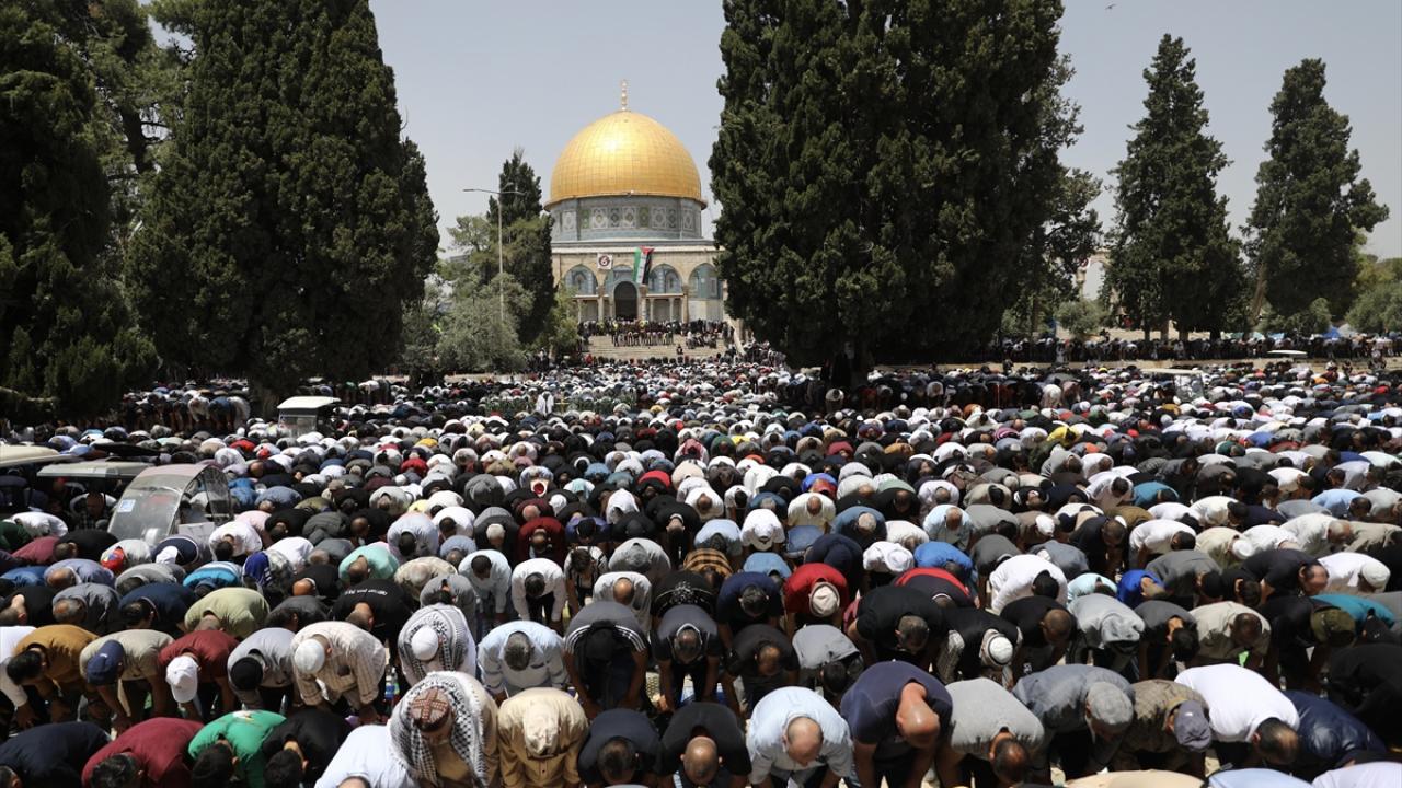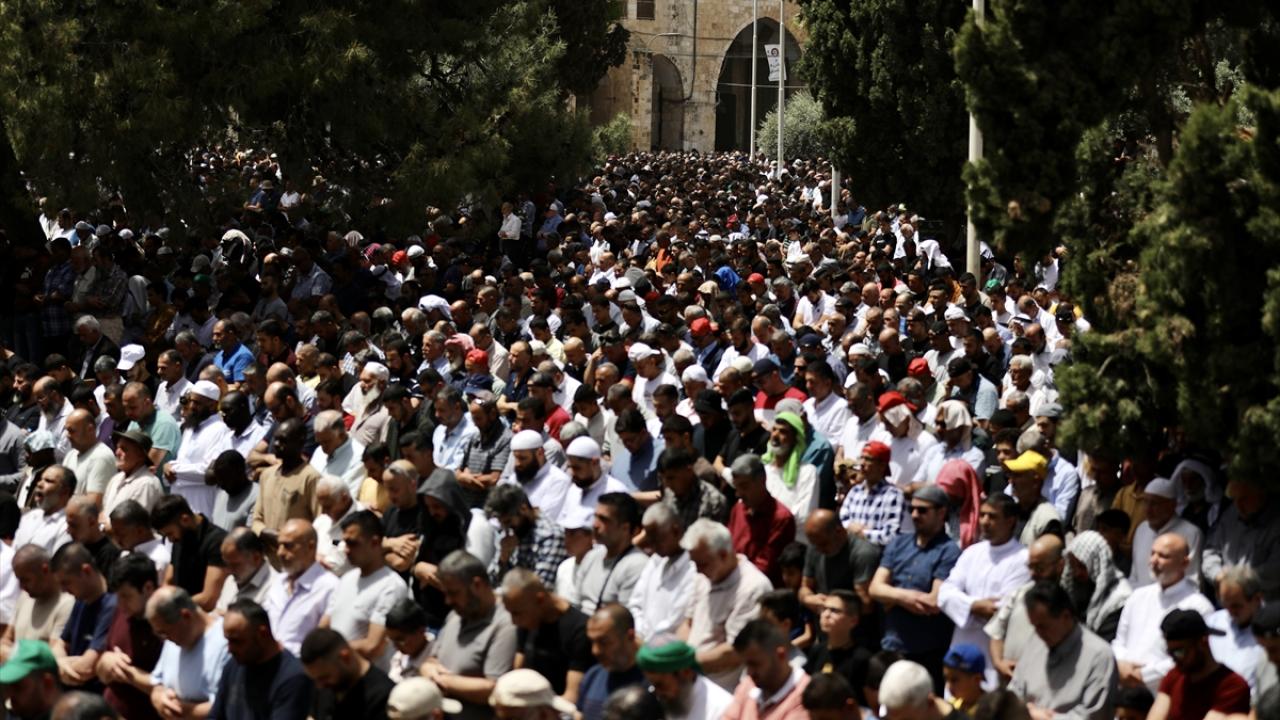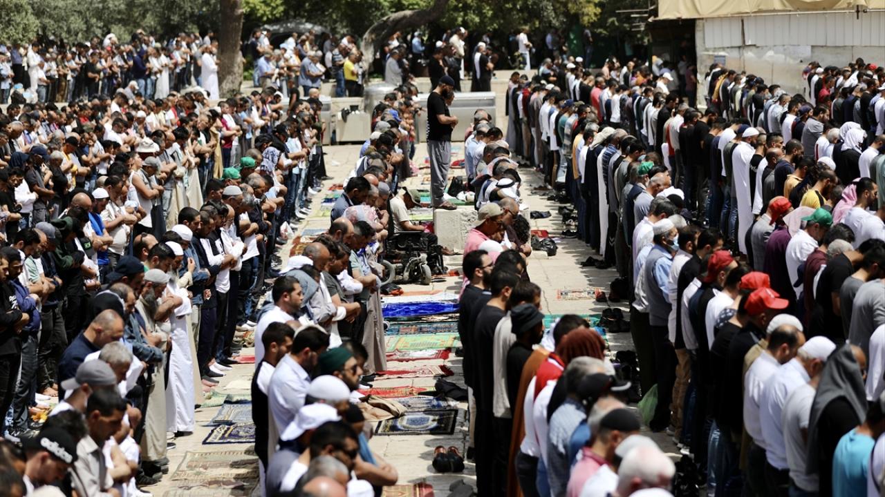 İşgal altındaki Batı Şeria’dan gelen binlerce Filistinli de cemaat arasında yerini aldı.
