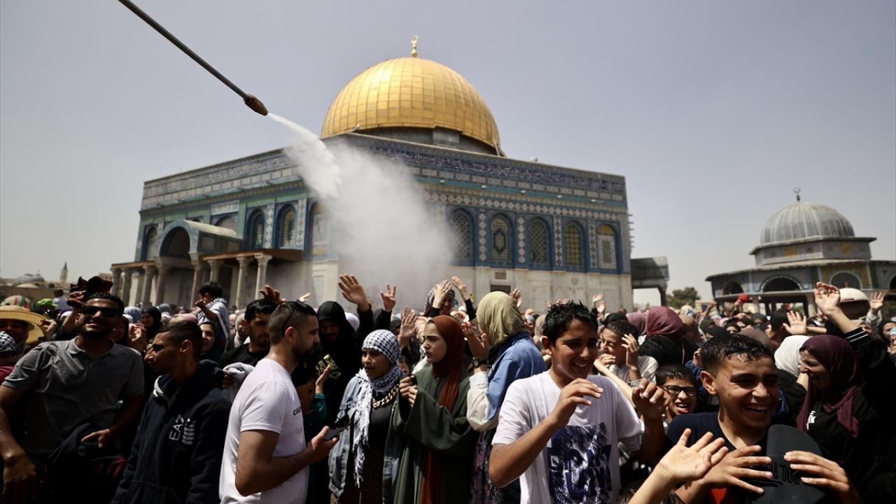 İsrail polisi, sabah namazının ardından Mescid-i Aksa`ya baskın düzenlemiş, Filistinli genç gruba kauçuk kaplı mermi ve ses bombalarıyla müdahale etmişti.
