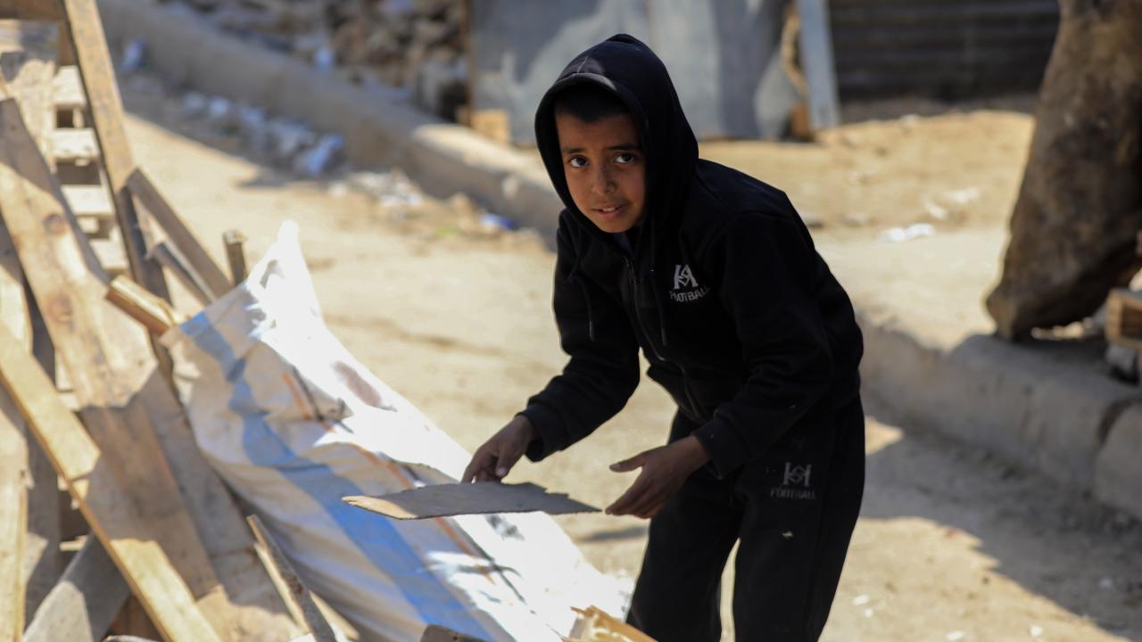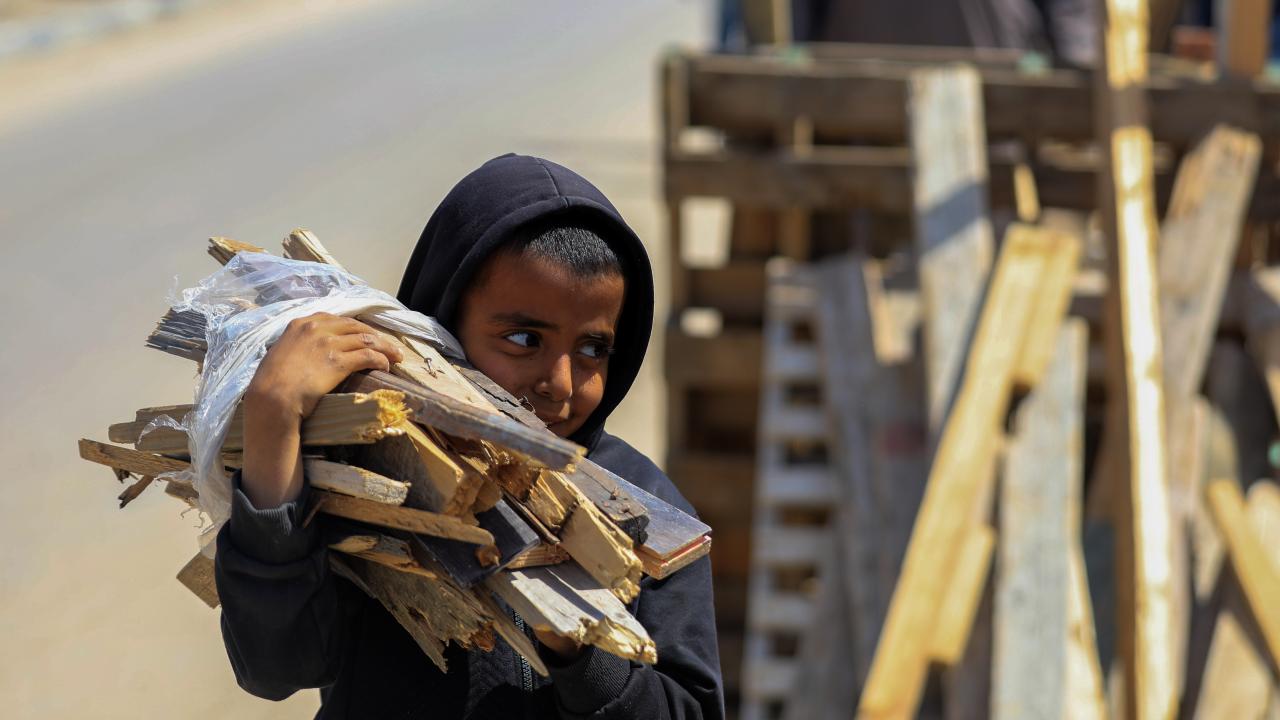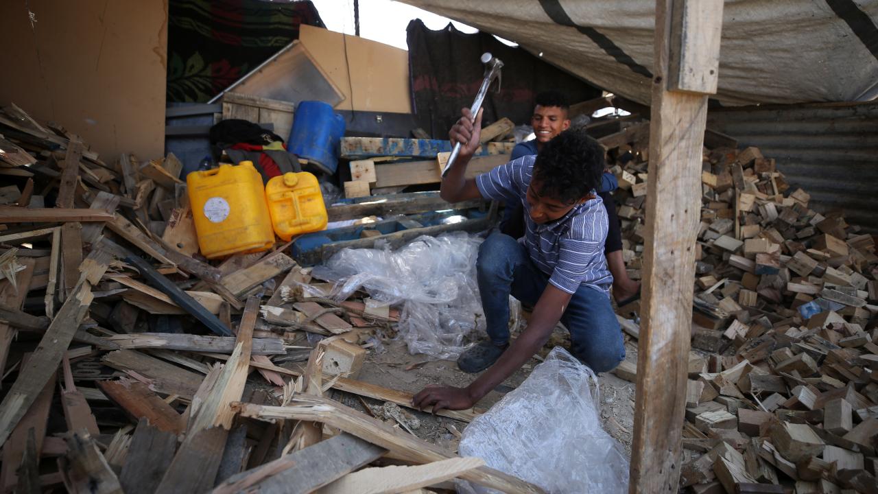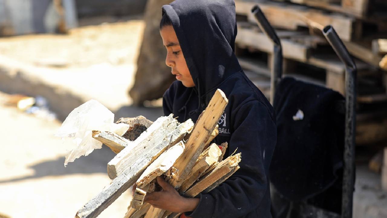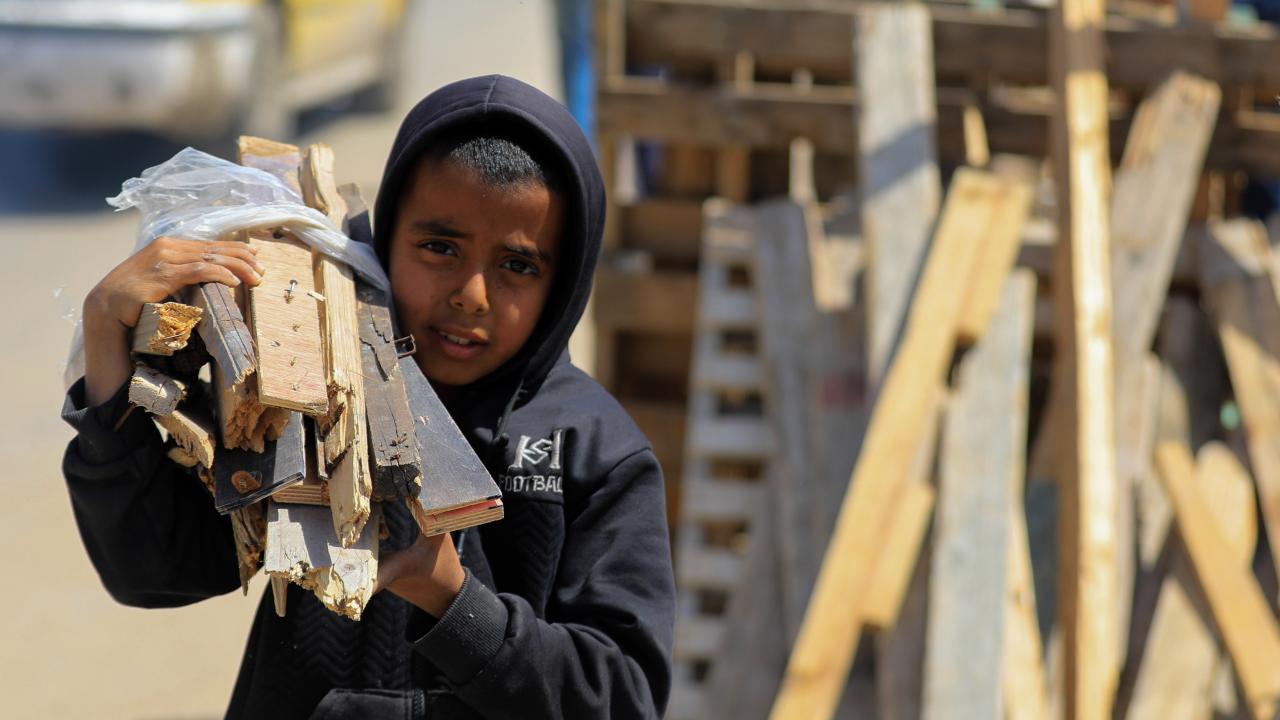 Gazze`nin Refah kentinde yaşayan savaş mağduru çocuklar, topladıkları sebze meyve kasalarını parçalar haline getirerek yemek pişirmek veya ısınmak isteyen Filistinli ailelere satıyor.