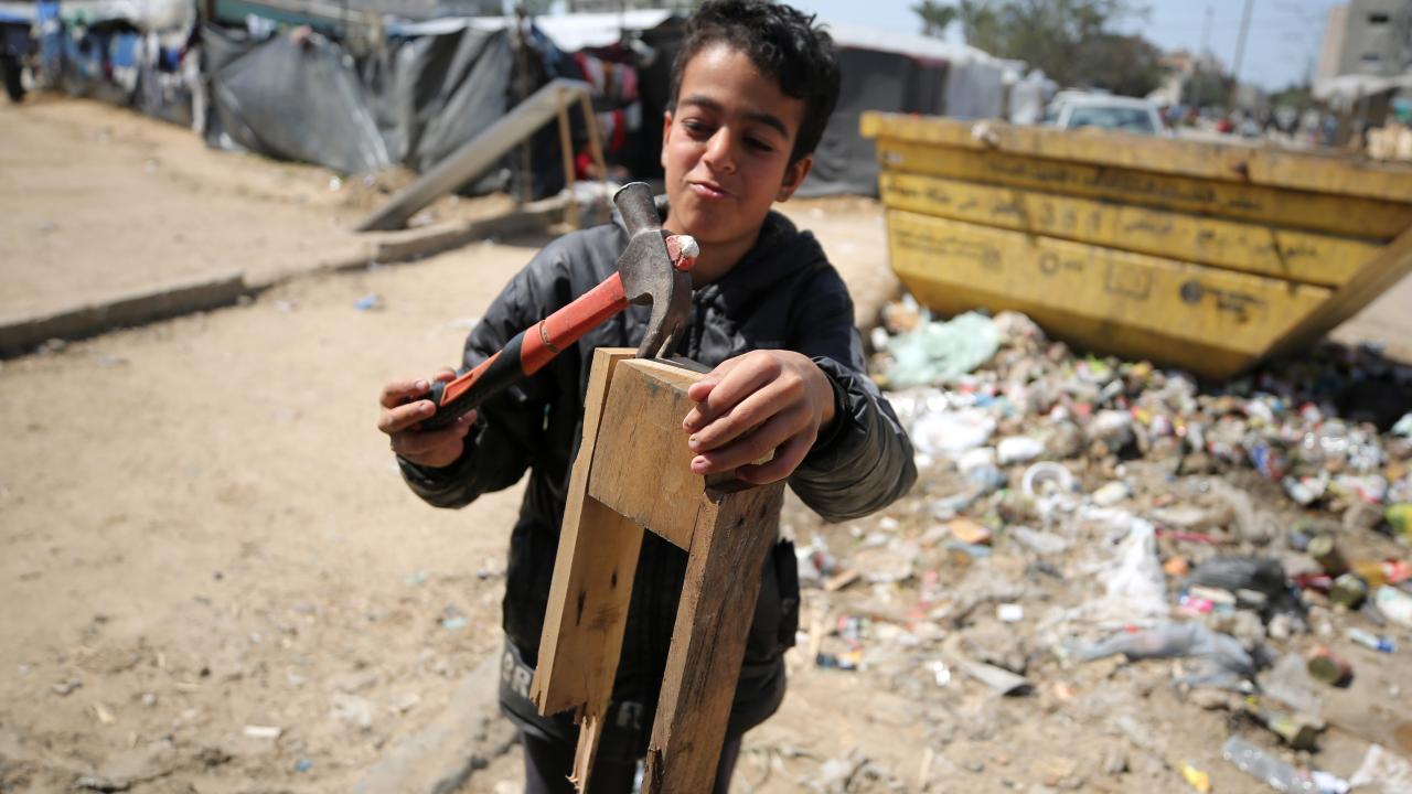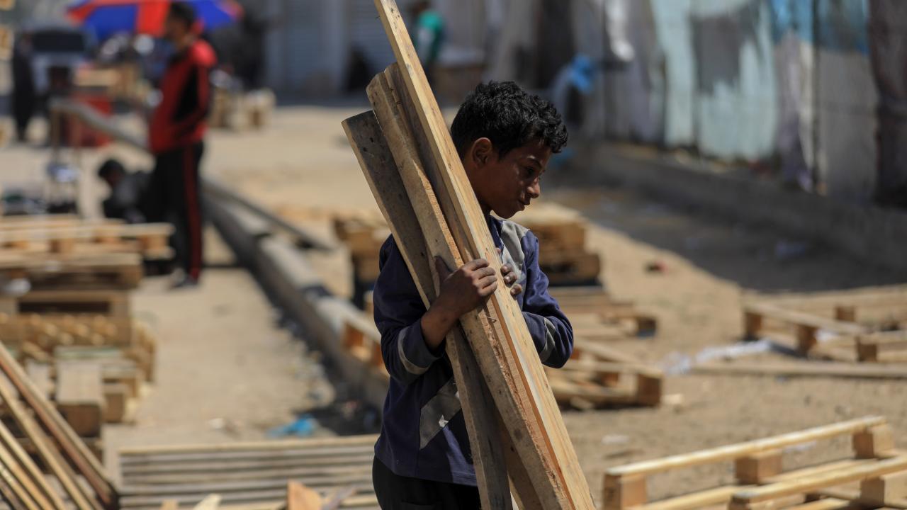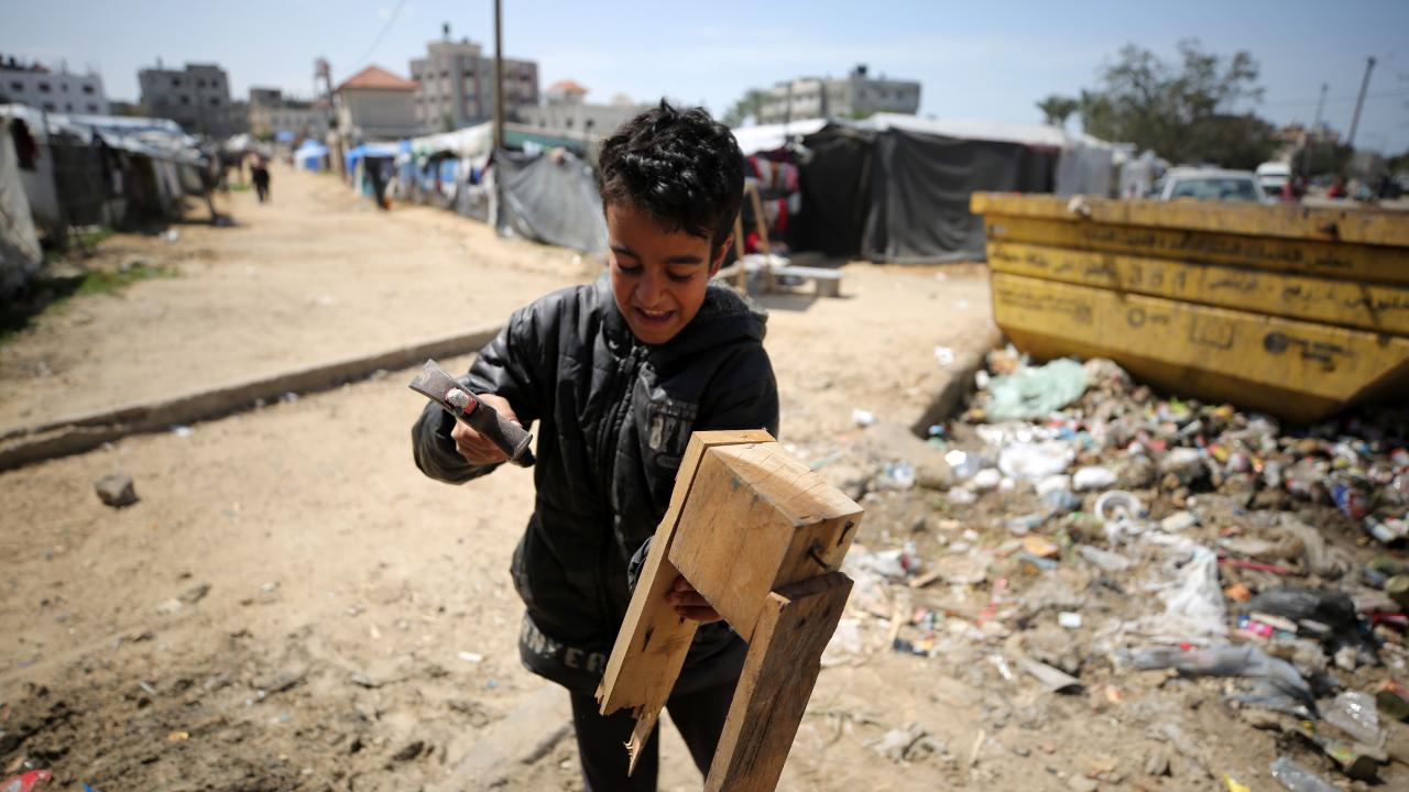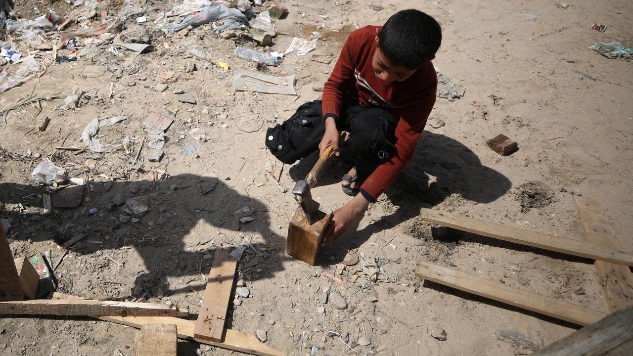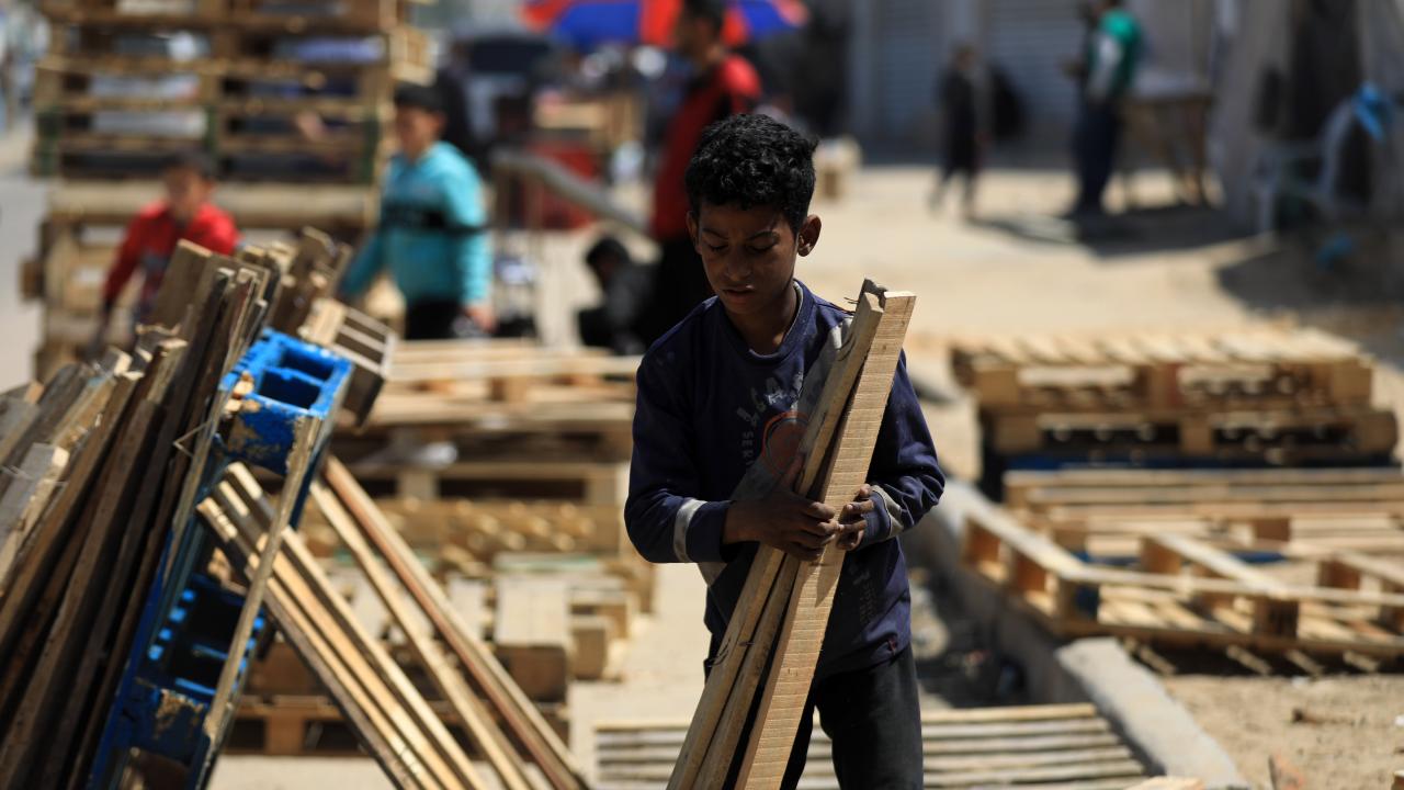 Gazze`nin Refah kentinde yaşayan savaş mağduru çocuklar, topladıkları sebze meyve kasalarını parçalar haline getirerek yemek pişirmek veya ısınmak isteyen Filistinli ailelere satıyor.