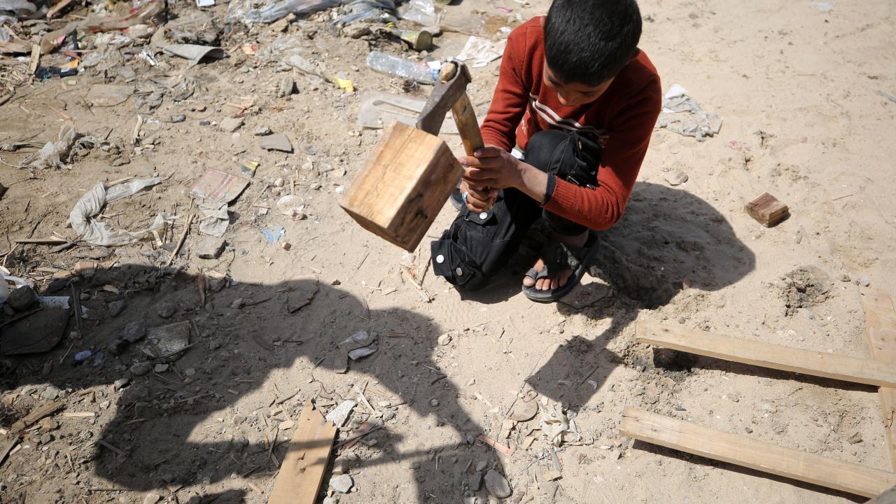 İsrail'in saldırılarını sürdürdüğü Gazze Şeridi'nde çocuklar, yıkılmış evlerin arasında topladıkları odunları satarak ailelerinin geçimini sağlamaya çalışıyor.