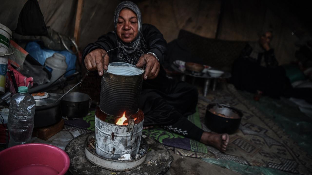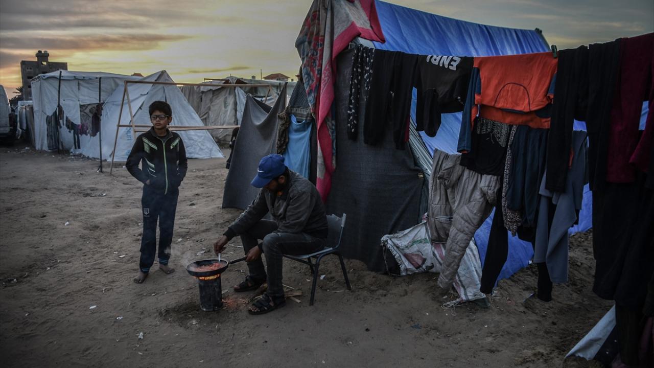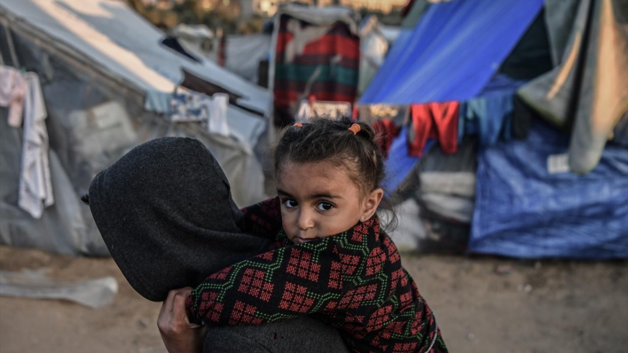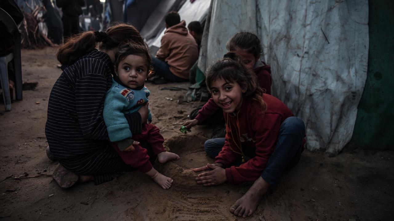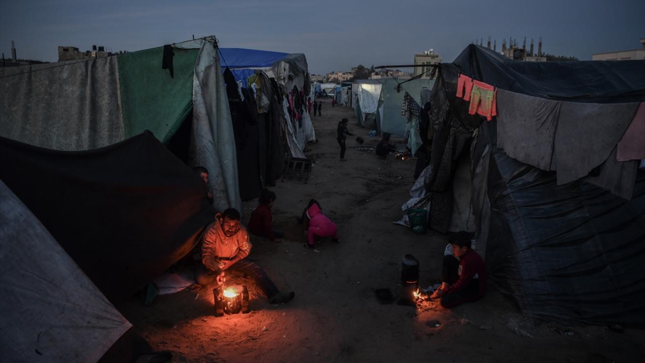 İsrail'in Gazze Şeridi'ne yönelik saldırıları nedeniyle defalarca yerinden edilen ve son olarak güneydeki Refah kentine sığınan Filistinli aileler, boş arazide kurdukları derme çatma çadırlarda zor şartlar altında yaşamlarını sürdürmeye çalışıyor.