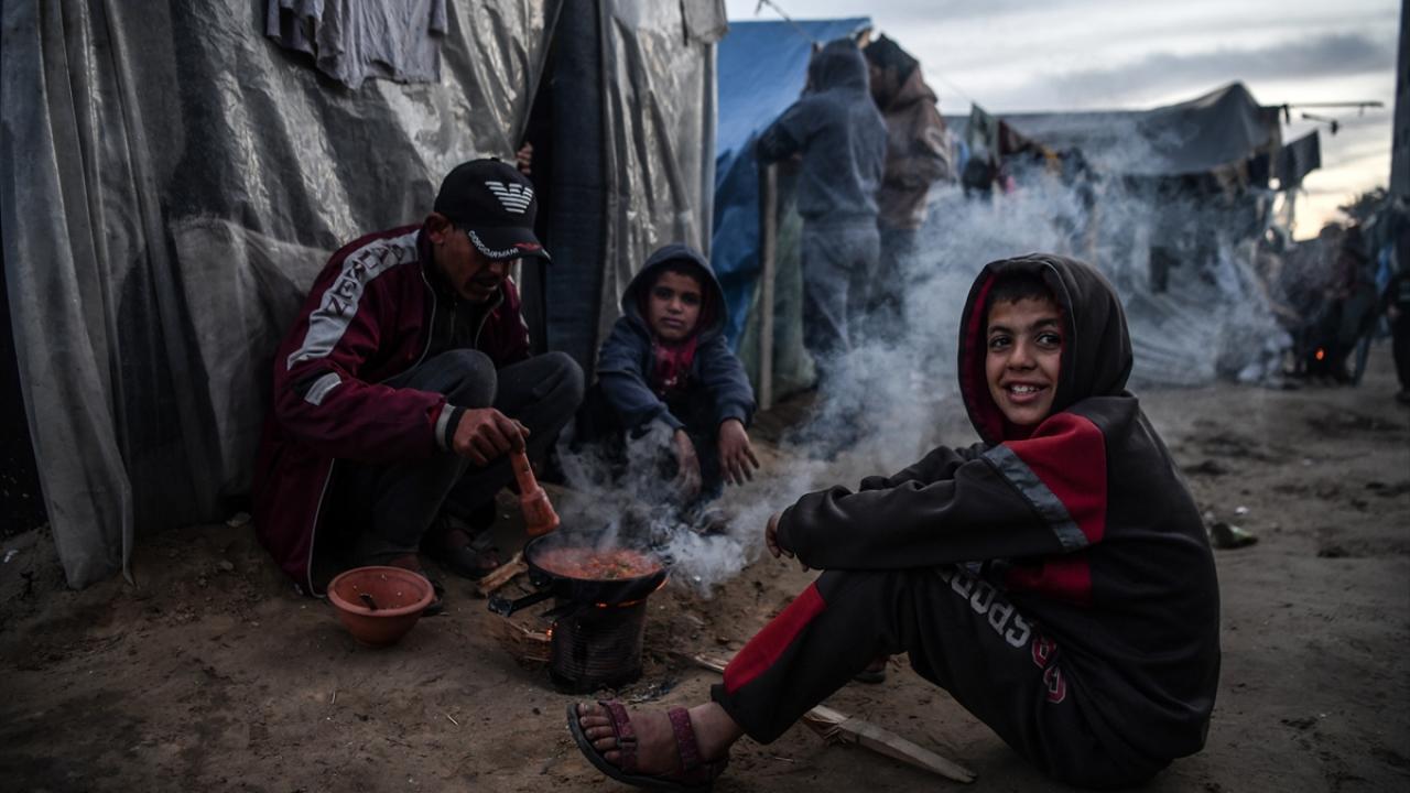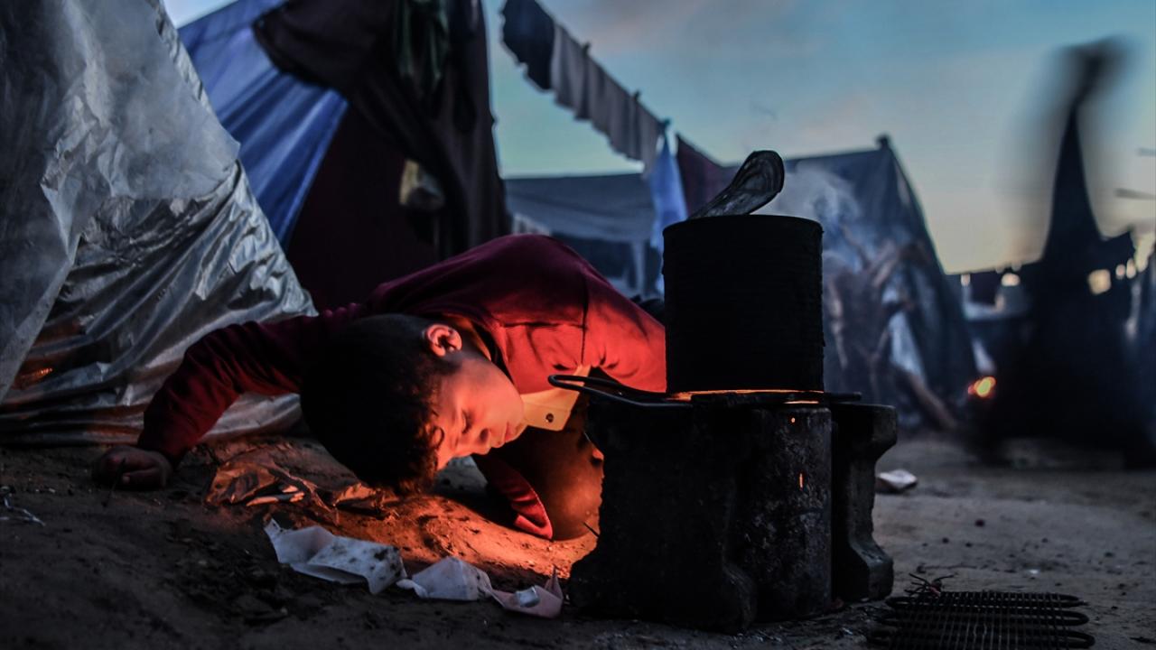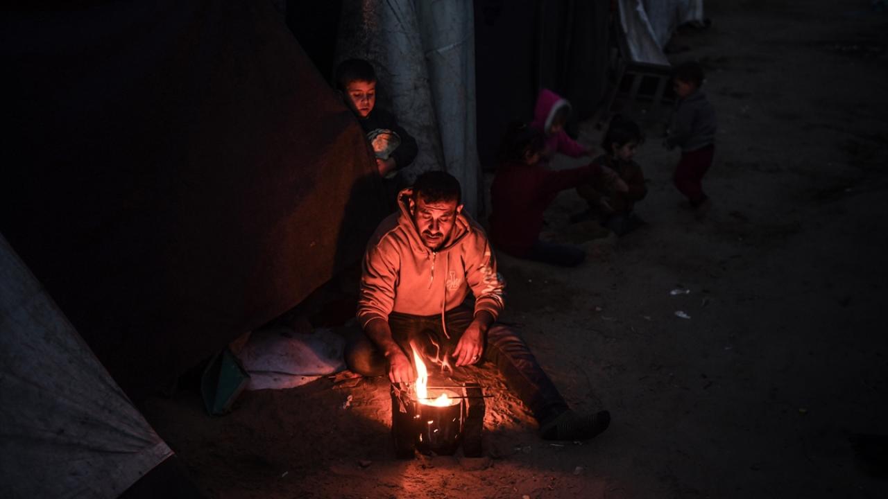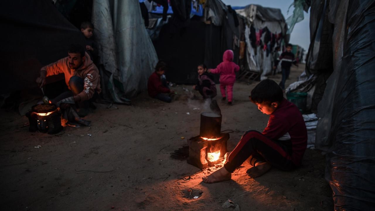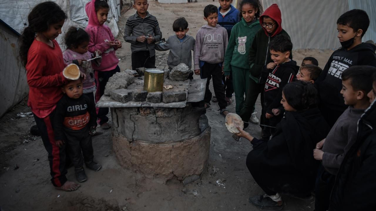 İsrail'in Gazze Şeridi'ne yönelik saldırıları nedeniyle defalarca yerinden edilen ve son olarak güneydeki Refah kentine sığınan Filistinli aileler, boş arazide kurdukları derme çatma çadırlarda zor şartlar altında yaşamlarını sürdürmeye çalışıyor.