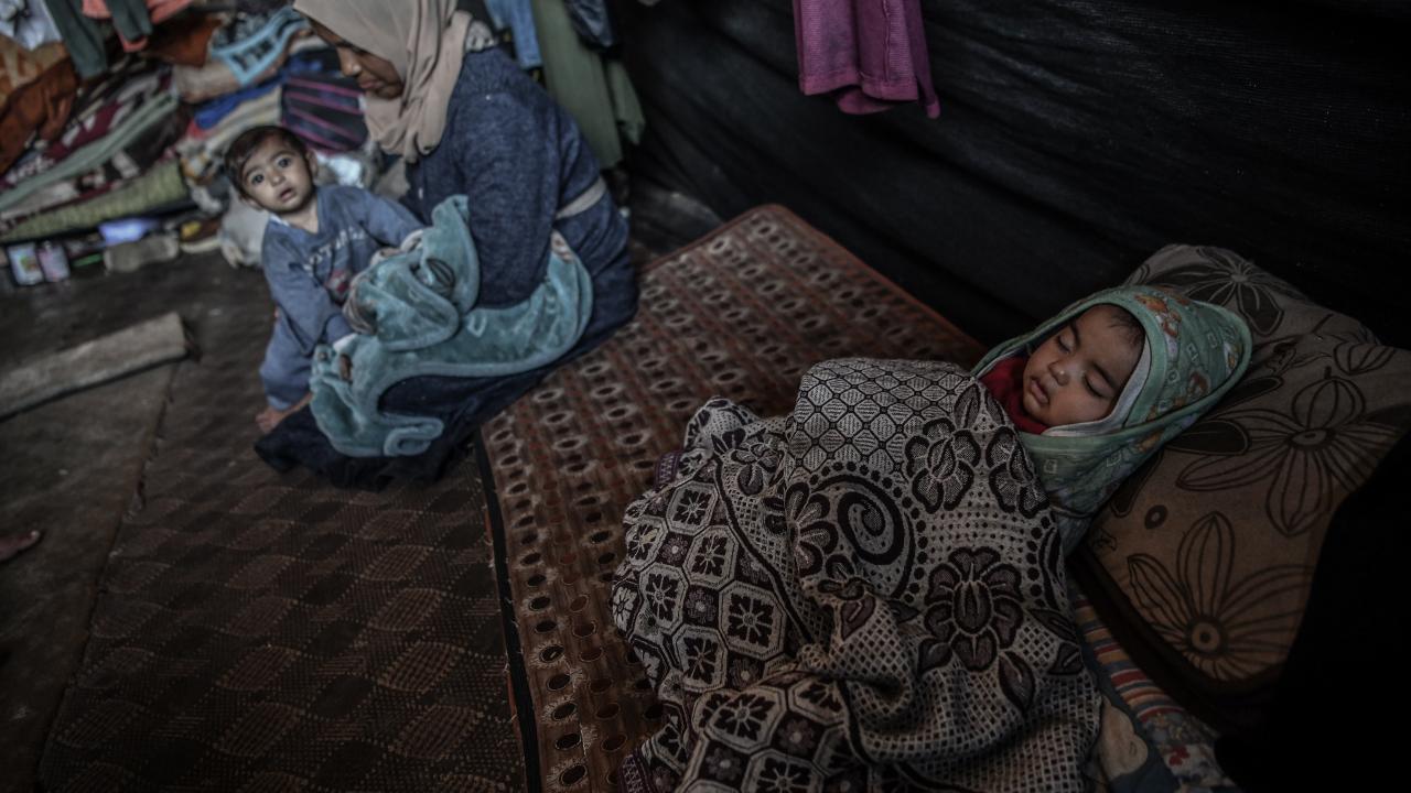 İsrail bombardımanından korunmak ve can güvenliklerini sağlayabilmek için evlerini terk edip Gazze'nin Refah kentine sığınan Filistinli aileler, derme çatma çadırlarda zor şartlar altında yaşamlarını sürdürmeye çalışıyor.