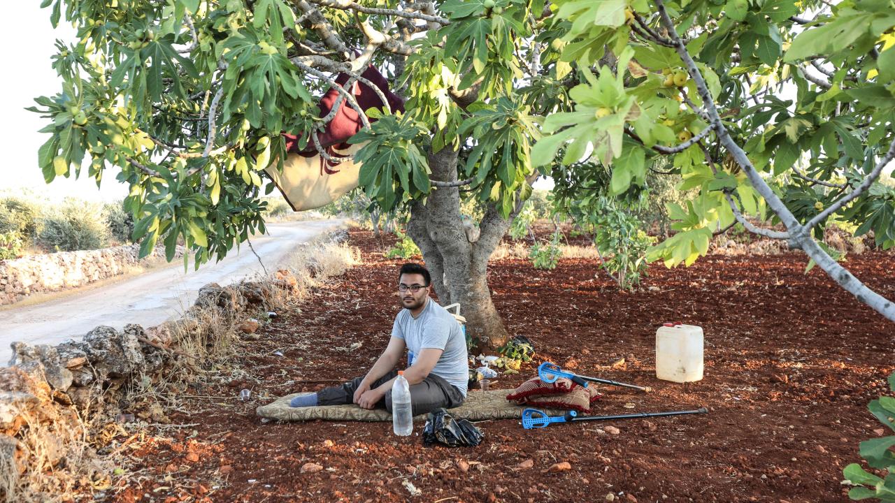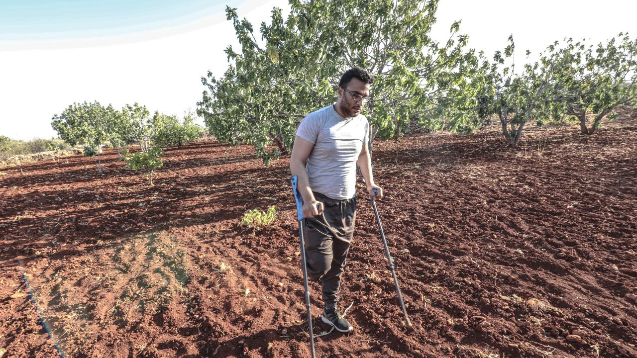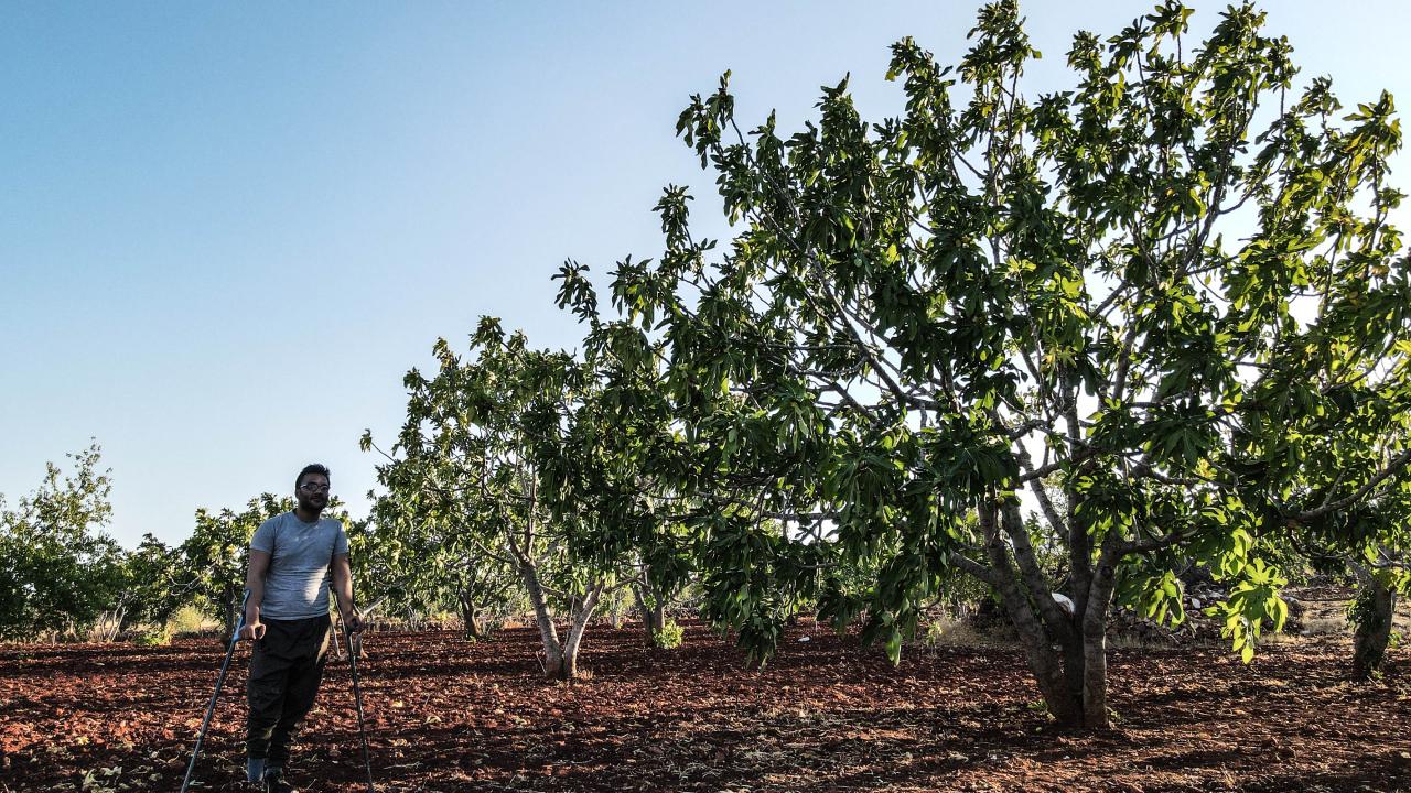 Rejim güçlerinin, 2020`de tarım arazisine döşediği mayının patlaması sonu sağ ayağını kaybeden Şakir Zeytin ise İHA`ların bölgeyi terk etmediğini ve bu yüzden sürekli ağaçlarına altına saklandıklarını söyledi.