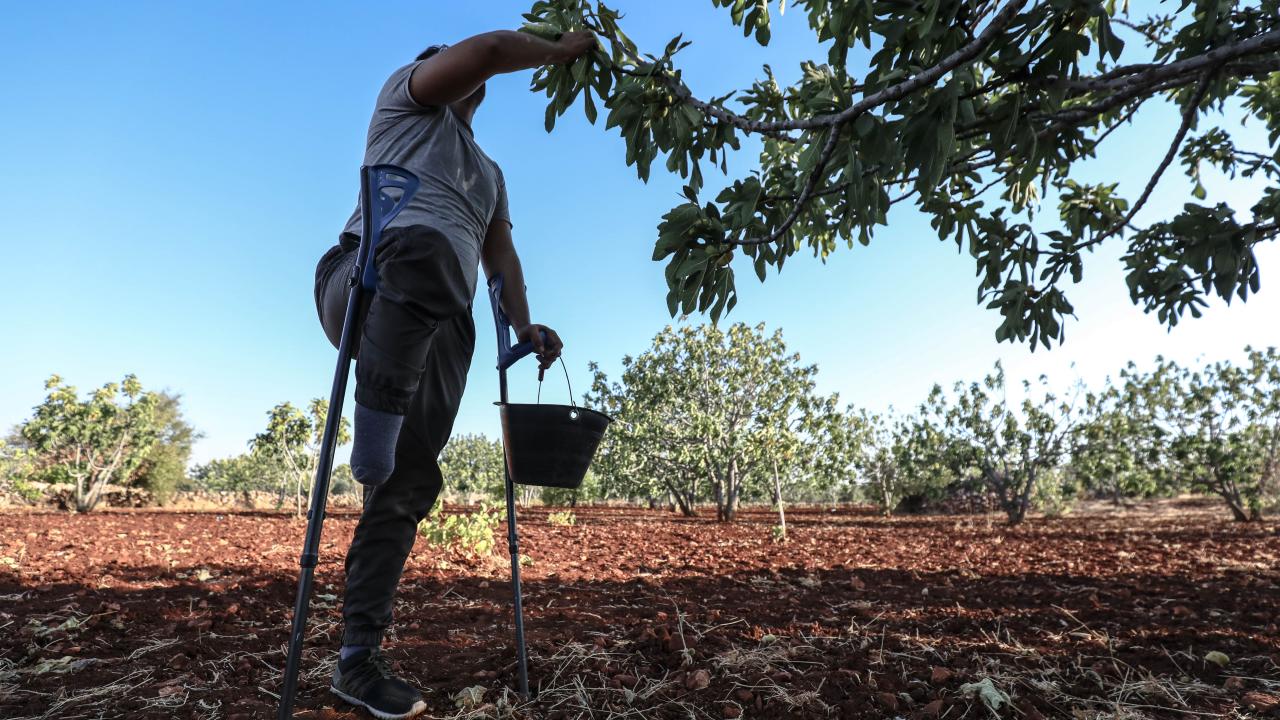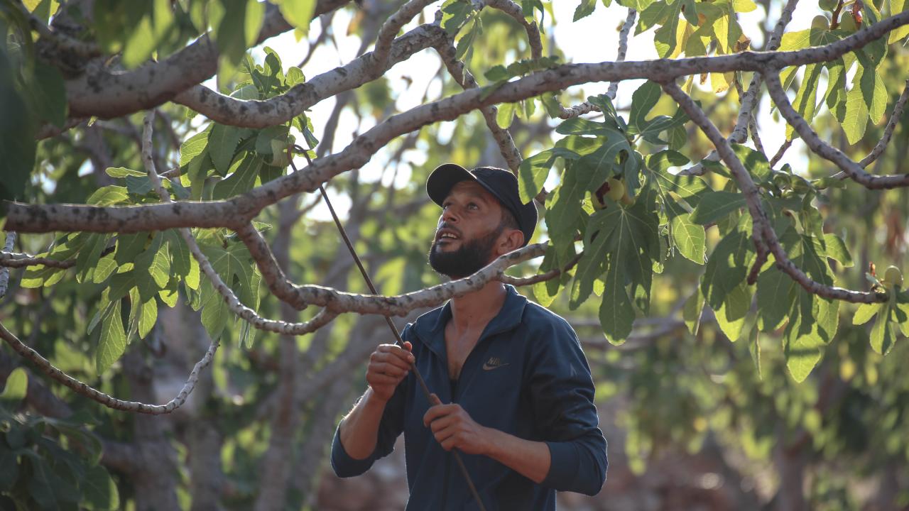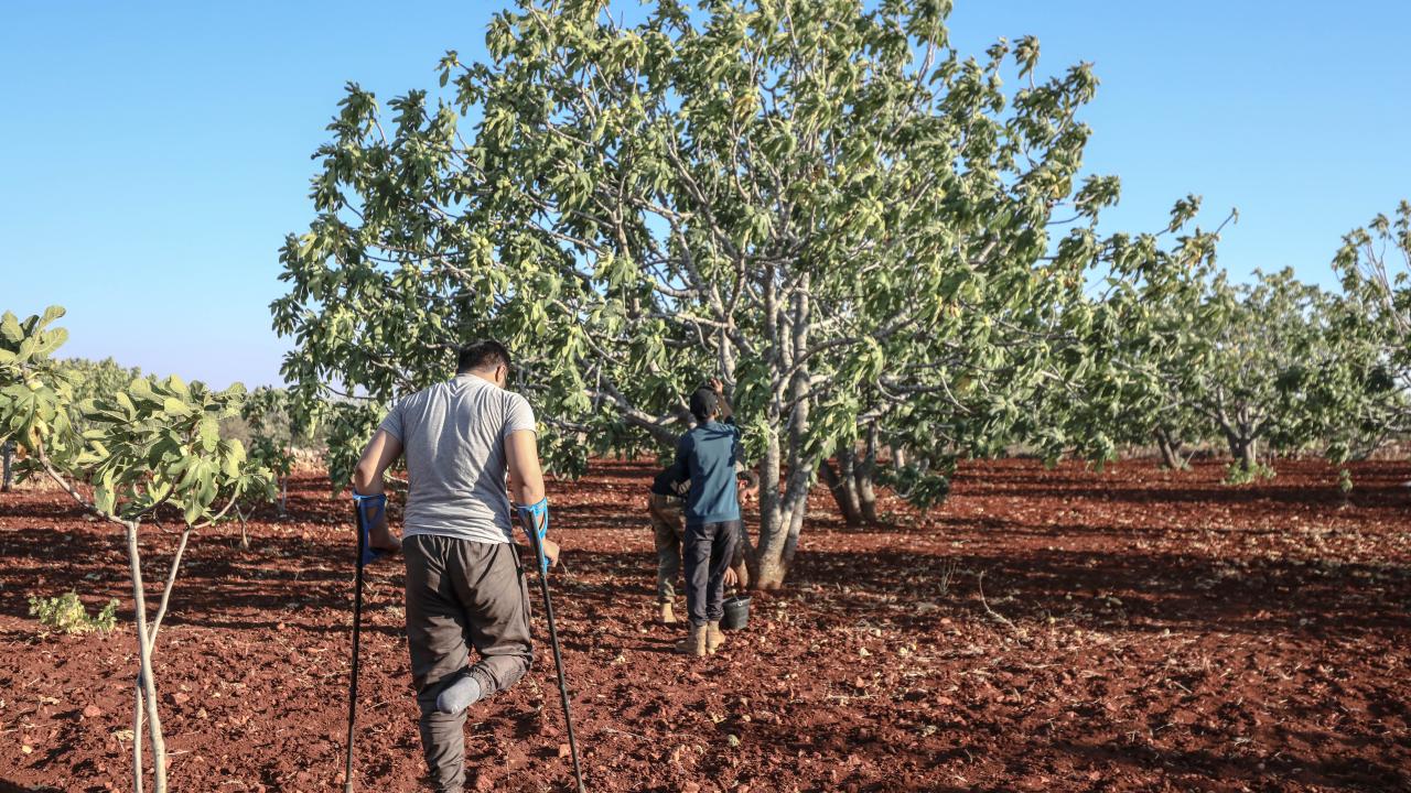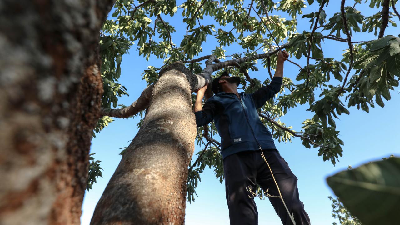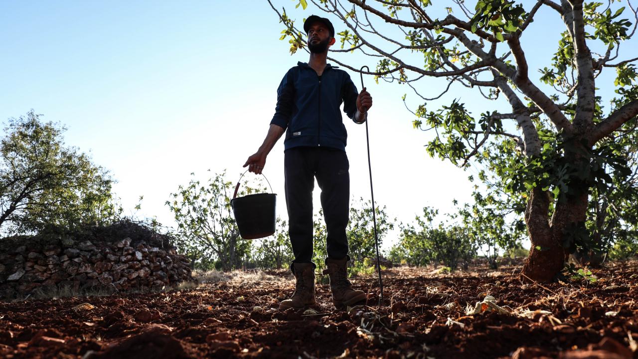 Suriye'de İdlib'in güney kırsalında zorla yerinden edilen çiftçiler, Beşşar Esed rejiminin ateşkesi ihlal ederek düzenlediği saldırılara rağmen incirlerini hasat ediyor.