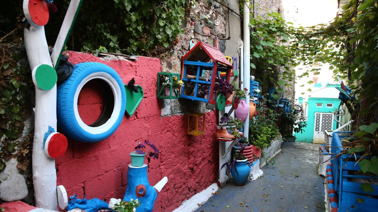 Ayrıca geri dönüşüme dikkati çekmek amacıyla, sahile vuran ağaç köklerinden yapılan süsler, eski ayakkabı ve araç lastikleri içerisine dikilen çiçekler sokağın farklı noktalarına konuldu. Bunların yanı sıra evlerin duvarlarına özlü sözler de yazıldı.